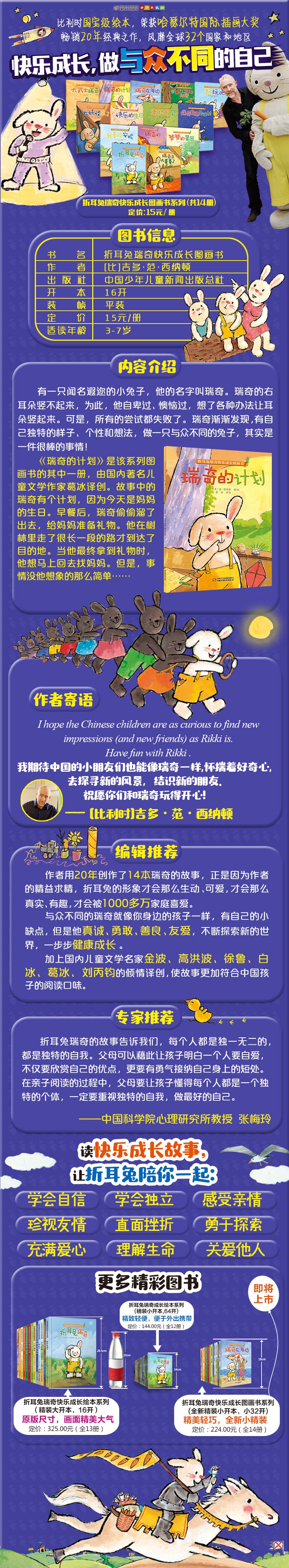 折耳兔瑞奇快乐成长绘本系列 瑞奇的计划 绘本 儿童3-6周岁图画故事书 幼儿启蒙认知故事 亲子教育早教启蒙书