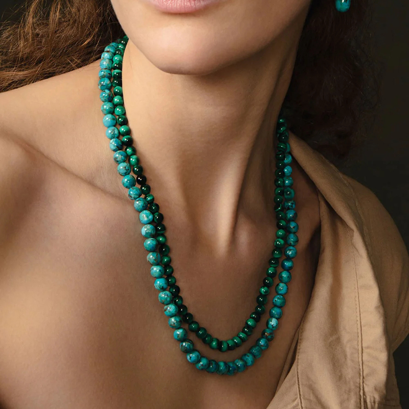 订购6周到|Chan Luu-Gaia-绿松石 孔雀石 双层 项链[美国设计师]