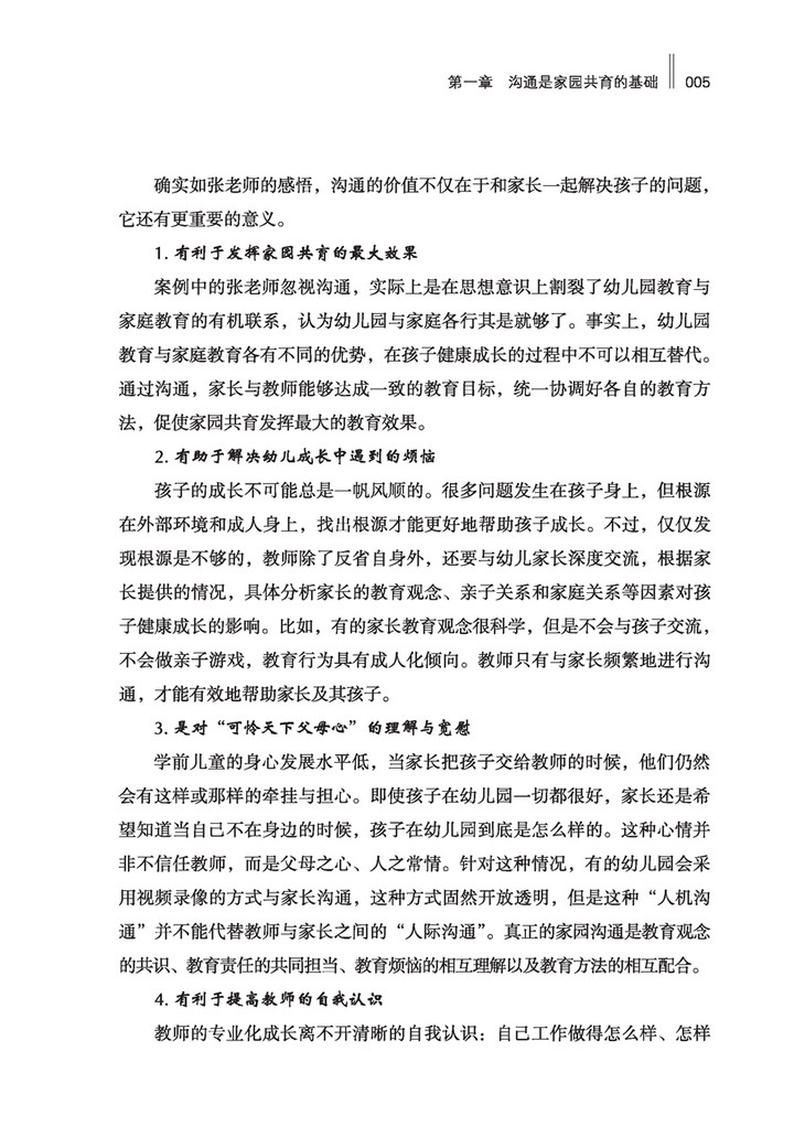 2.全新的内容。本书在保留前一版经典内容的基础之上,特别增加了“与二孩父母沟通的侧重点”这部分内容,修订并完善了“网络沟通”等内容,紧跟社会变化和网络发展的新形势。