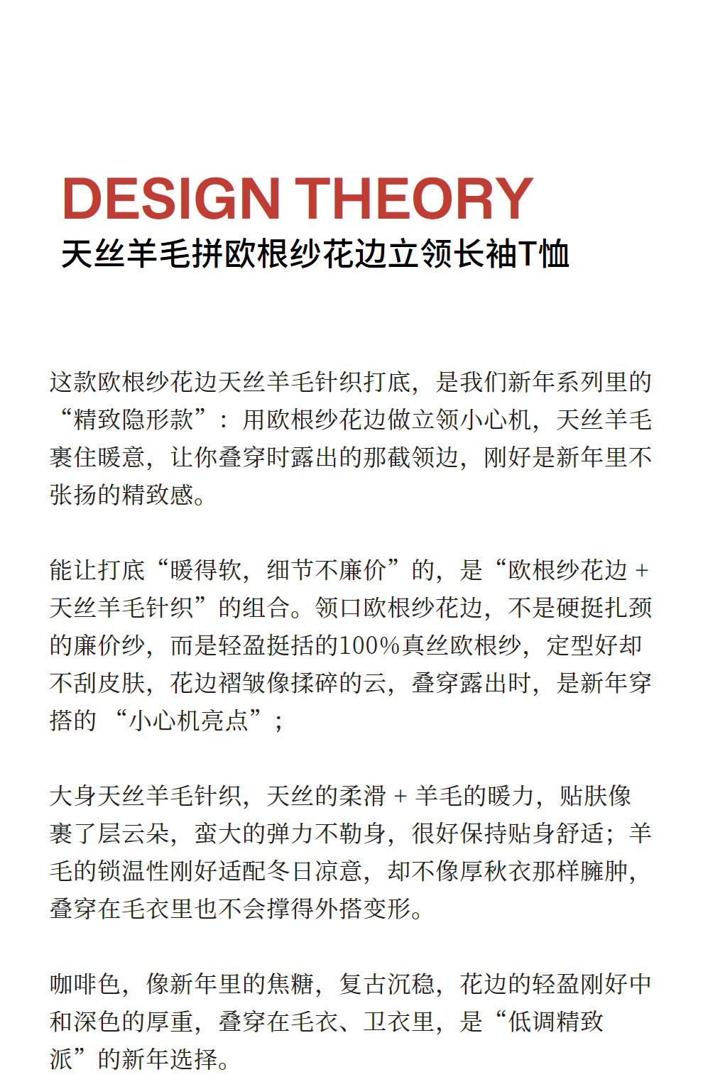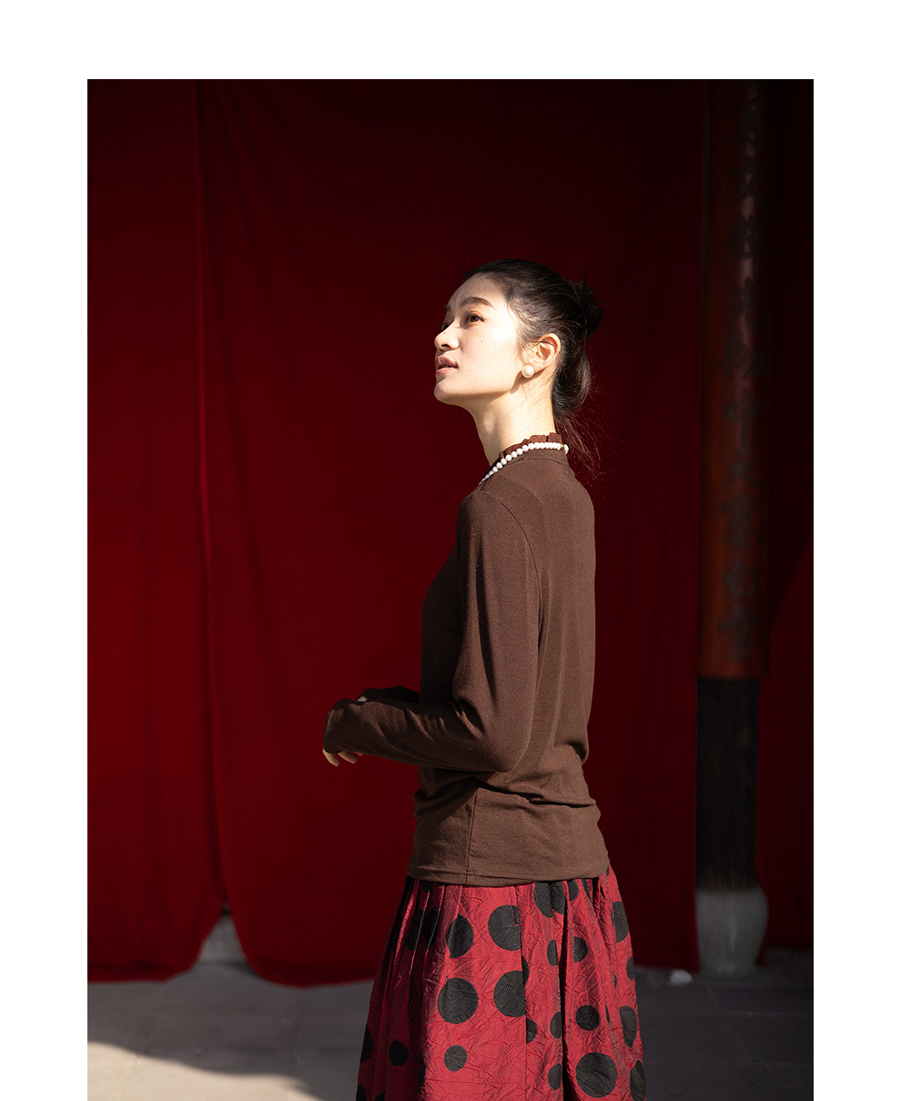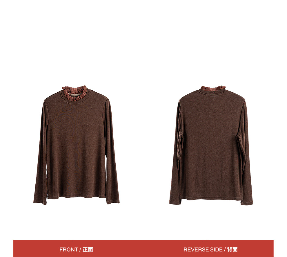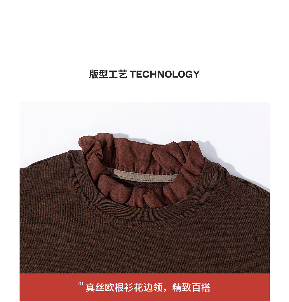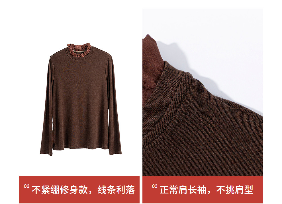 绽放013朵/天丝羊毛拼欧根纱花边立领长袖T恤叠搭舒适高弹打底衫