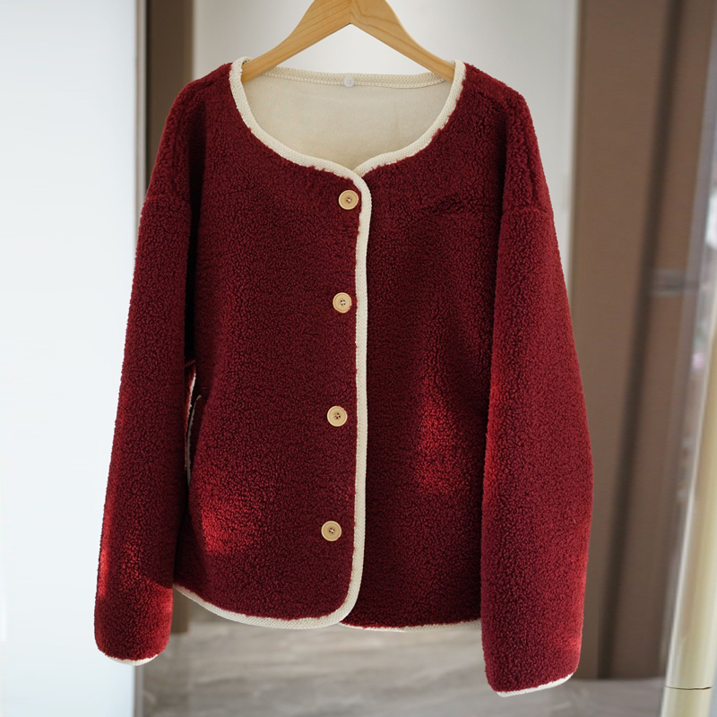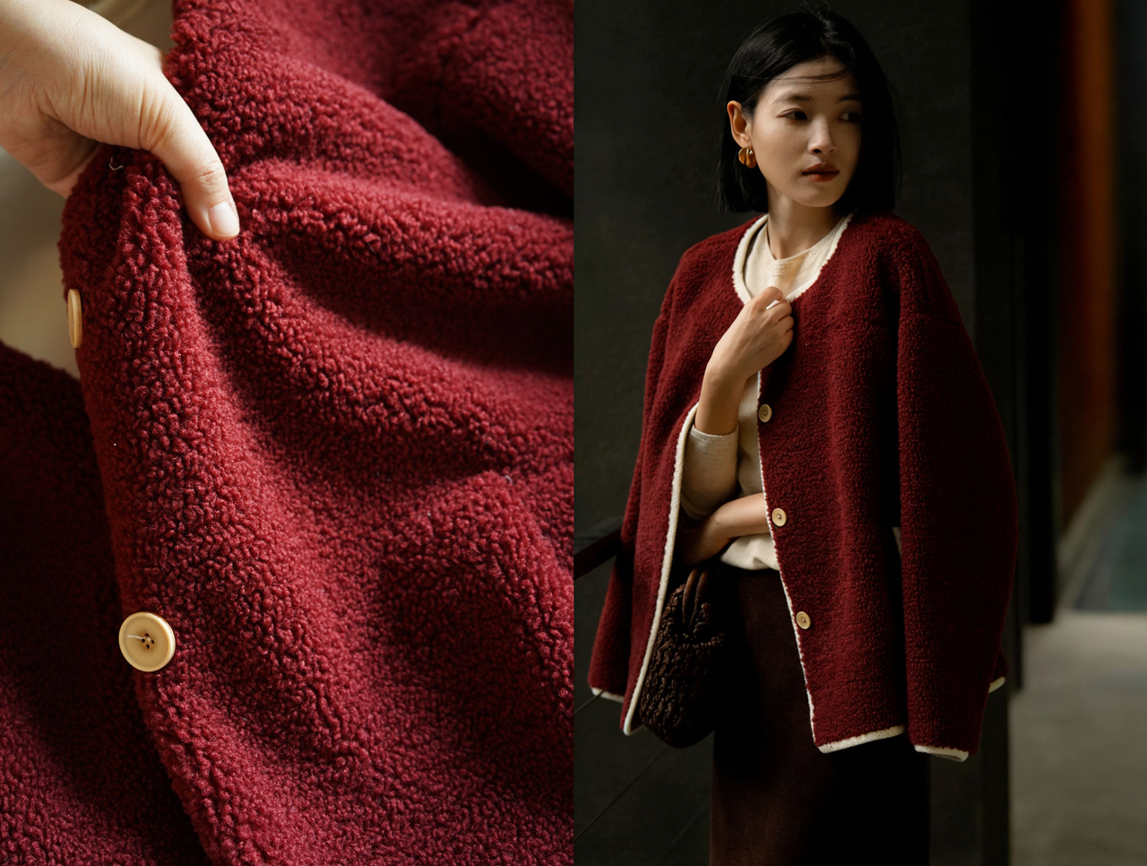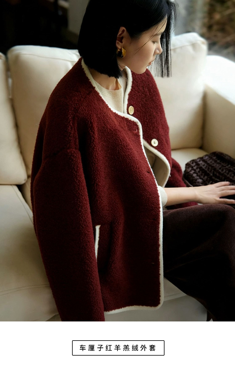 LONGNVFAIR车厘子红羊羔绒外套 | 藏着一抹热红酒的醇厚,衬得气色透亮,年底贵气战衣【预售3-7天发货】