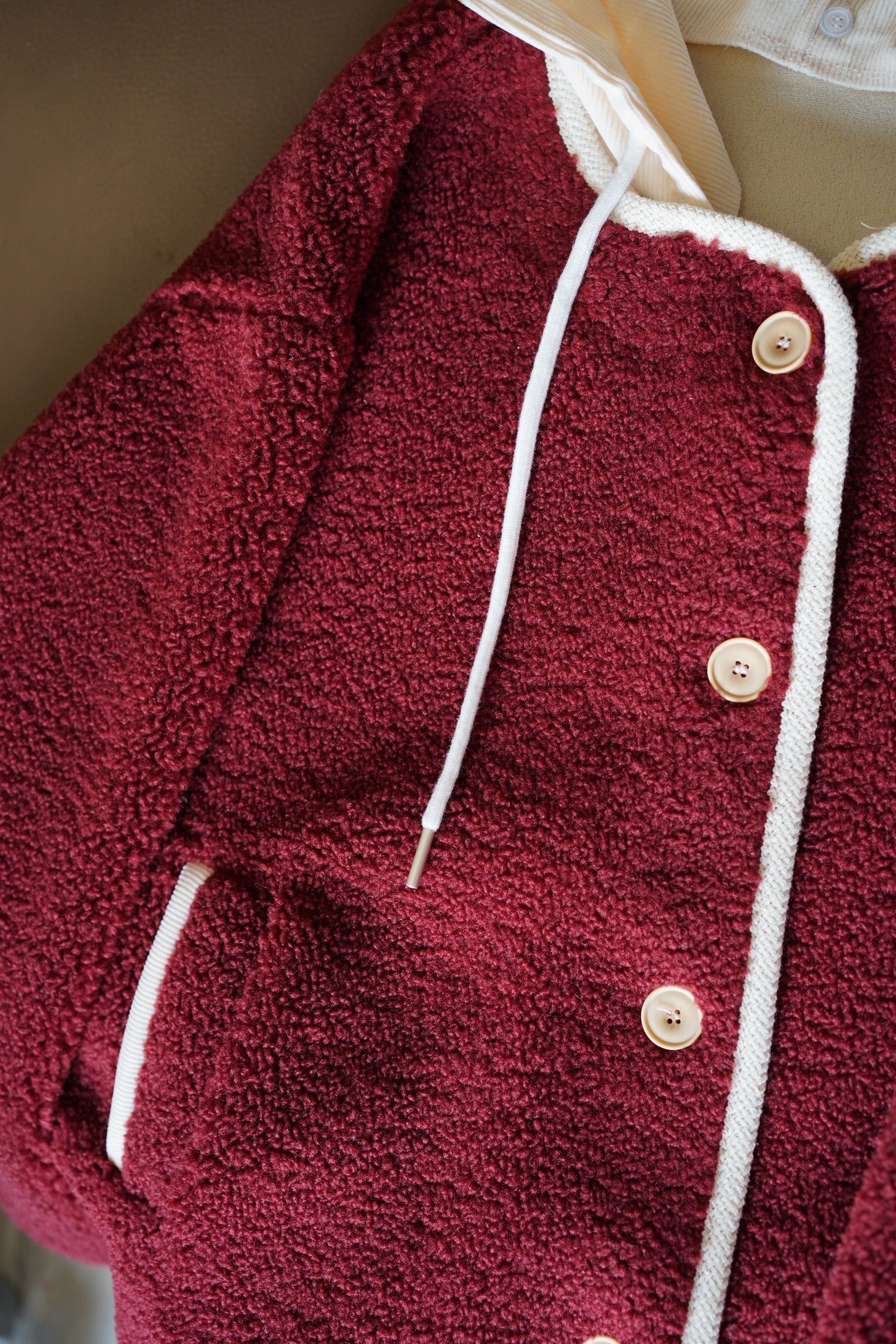 这便是买手姐姐给大家找来了这一件——LONGNVFAIR车厘子红羊羔绒外套。