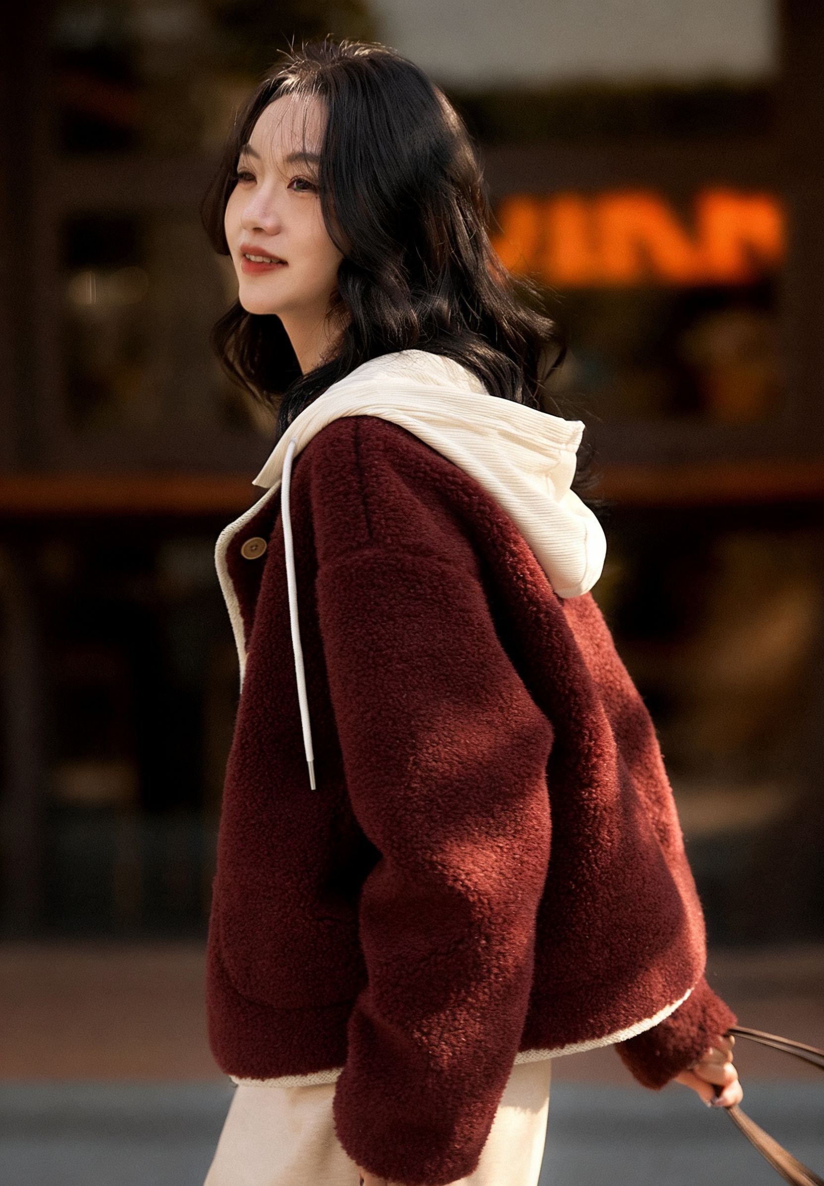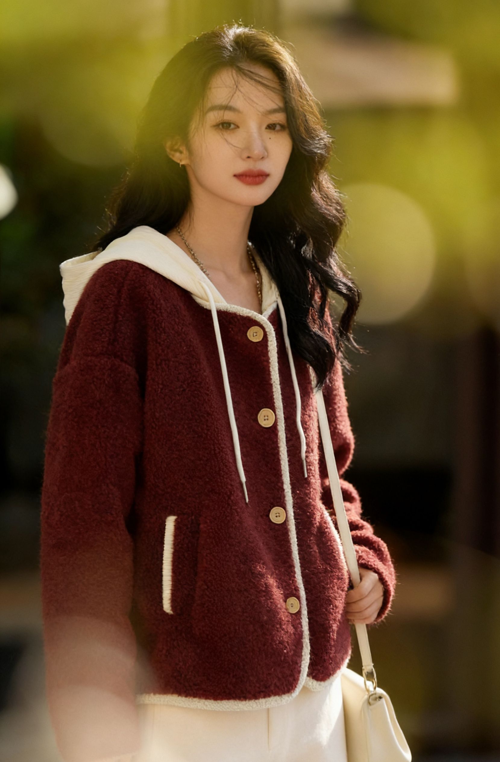 毛绒绒的触感裹满全身,连风都变得软乎乎——这哪里是外套,明明是把“冬日幸福感”焊在了身上。