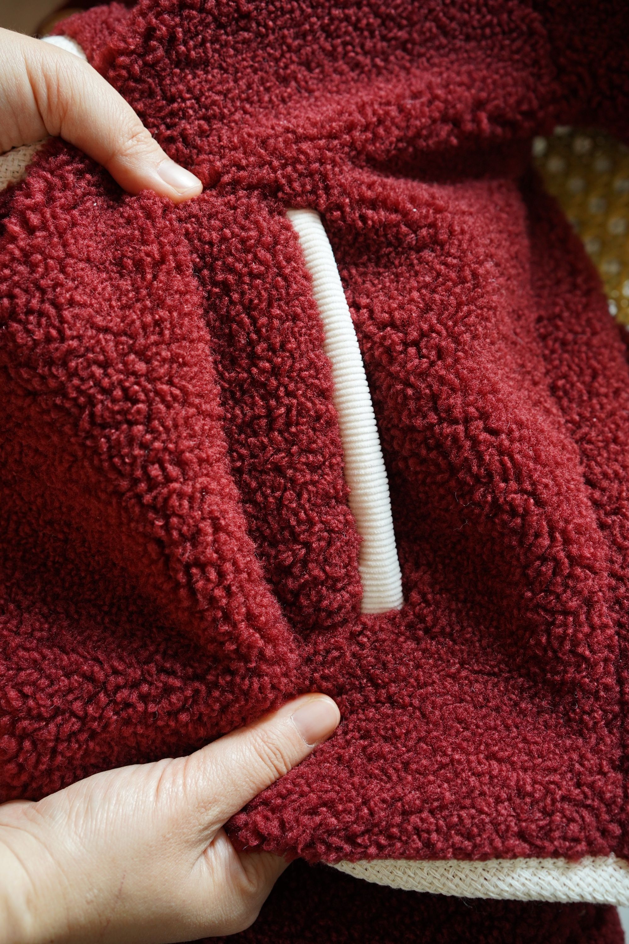 降温刚需,是时候来件暖和的厚外套了!这件酒红色羊羔毛外套,藏着锁温黑科技~