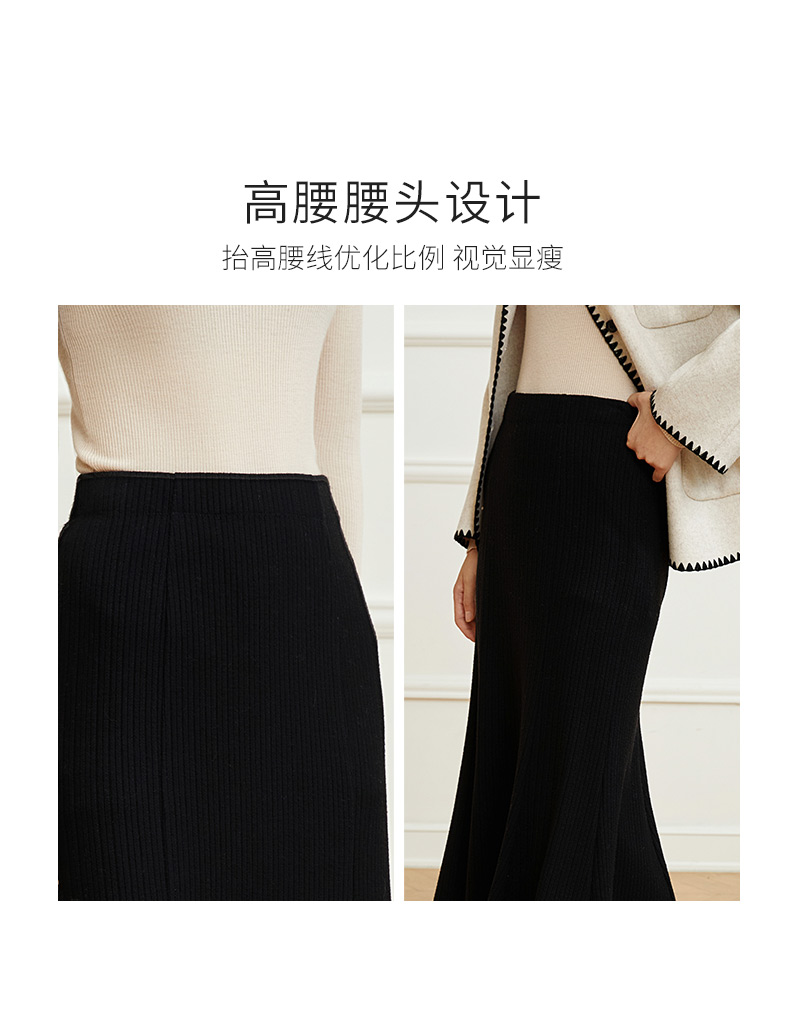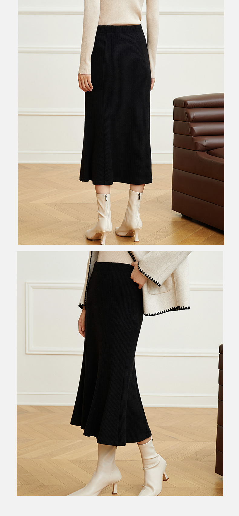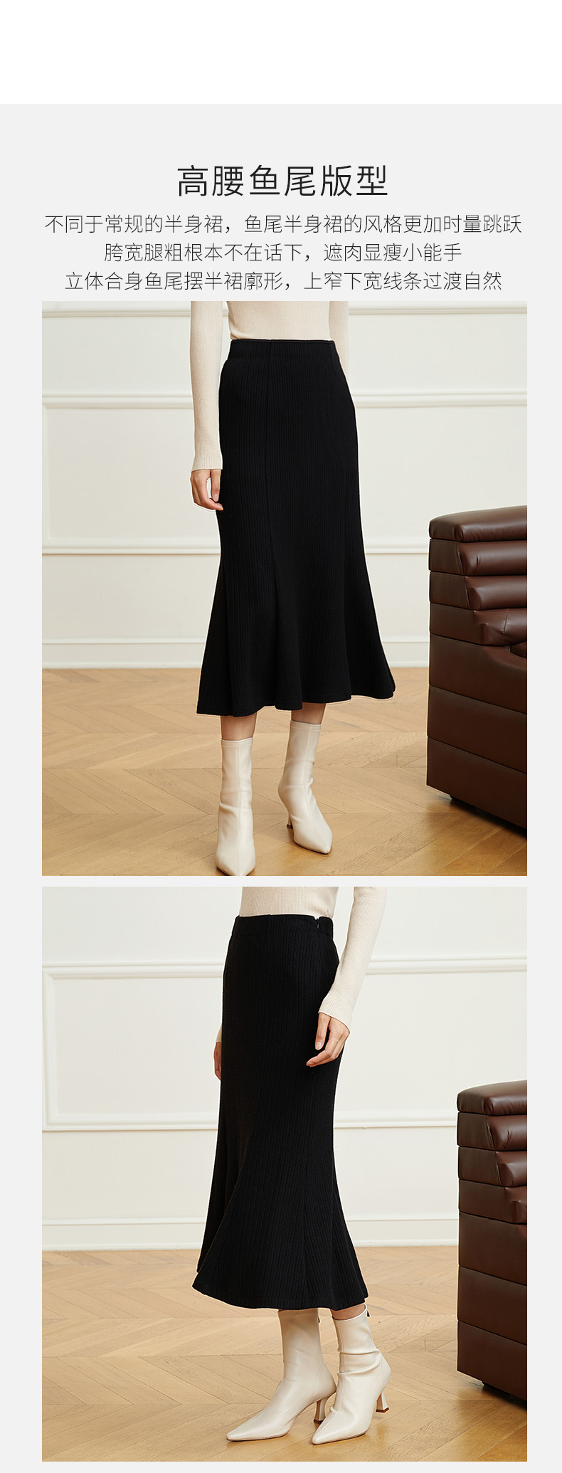 玳莎高腰针织鱼尾裙女2023年冬季新款保暖修身优雅黑色显瘦半身裙 DD34301