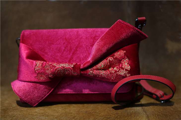 包面饰以蝴蝶结 减轻丝绒面料年代感