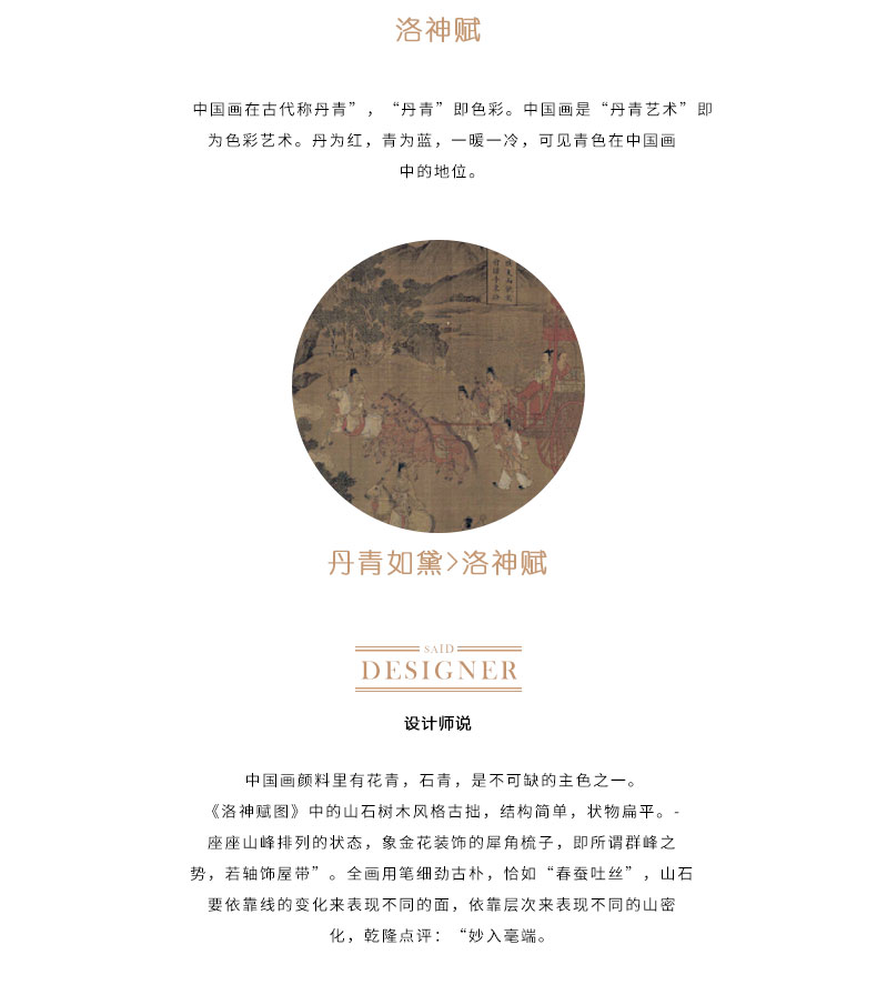 品牌风格:源自千年文学和万年艺术的时装,让你的气质内涵一枝独秀,精彩的品质,华丽的风格,炫耀的视觉,让你的衣品从此与众不同,标记你深厚的文化内涵与艺术气息。