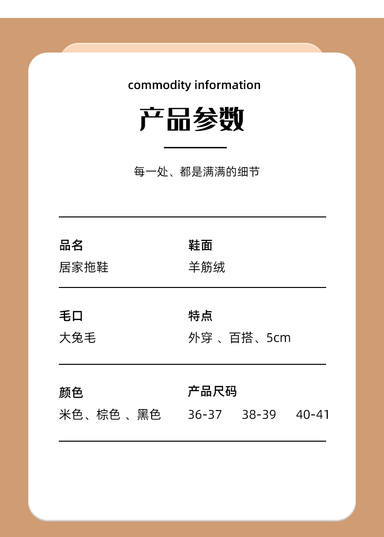 【品名】窠窠良品 时尚包头厚底毛茸茸棉拖 【规格】米色、棕色、黑色 【尺码】36-37码、38-39码、40-41码 【产地】国内 【发货包装】独立包装 【发货地】浙江 【发货快递】韵达,中通 【不发货区域】新疆,西藏,港澳台 【发货时效】48-72小时,周末节假日顺延 |