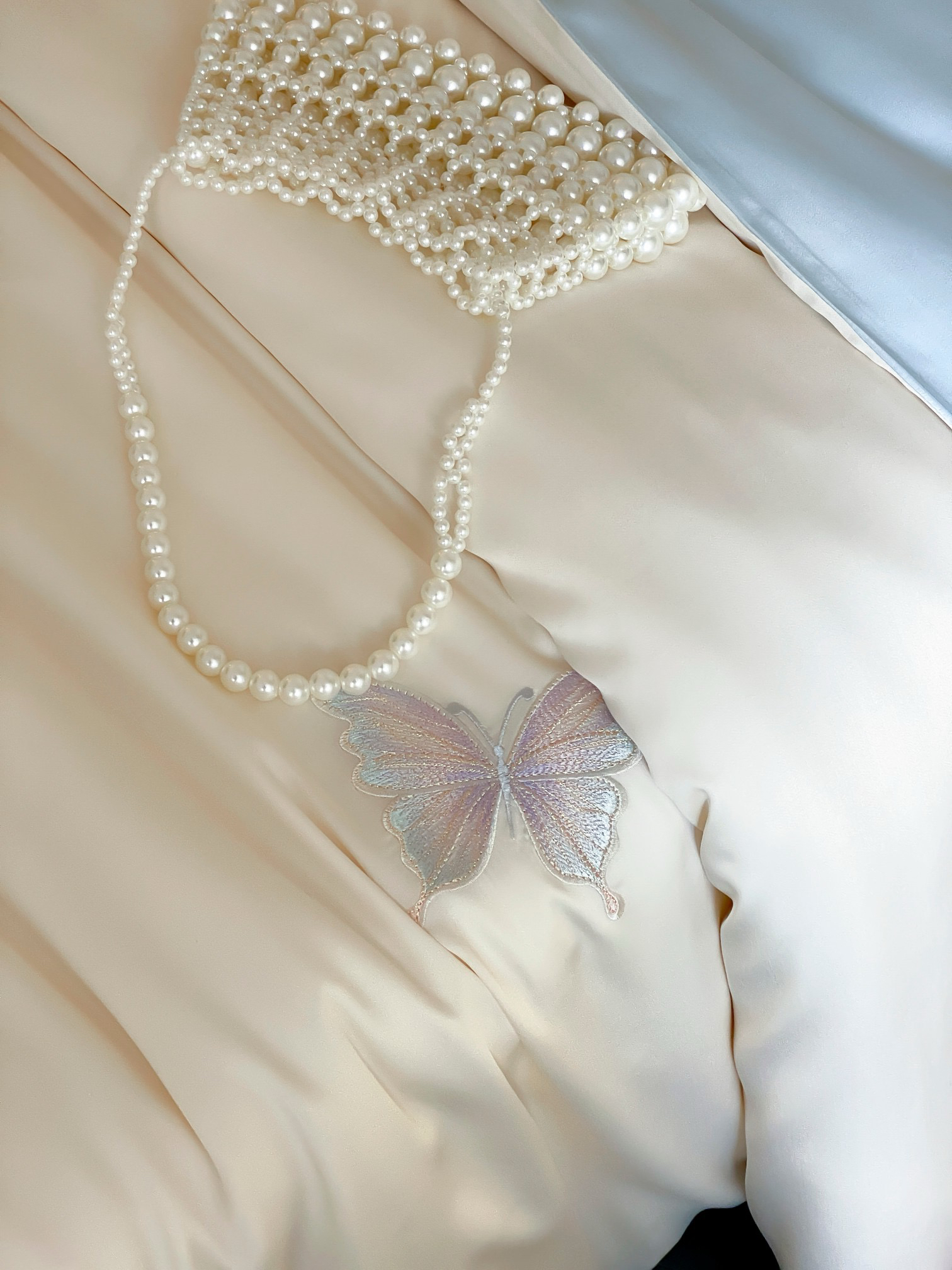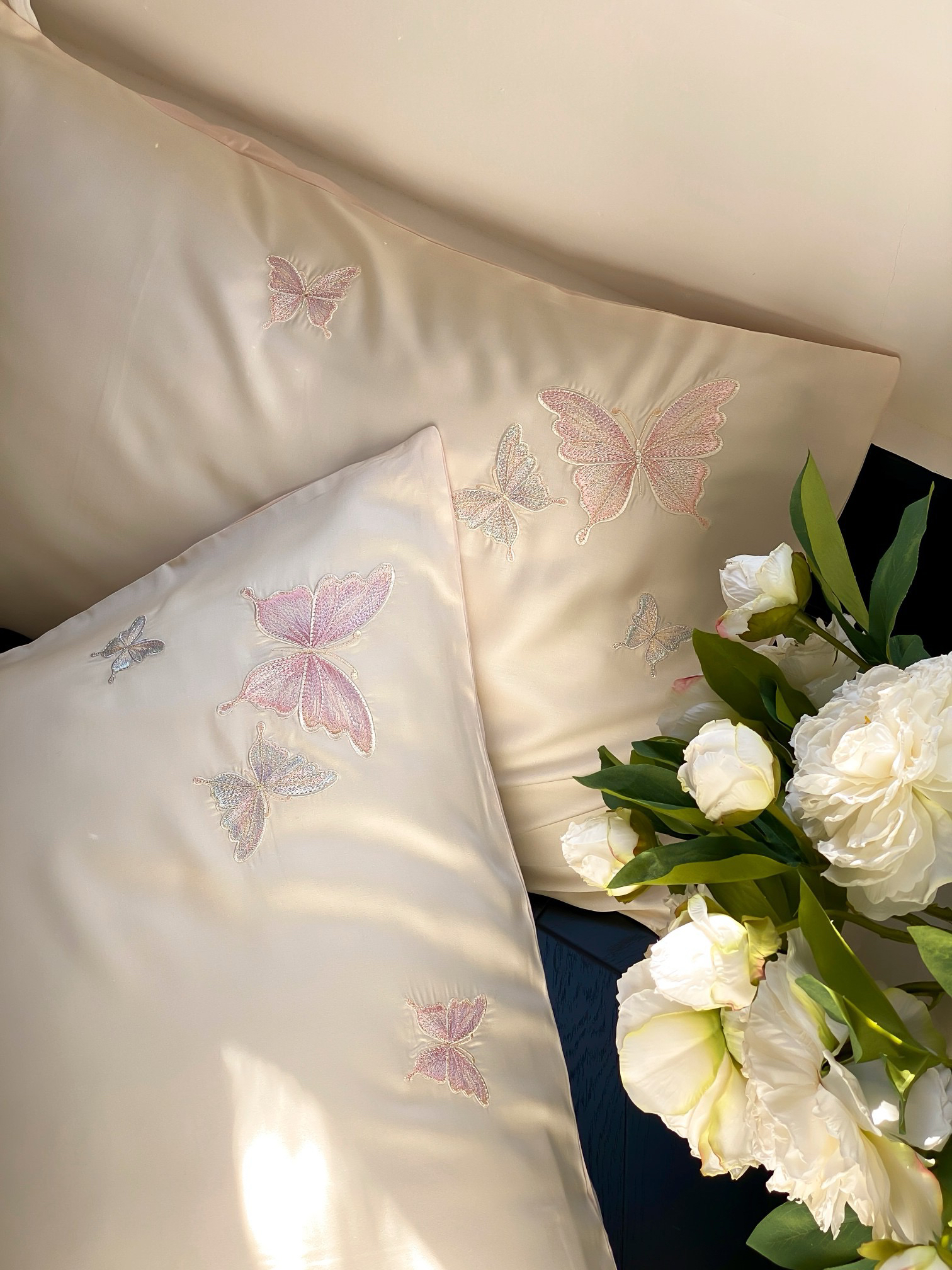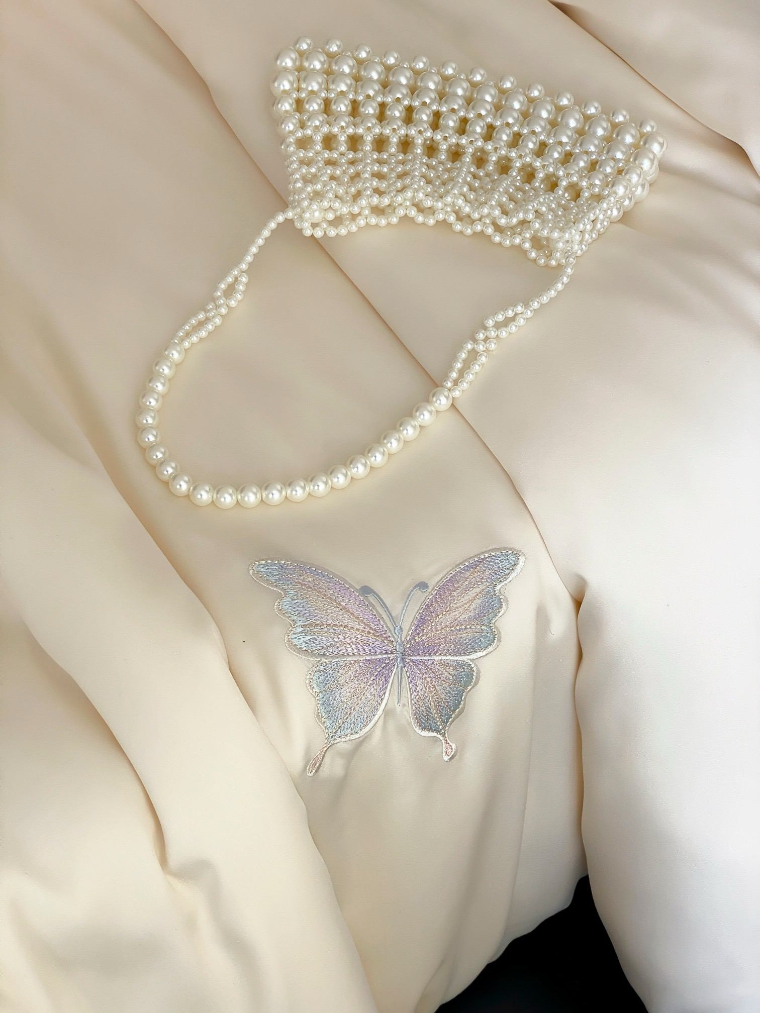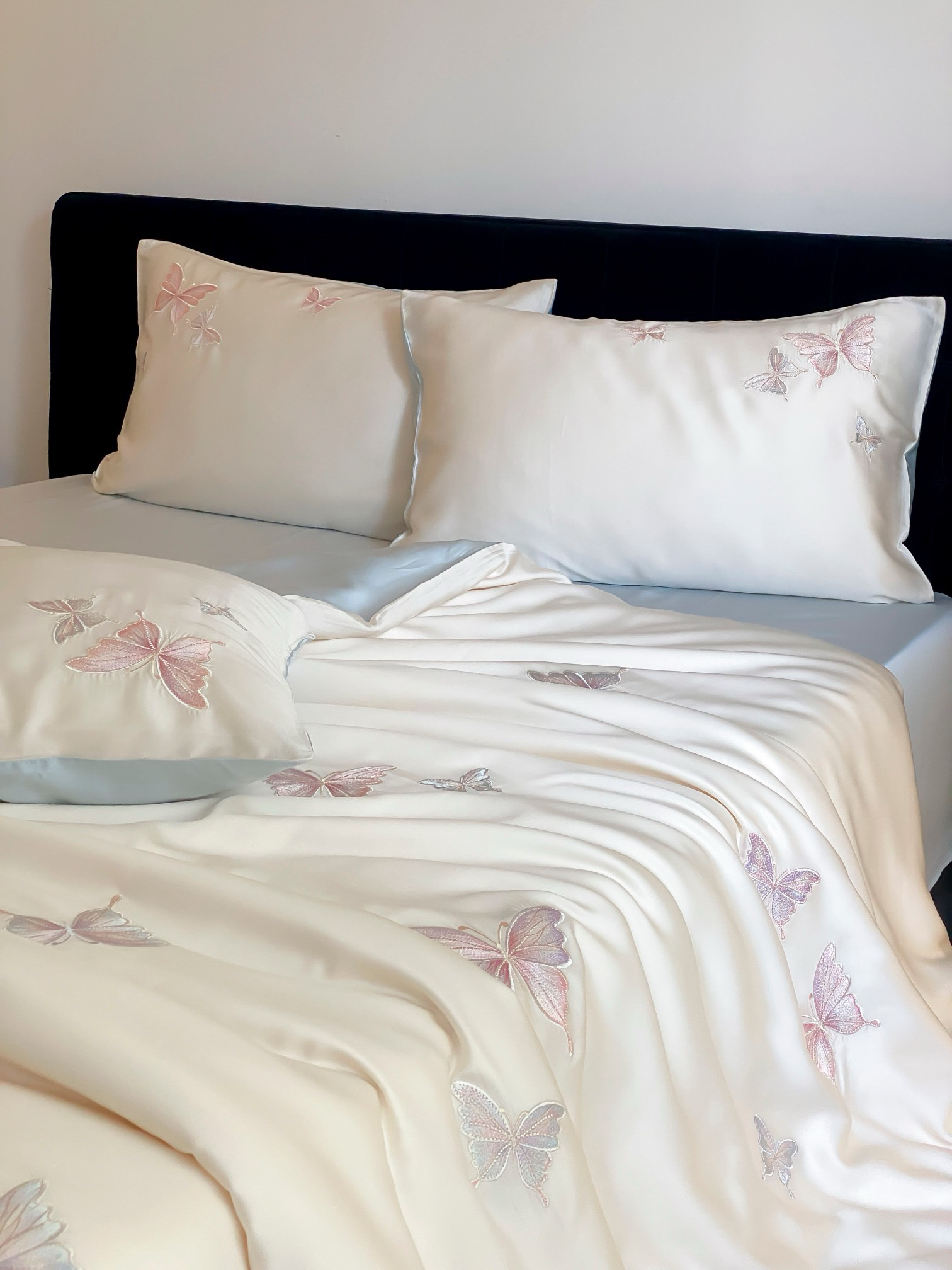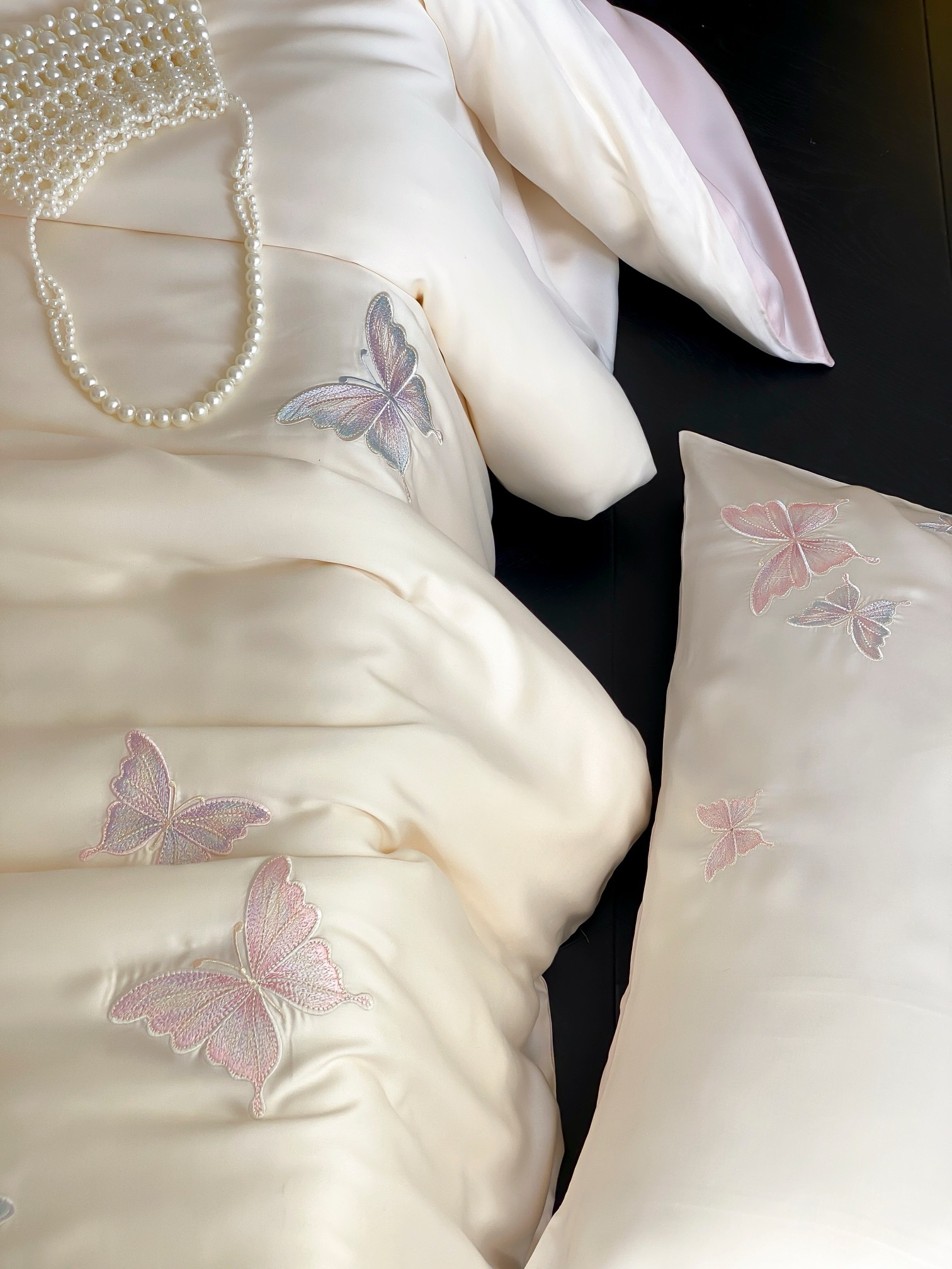 【裸感丝滑】奥地利兰精天丝四件套 精致蝴蝶刺绣 A类母婴级别 柔顺丝滑如第二层肌肤 透气控温凉爽不闷汗
