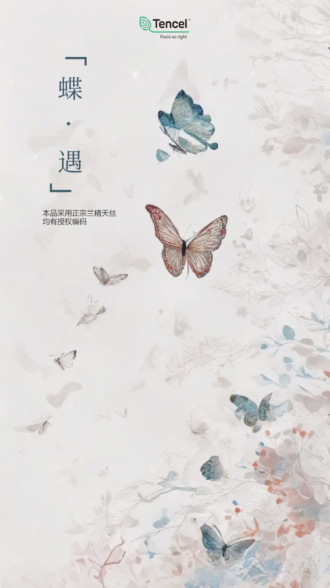 兰精天丝自带的柔顺丝滑与蝴蝶元素交相映衬,梦幻与美好寓意𝗯𝘂𝗳𝗳叠满