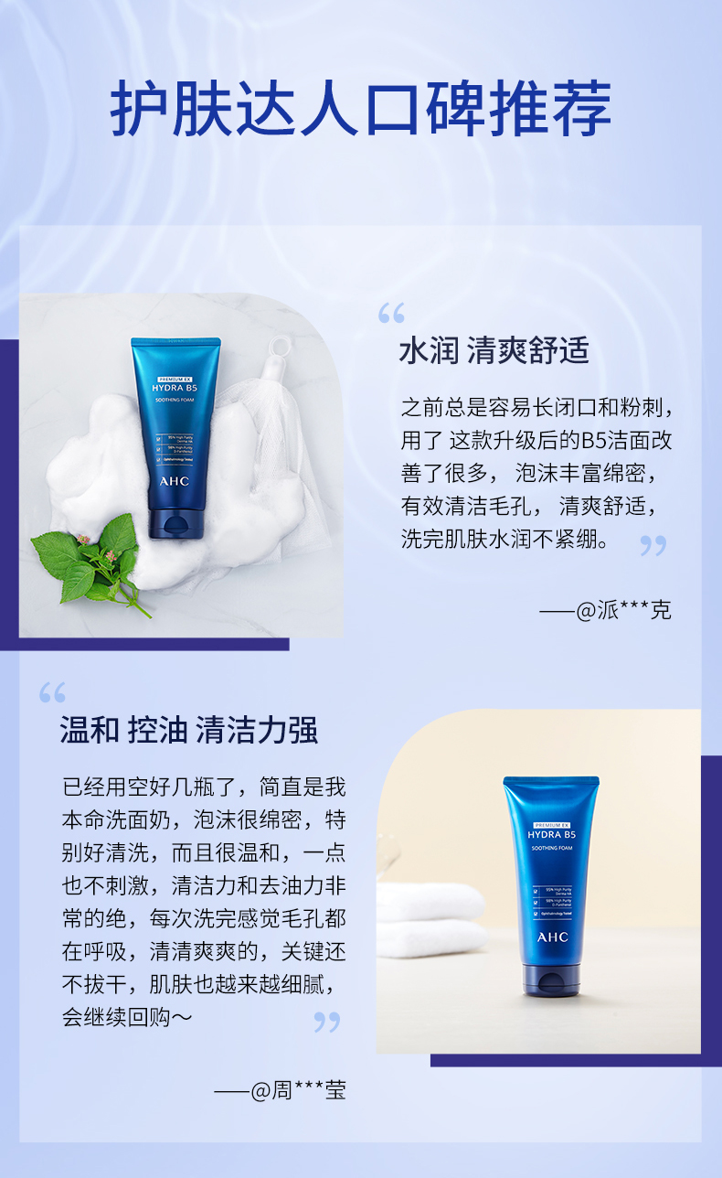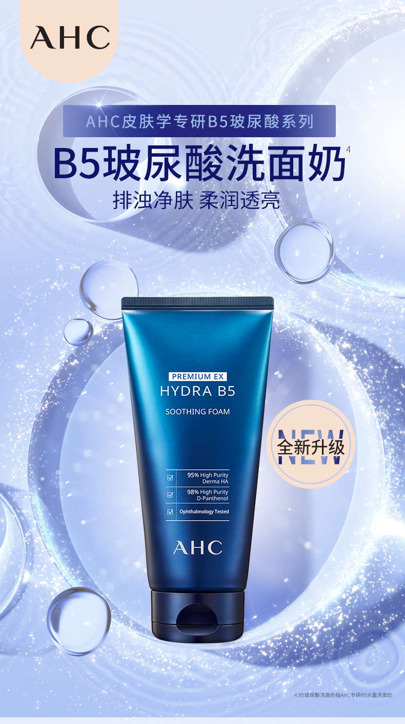 【正品报关】韩国 AHC B5透明质酸补水洁面乳洗面奶新版180ml