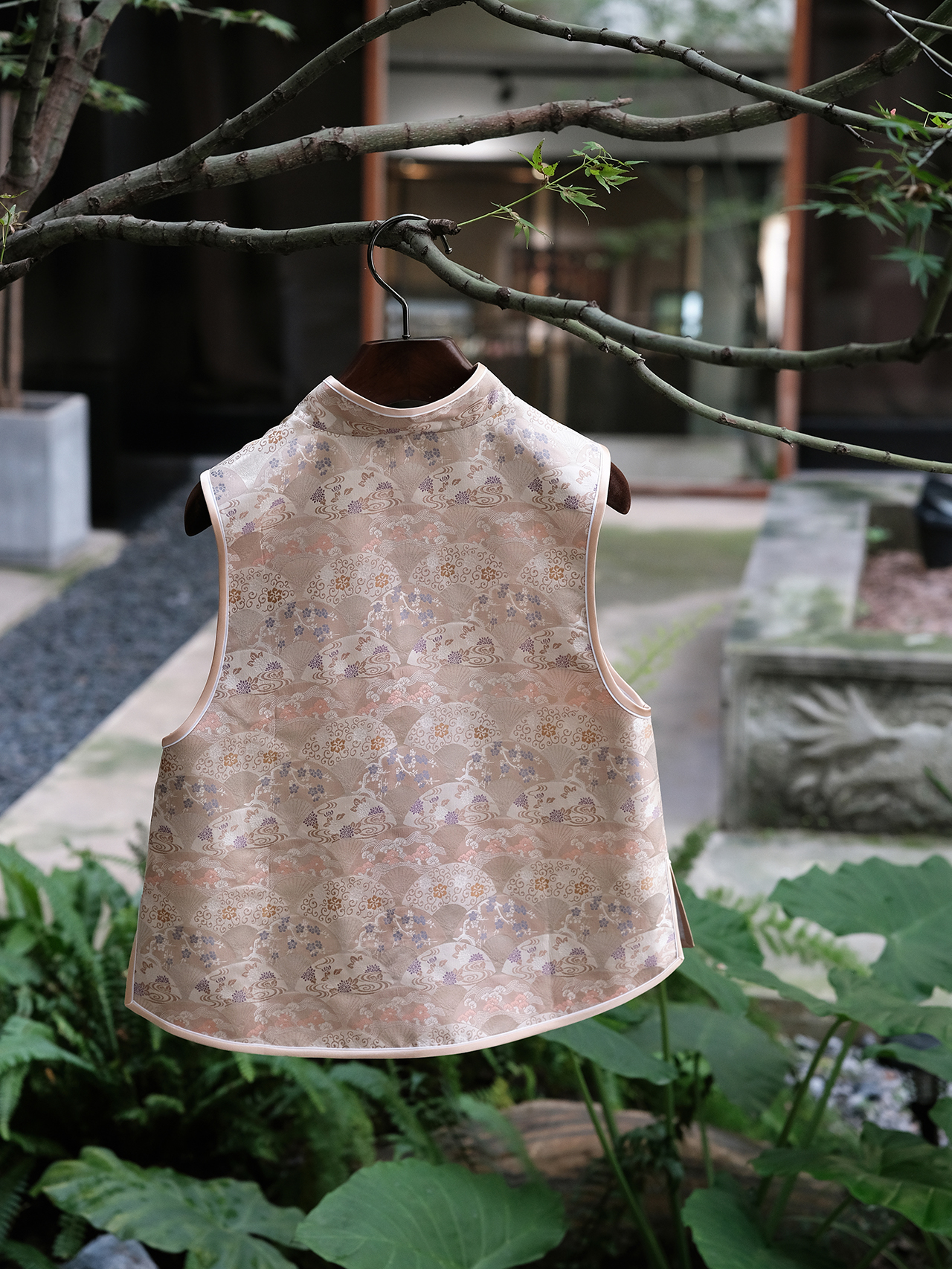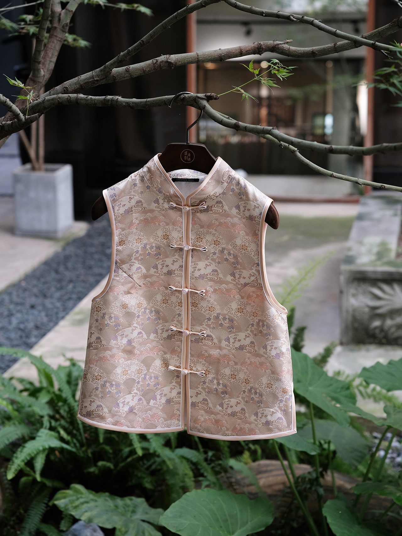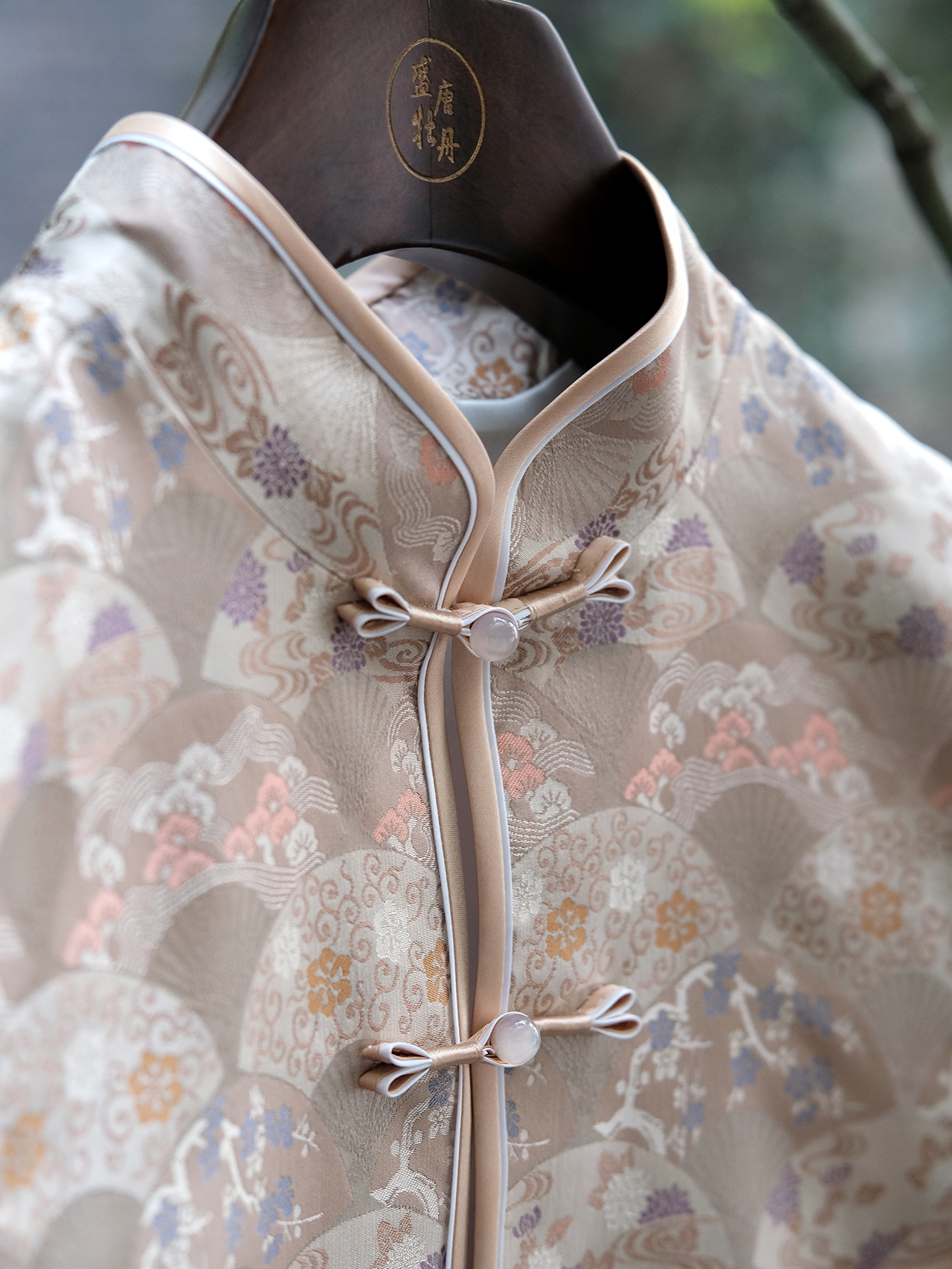 盛唐牡丹 |重缎宋锦扇子纹对襟马甲