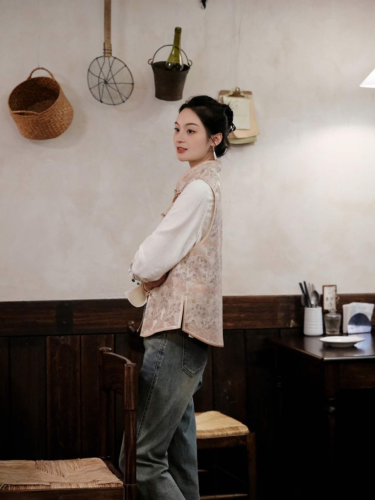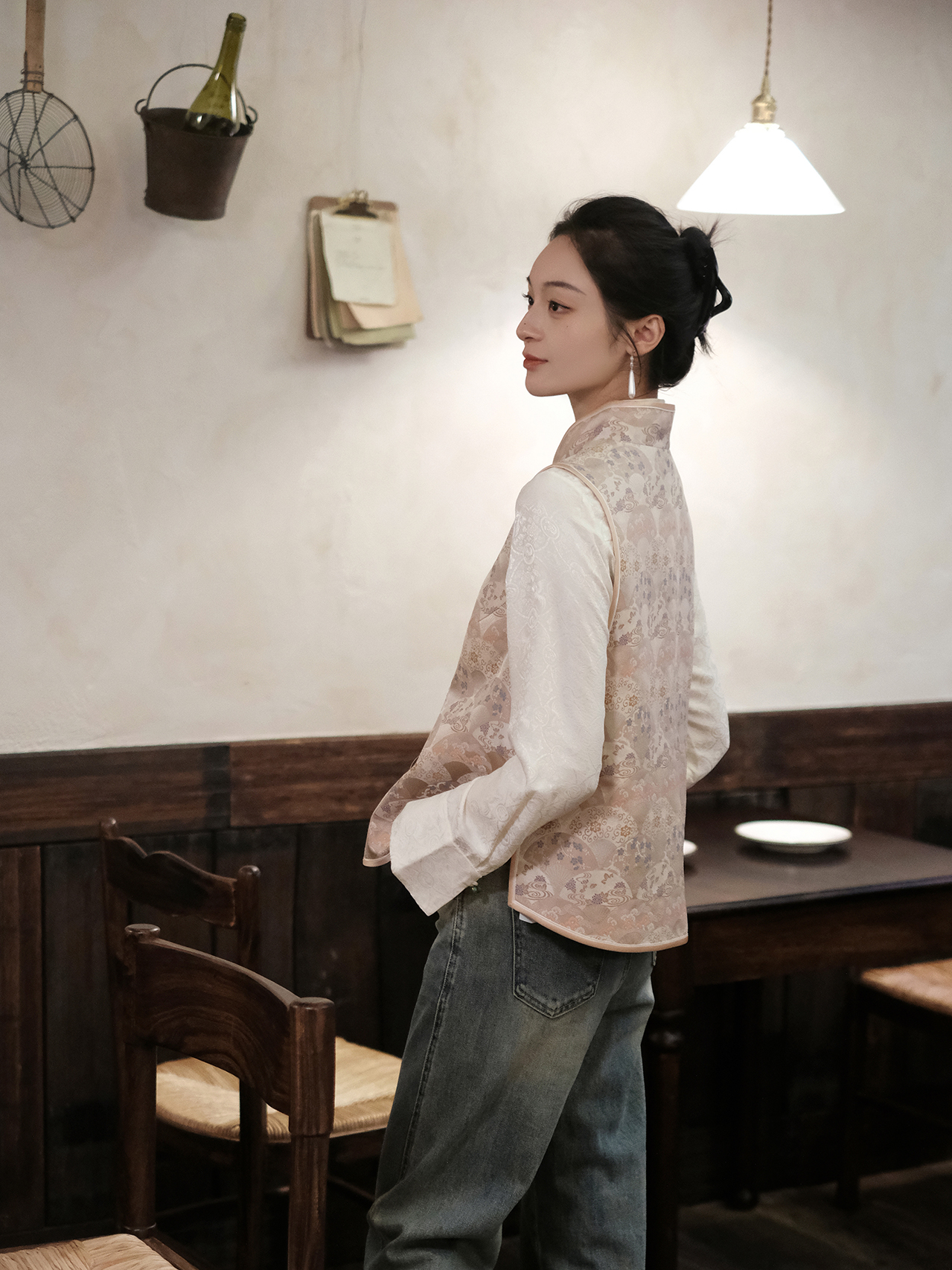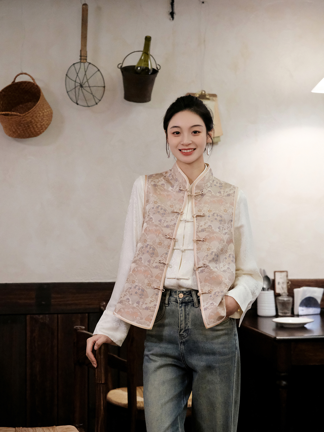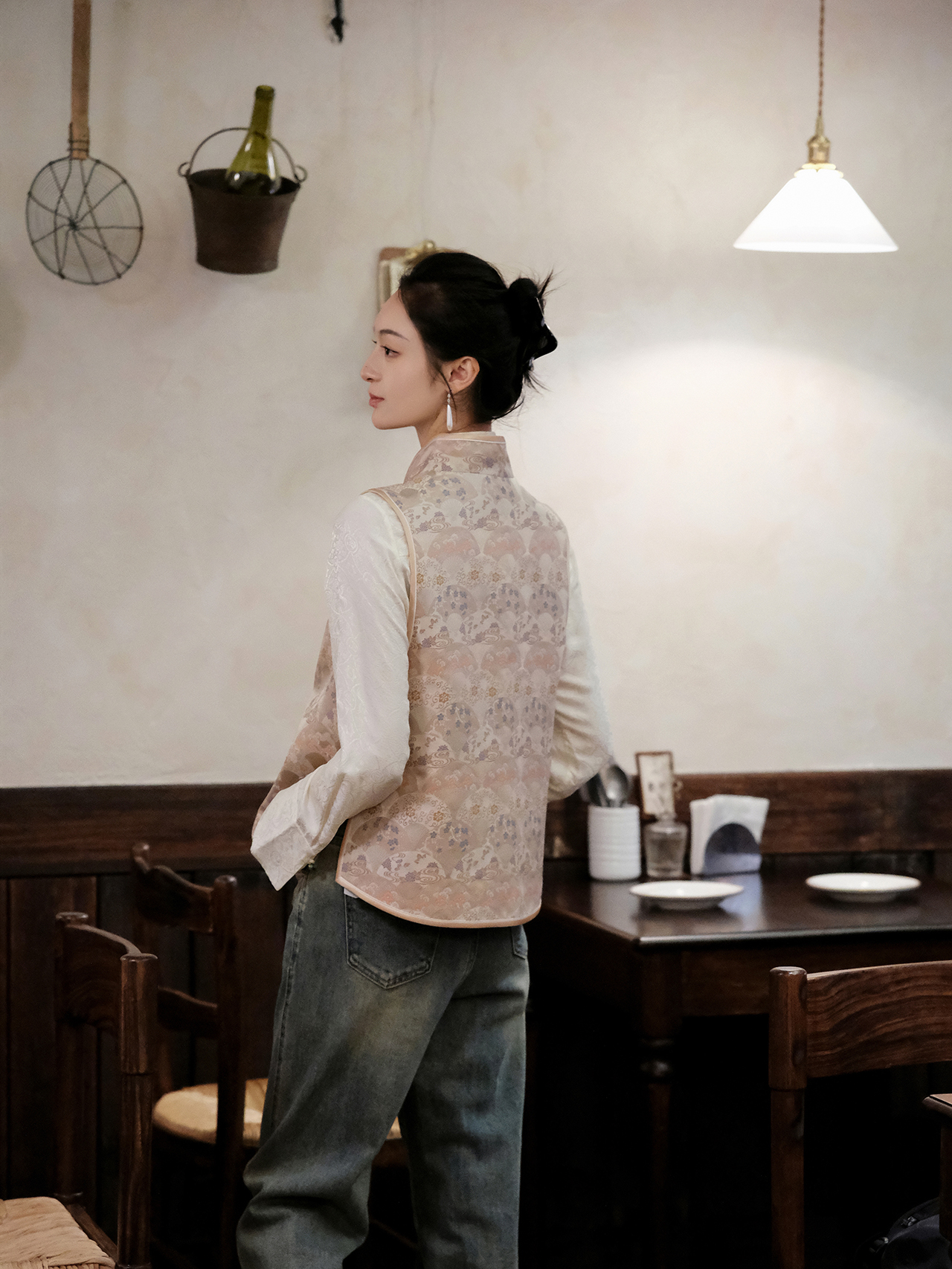 盛唐牡丹 |重缎宋锦扇子纹对襟马甲