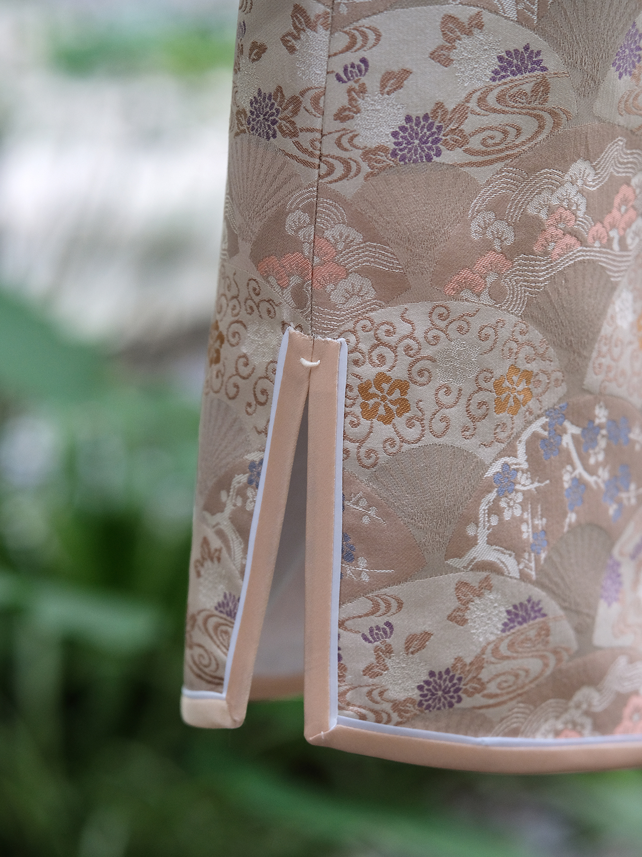 盛唐牡丹 |梅兰竹菊真丝冠乐皱斜襟旗袍裙