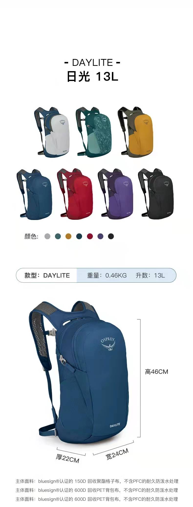 OSPREY Daylite日光小鹰双肩包13升户外通勤旅行便携多功能超轻