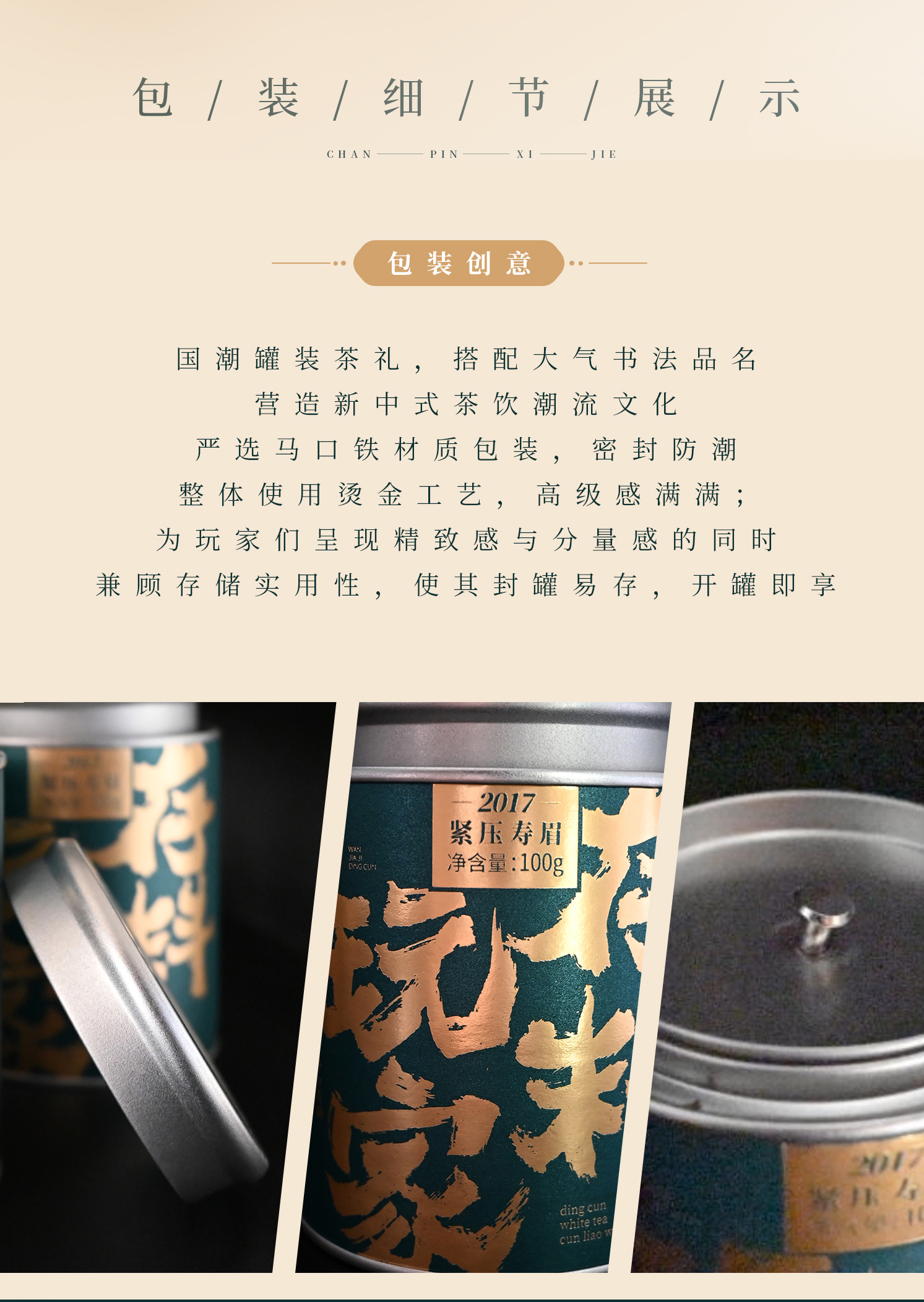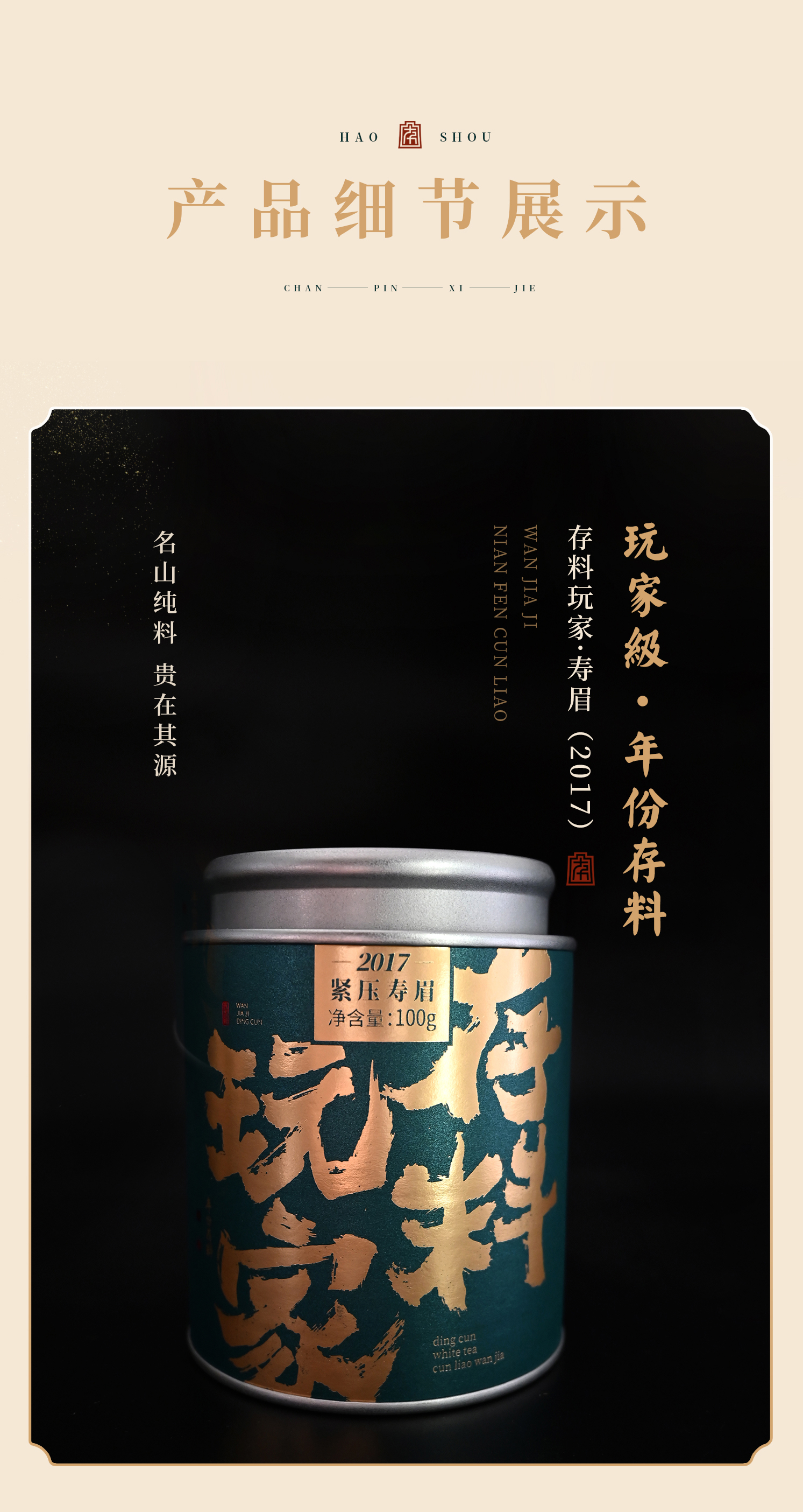 【6年陈老寿眉】华祥苑 存料玩家系列 2017年紧压寿眉 100g铁罐装
