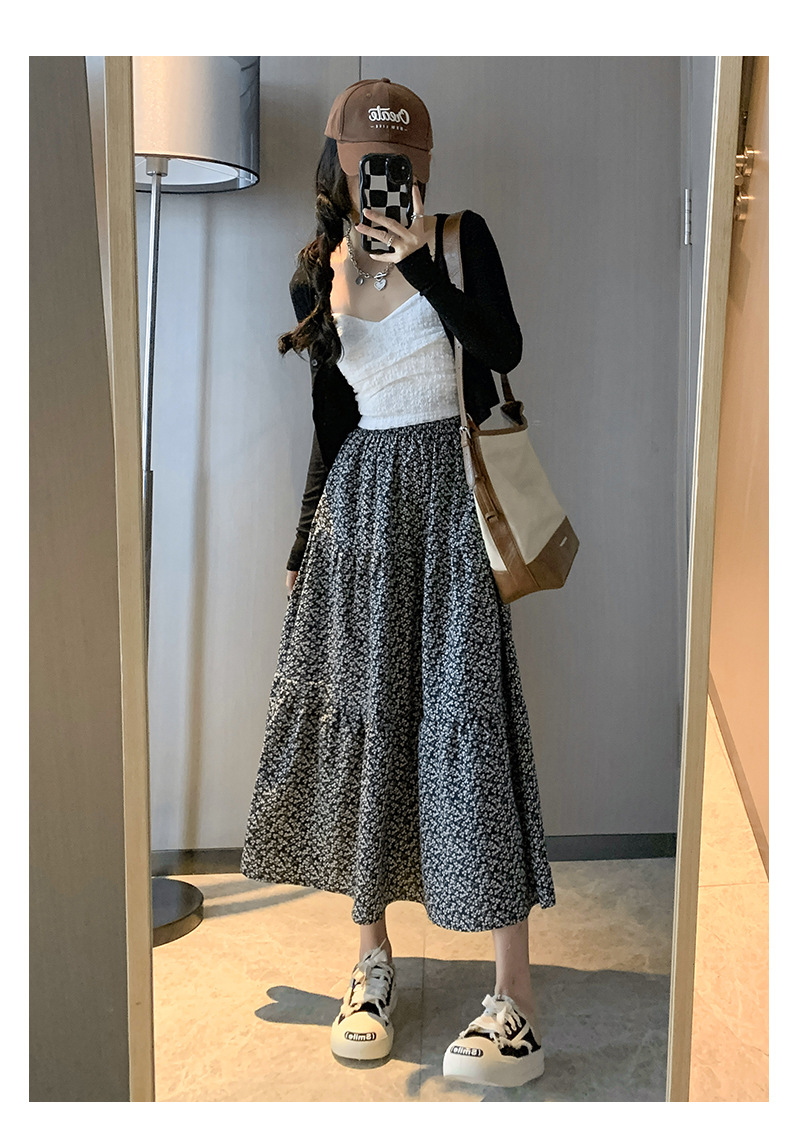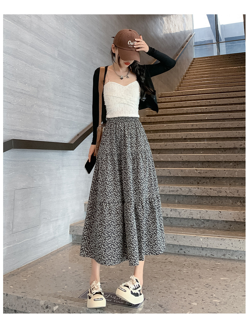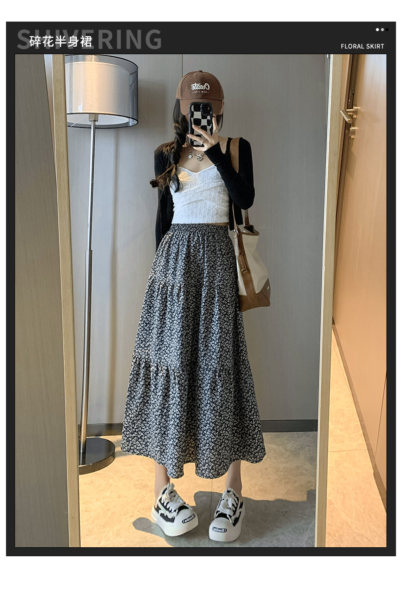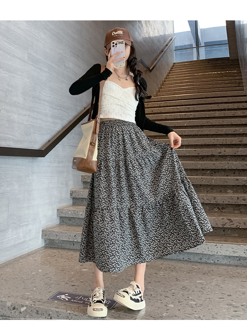 碎花半身蛋糕裙女春夏新款高腰显瘦A字大裙摆温柔风黑色中长款蛋糕裙