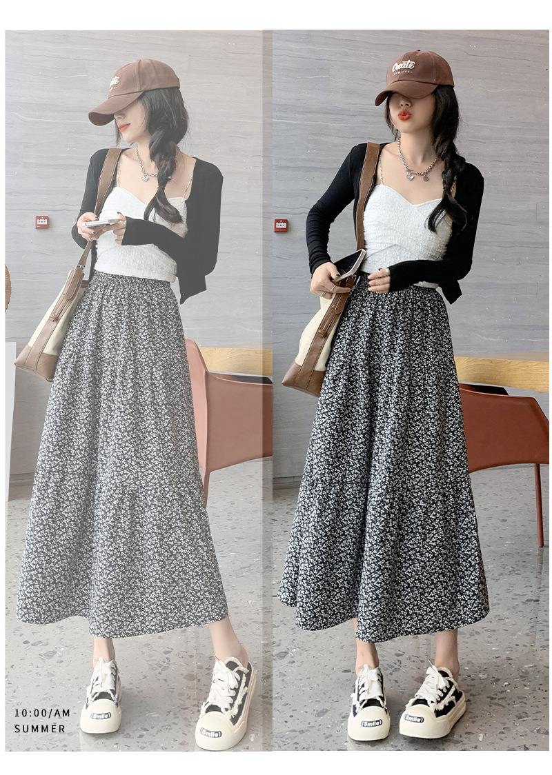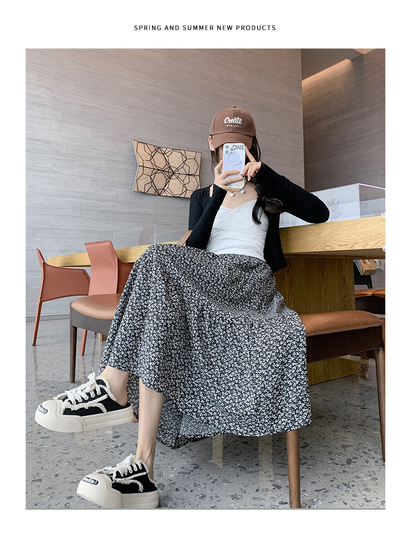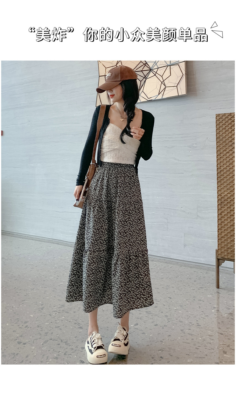 碎花半身蛋糕裙女春夏新款高腰显瘦A字大裙摆温柔风黑色中长款蛋糕裙