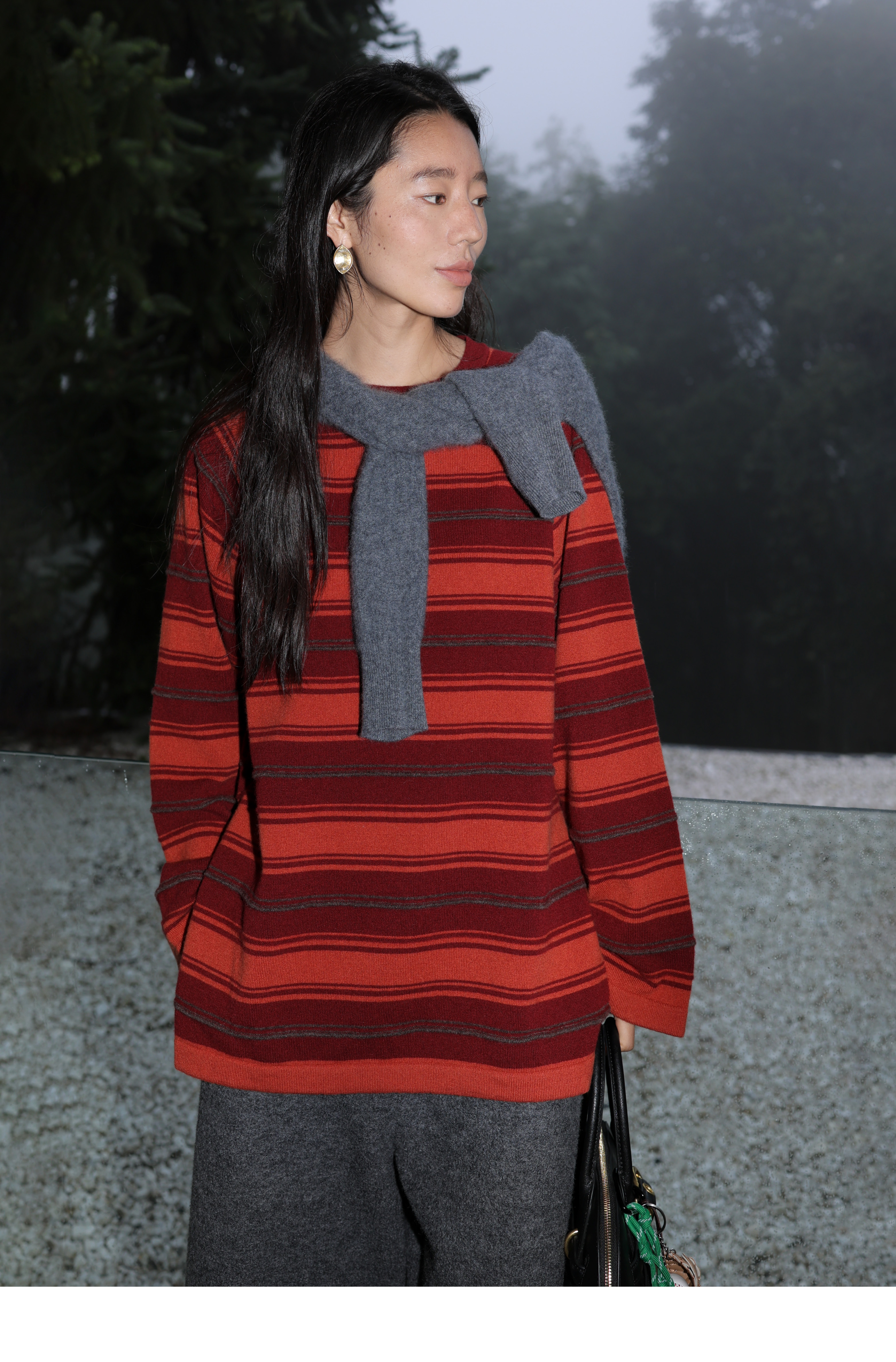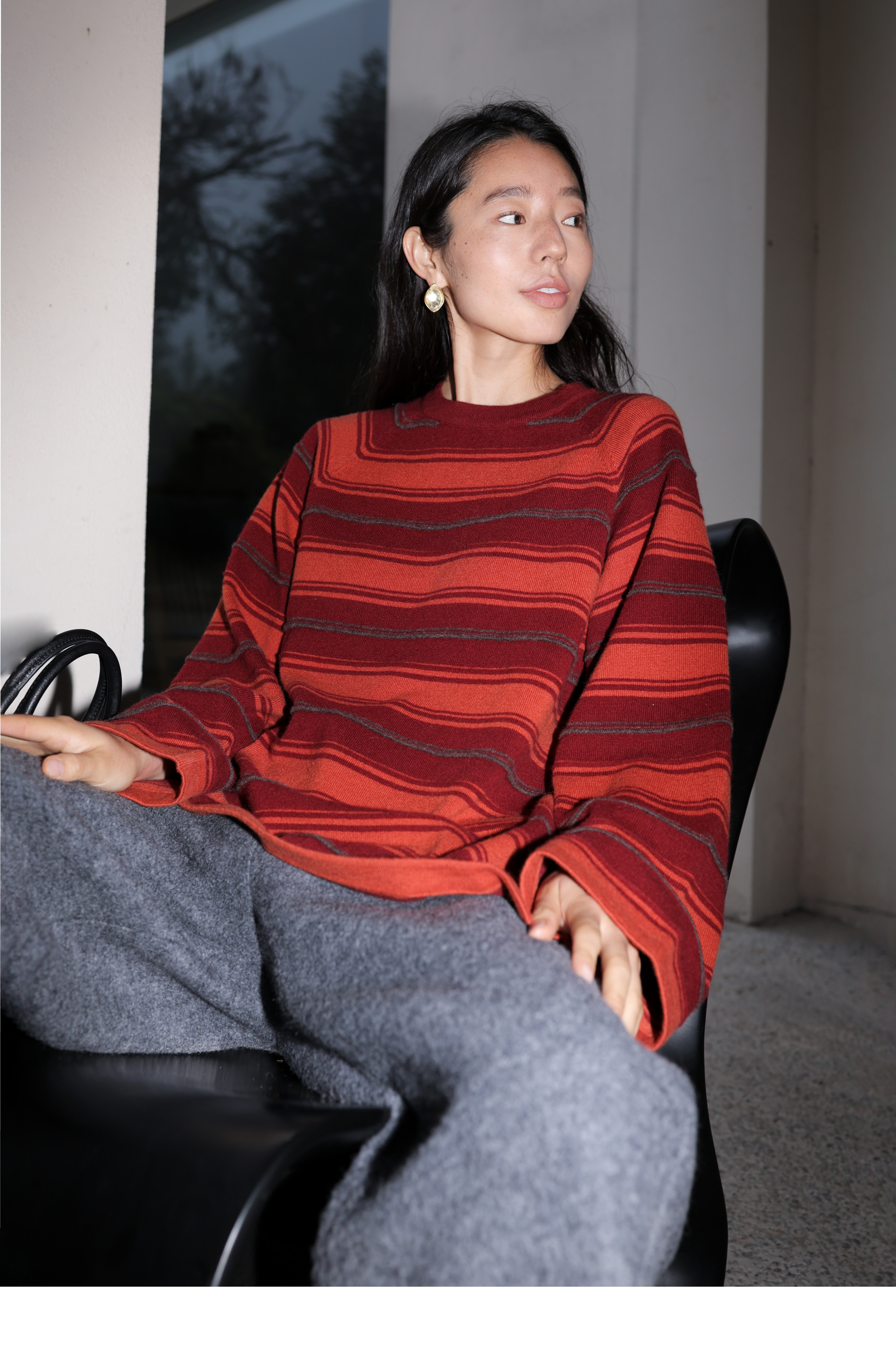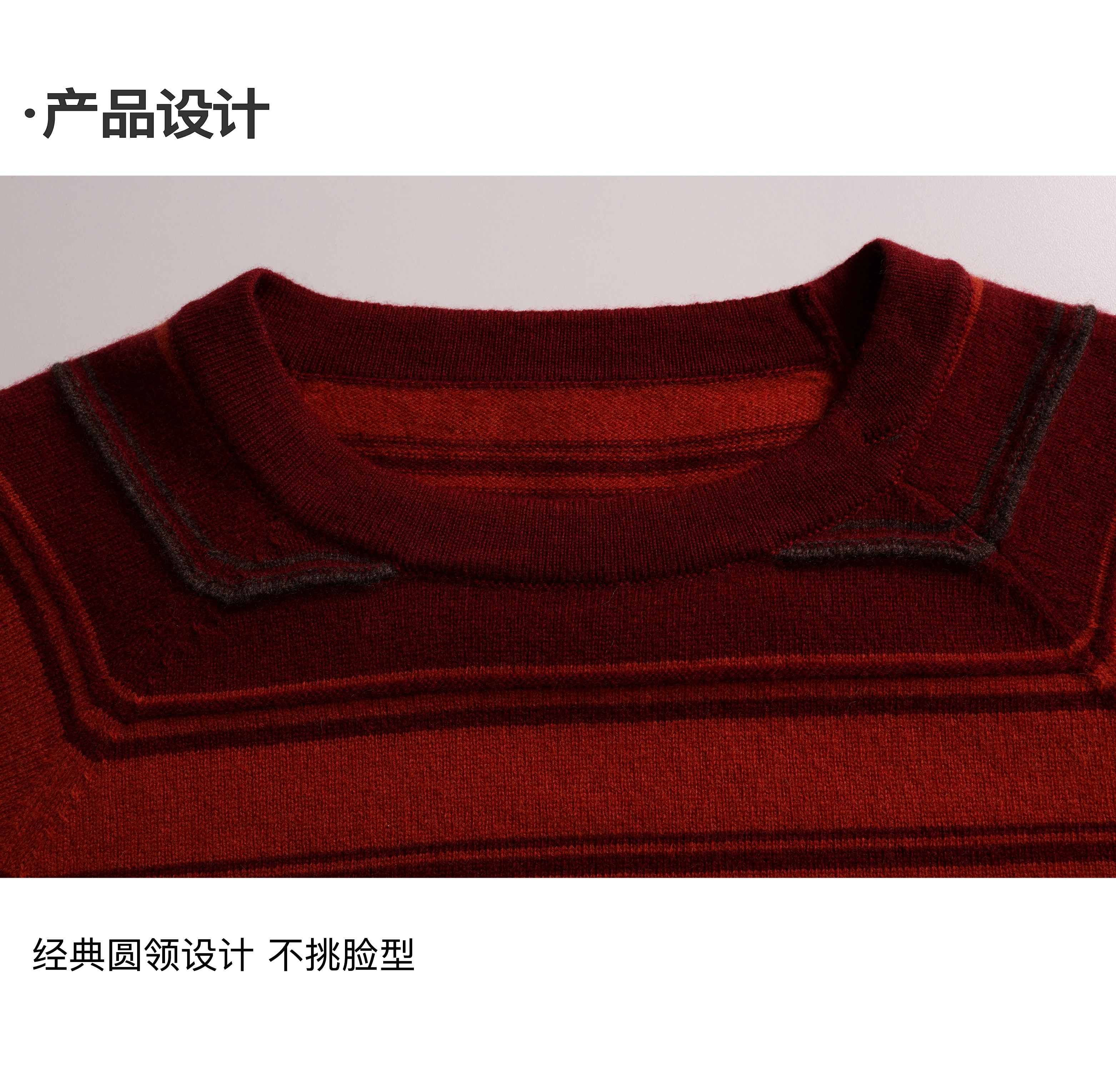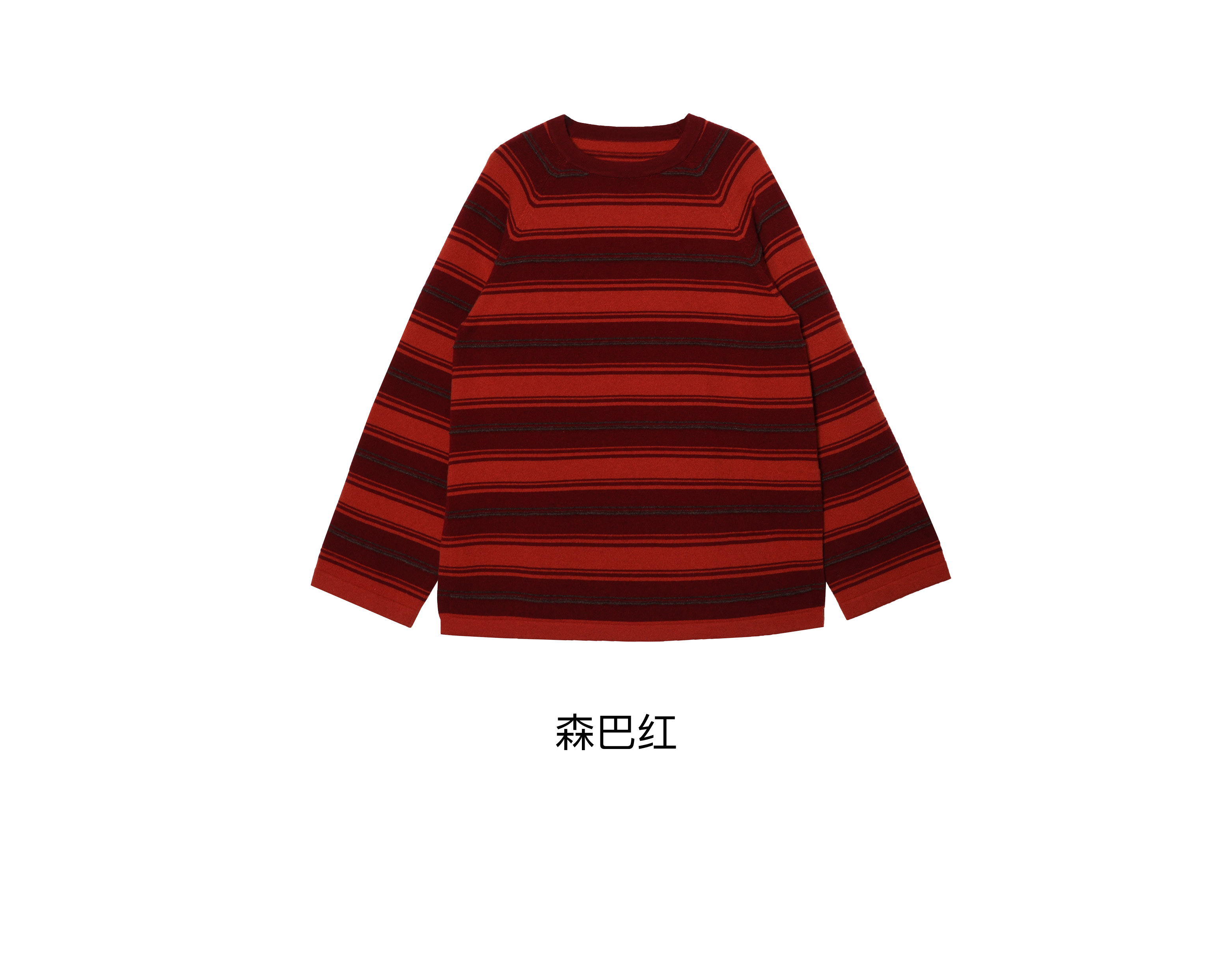 素舶 美利奴羊毛细腻柔软渐变条纹撞色百搭圆领宽松针织衫毛衣