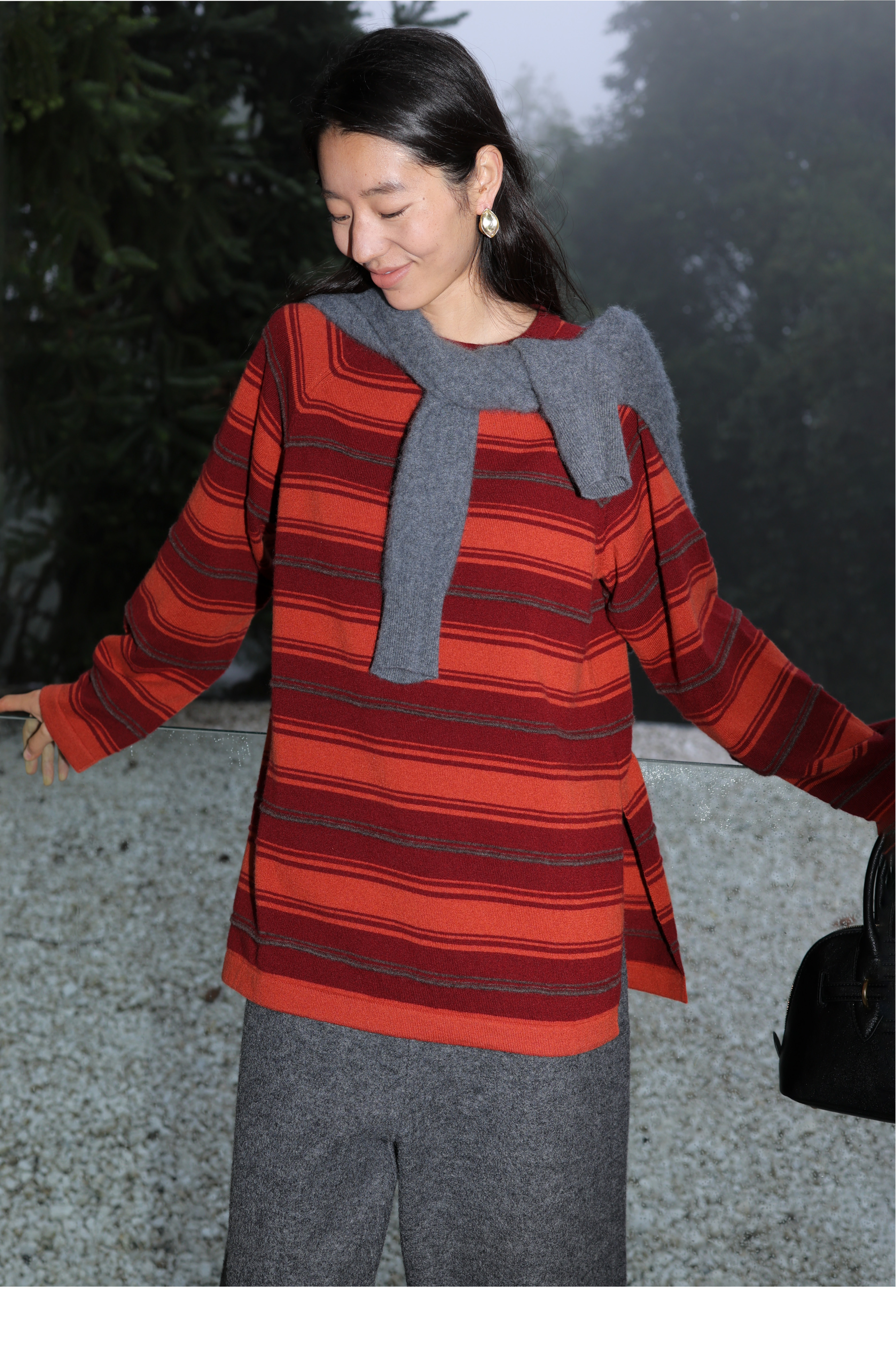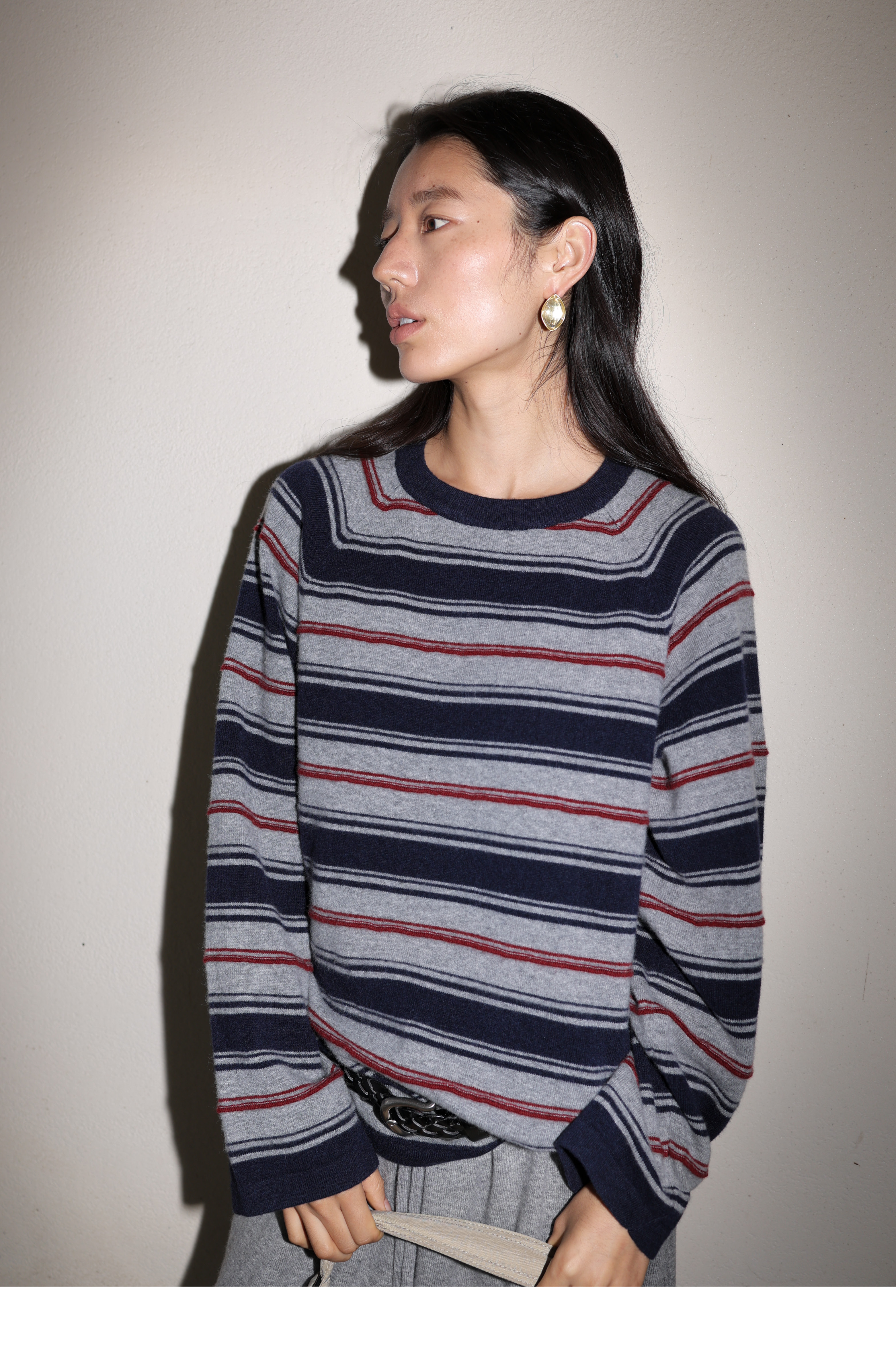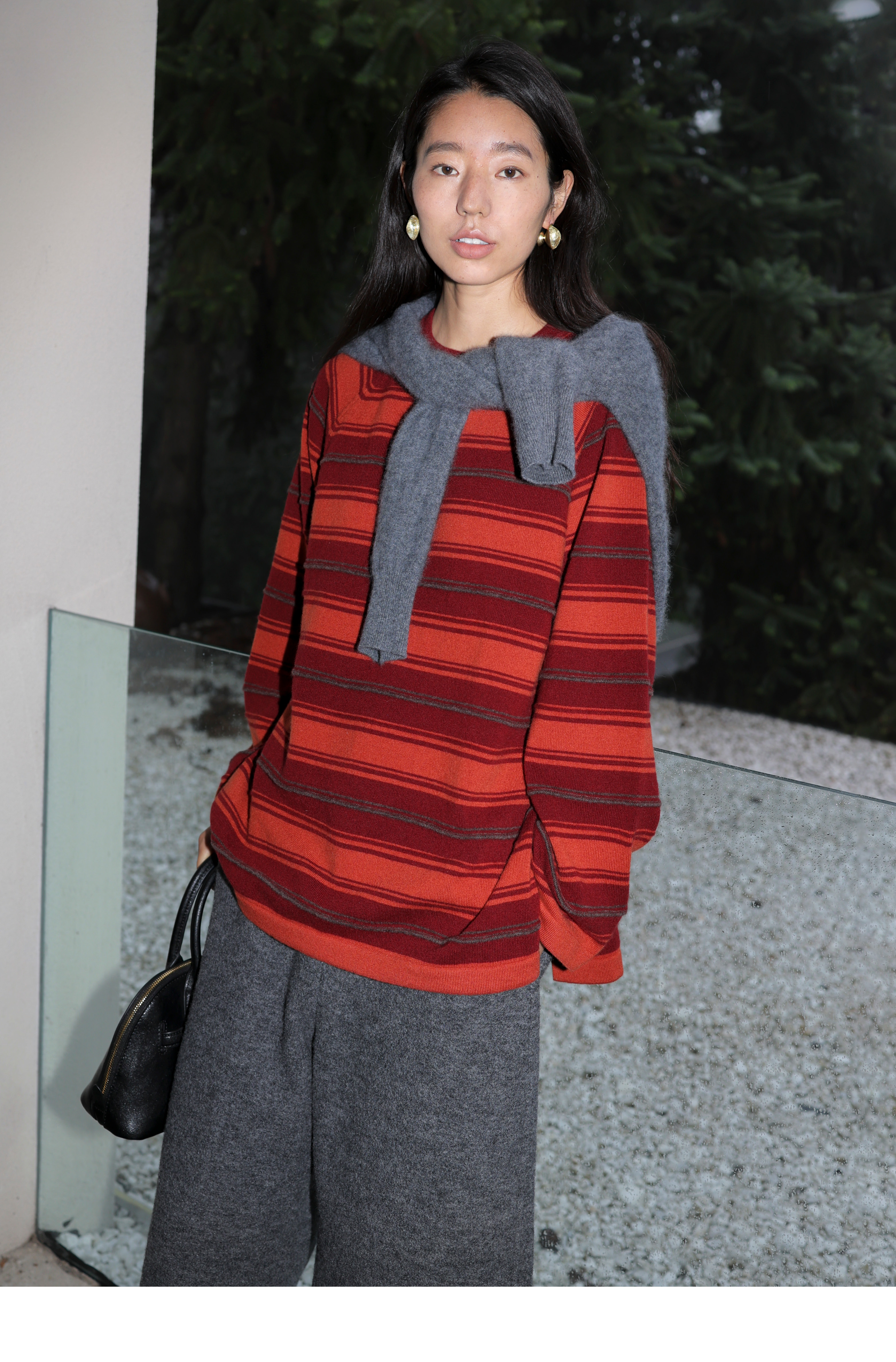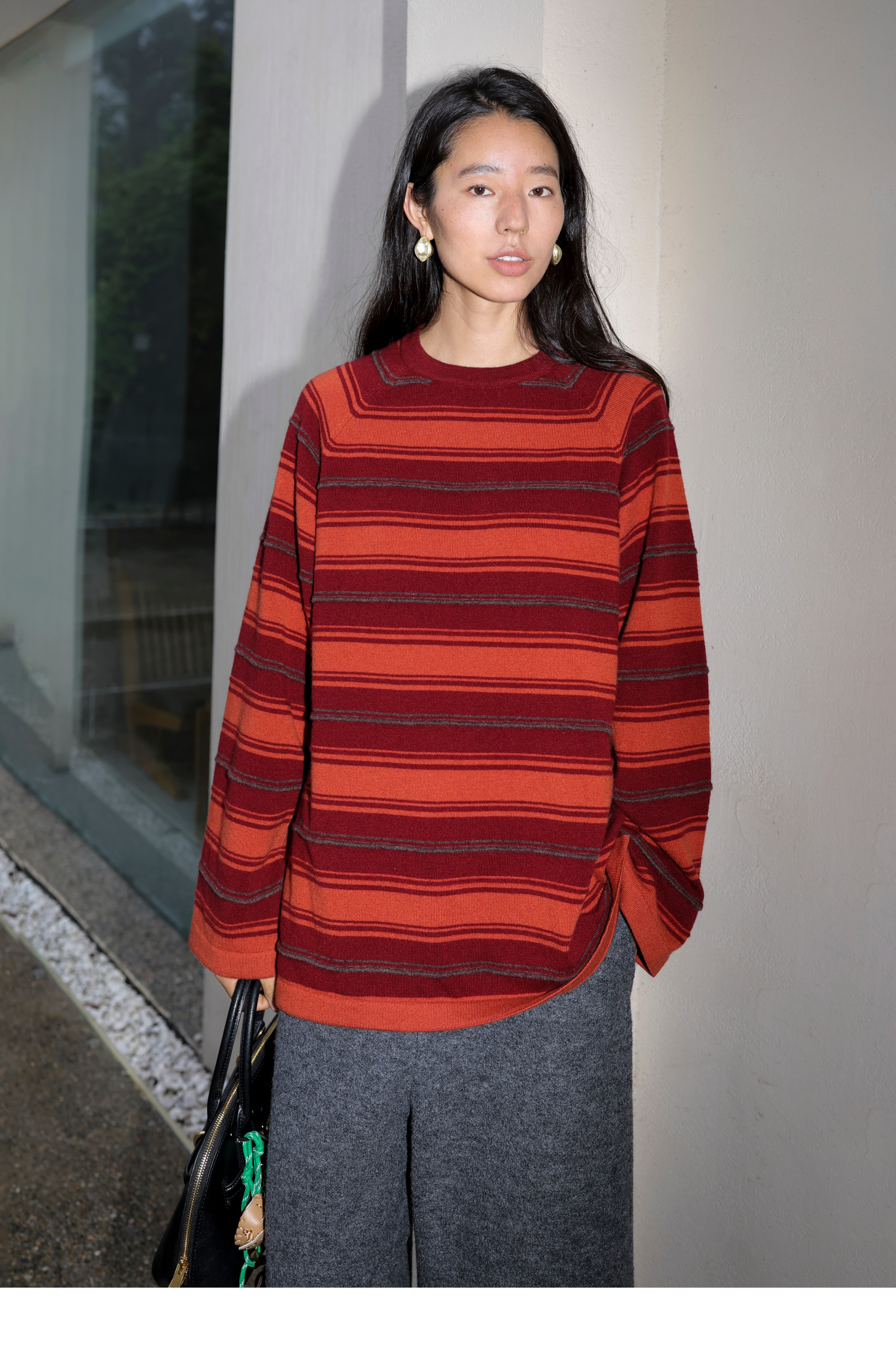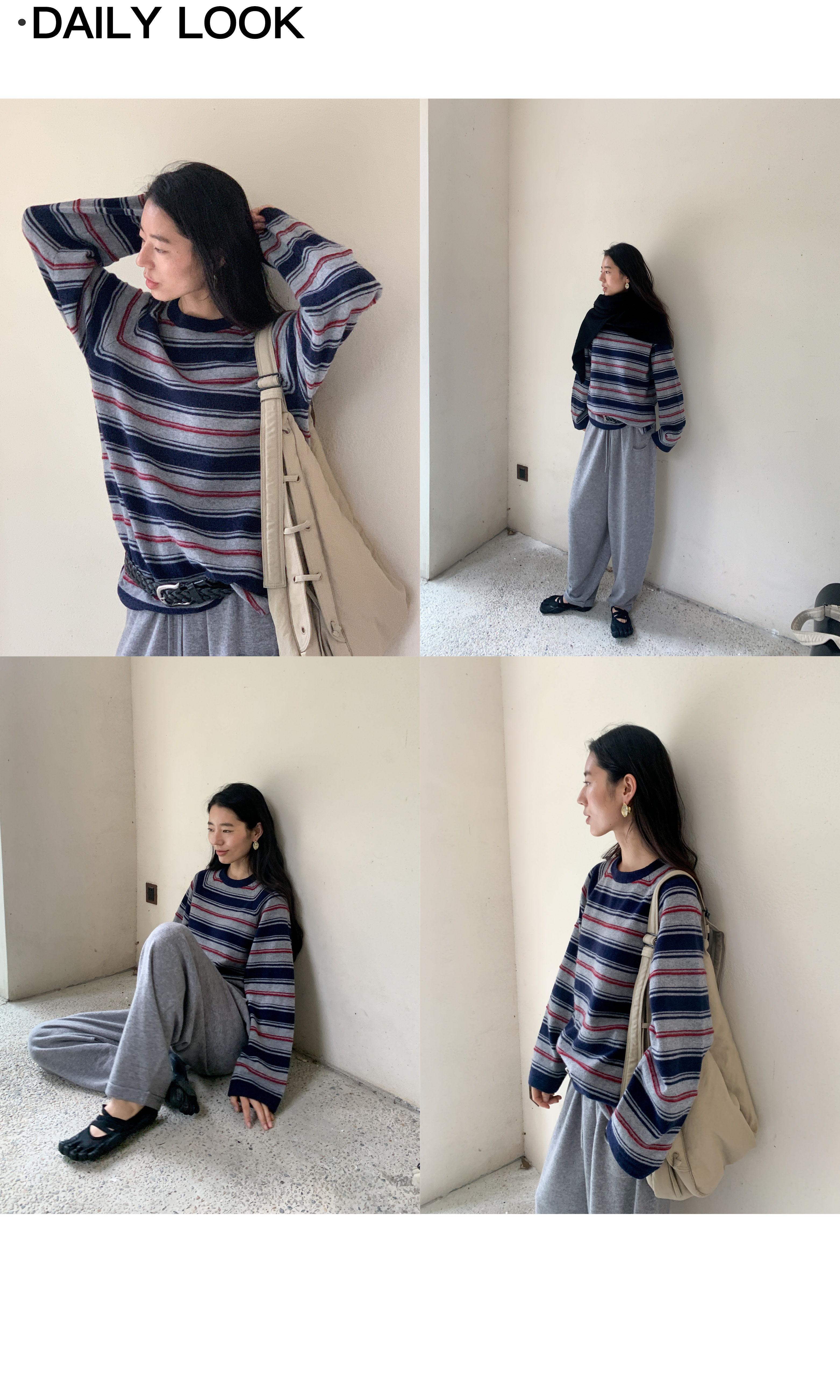 素舶 美利奴羊毛细腻柔软渐变条纹撞色百搭圆领宽松针织衫毛衣