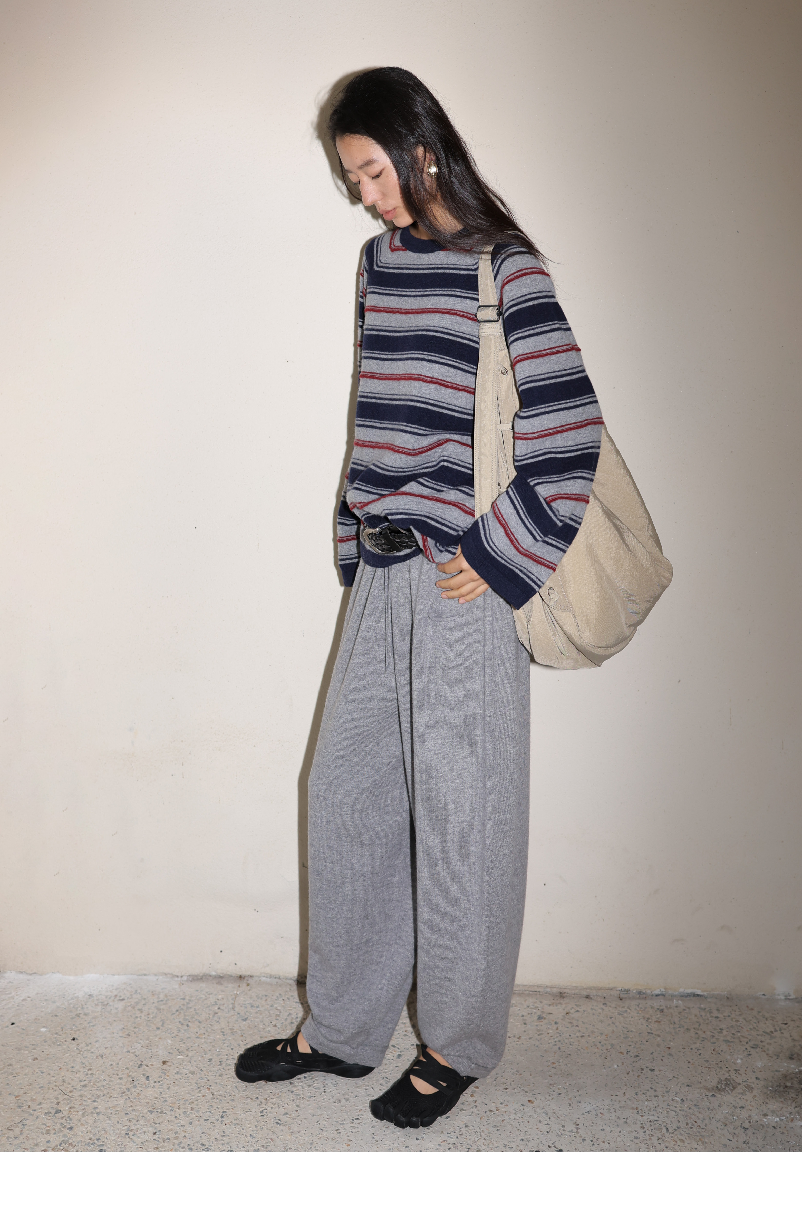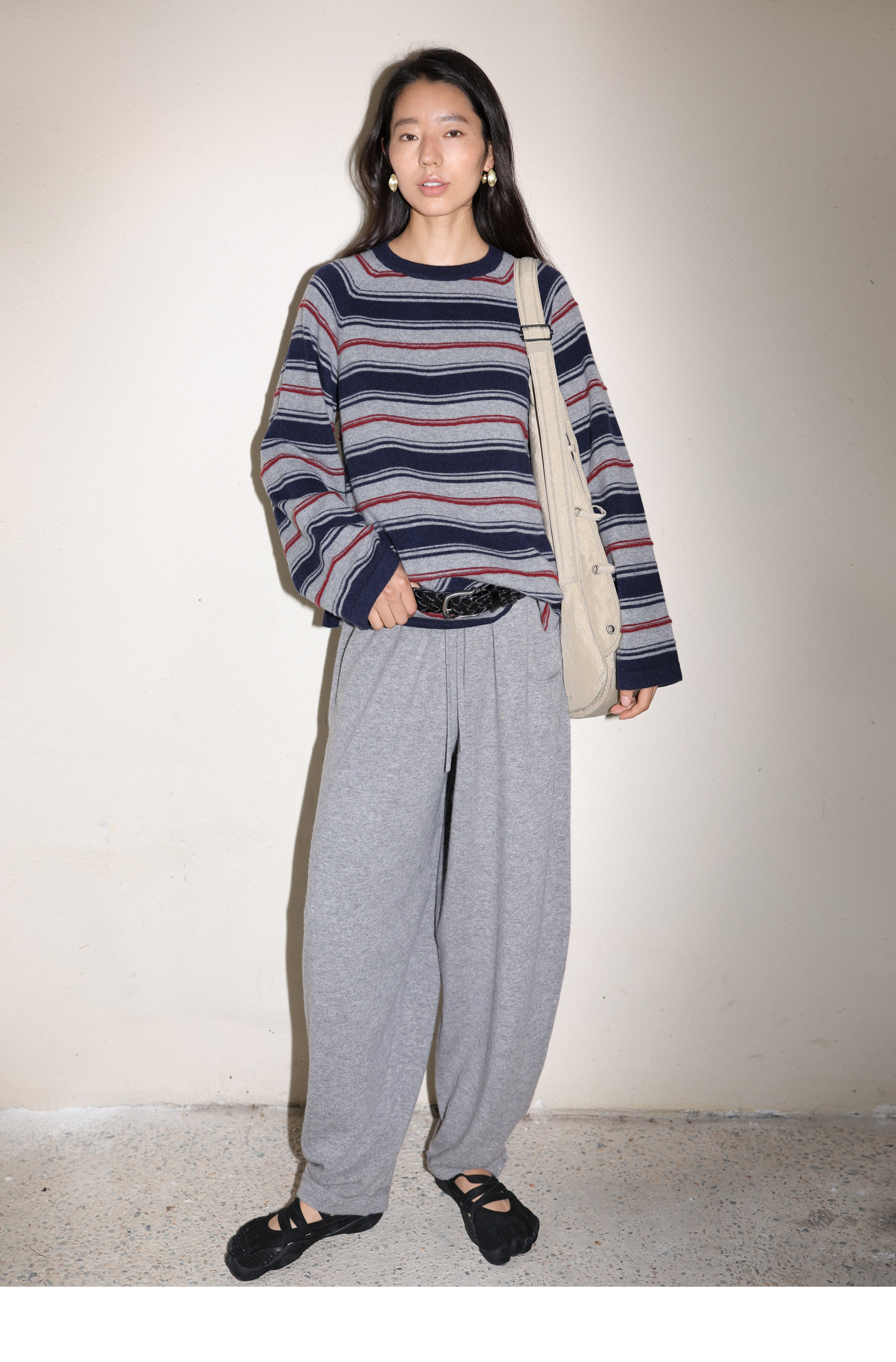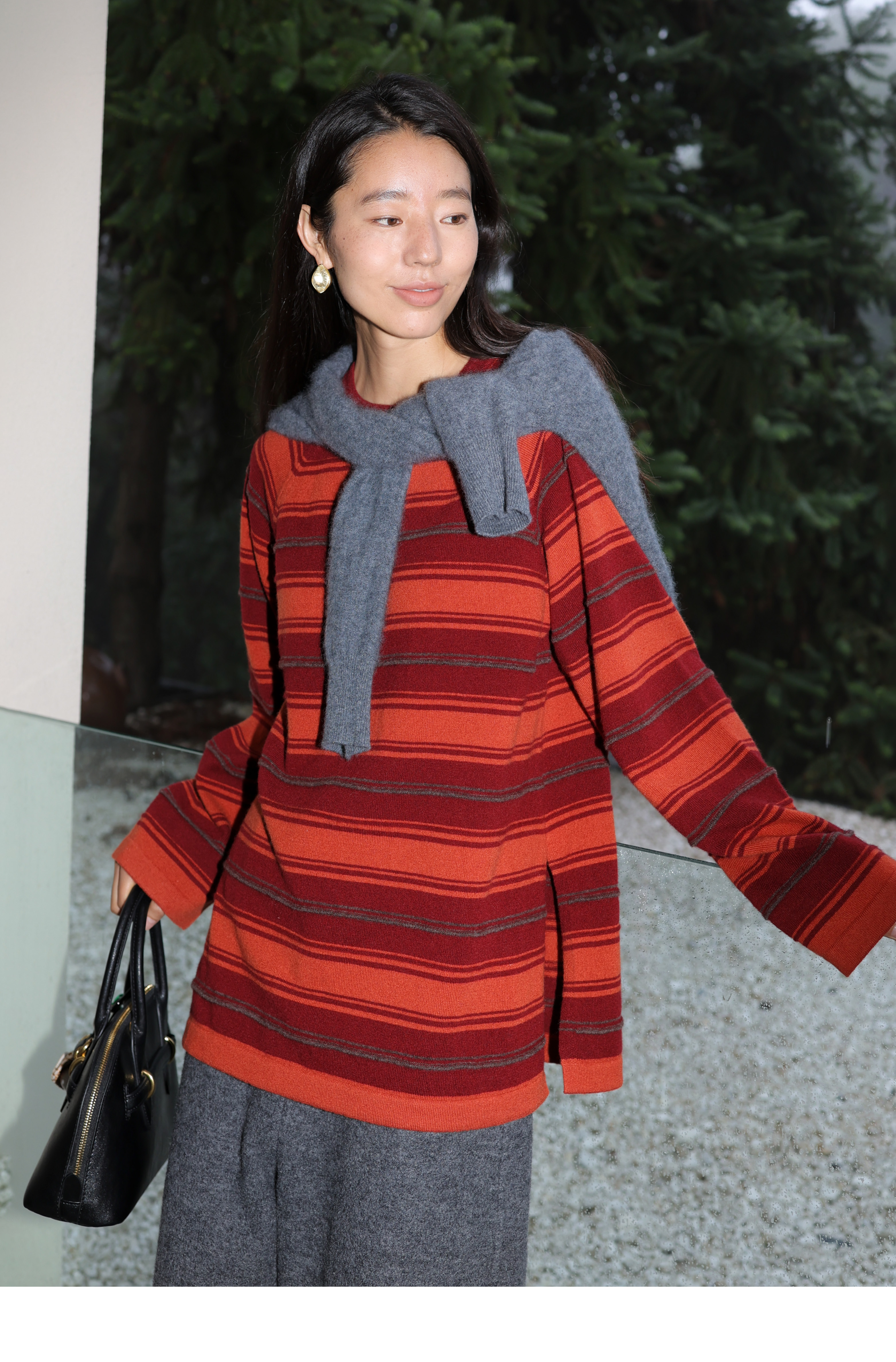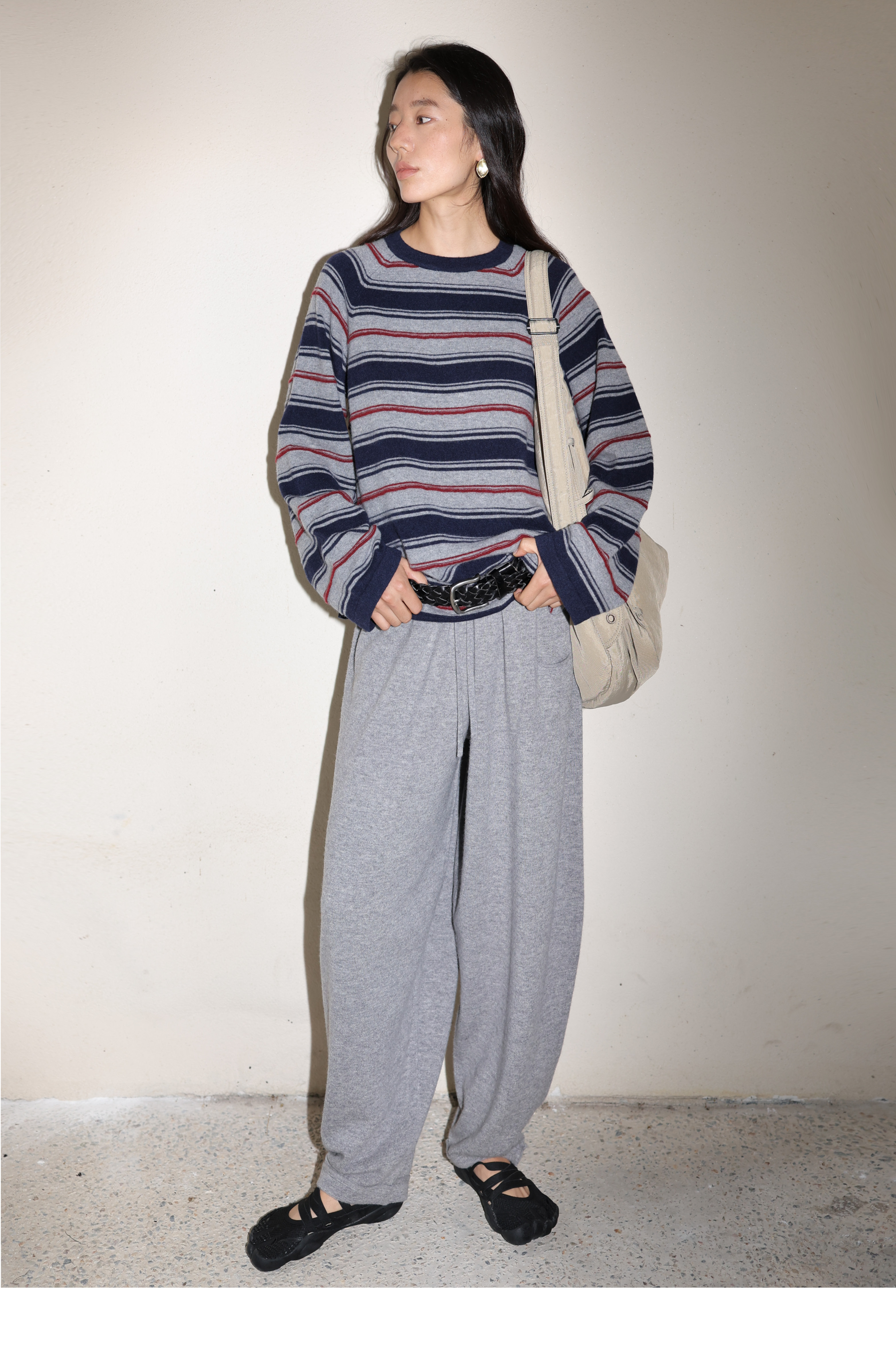 素舶 美利奴羊毛细腻柔软渐变条纹撞色百搭圆领宽松针织衫毛衣