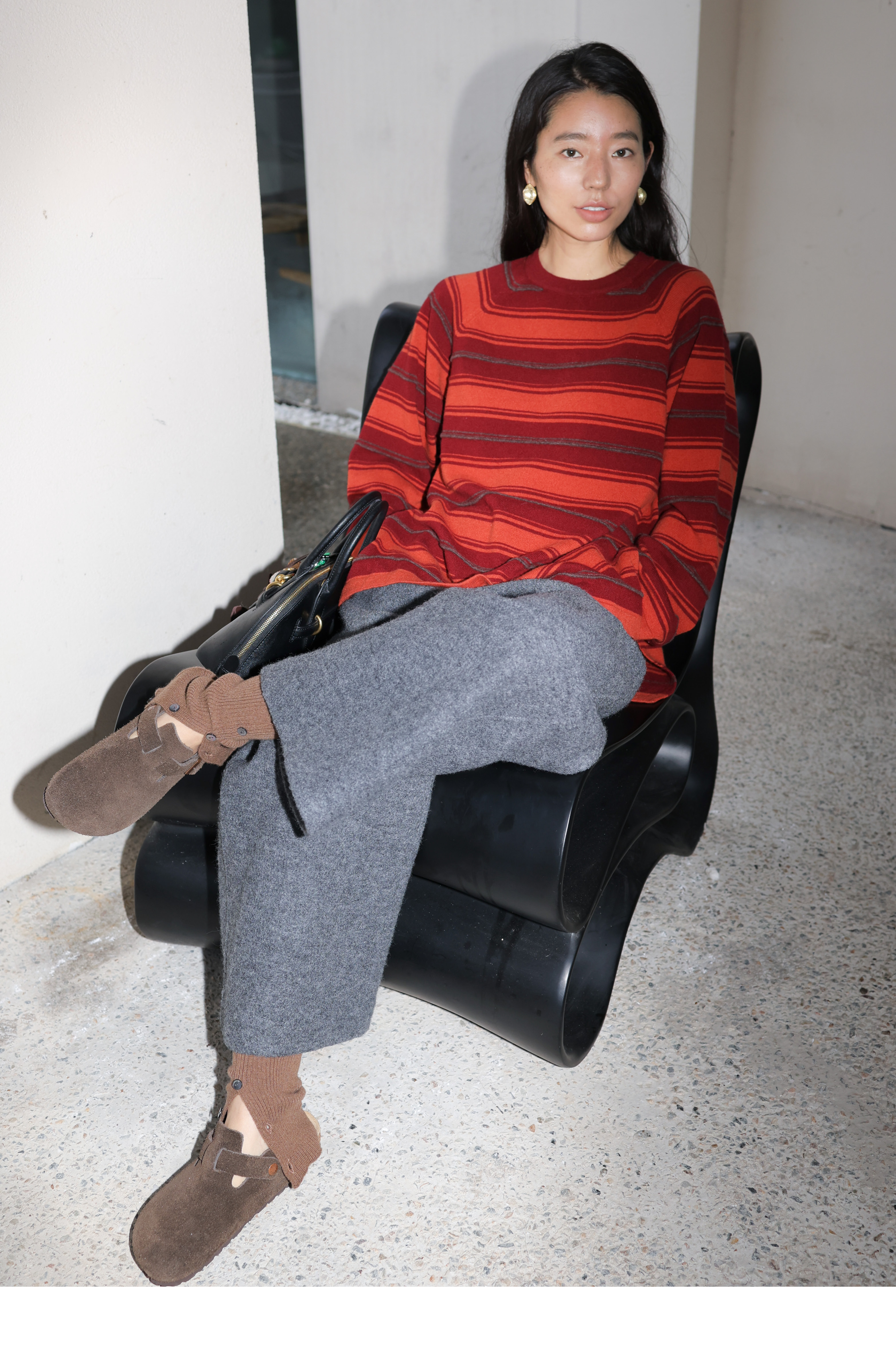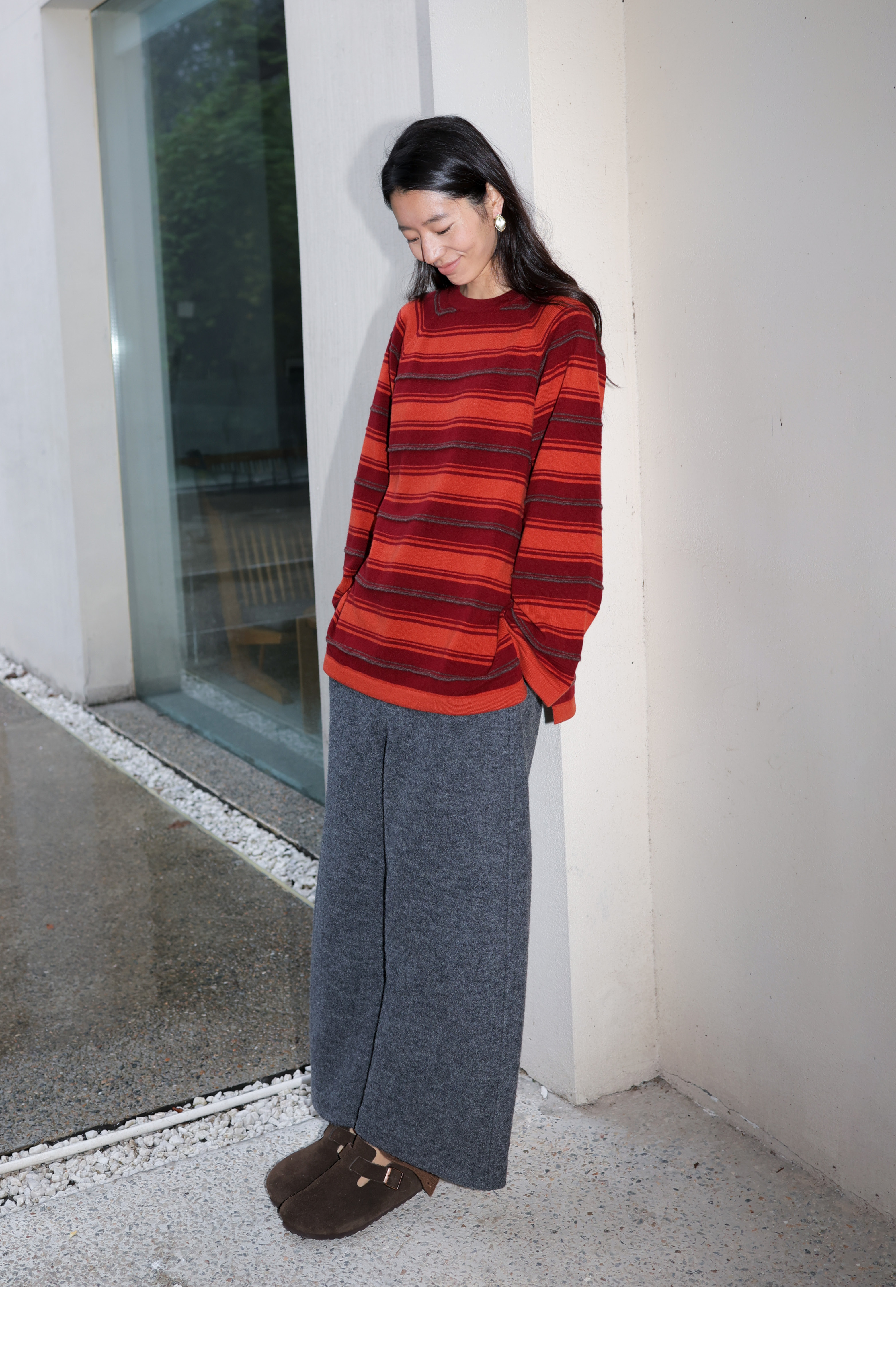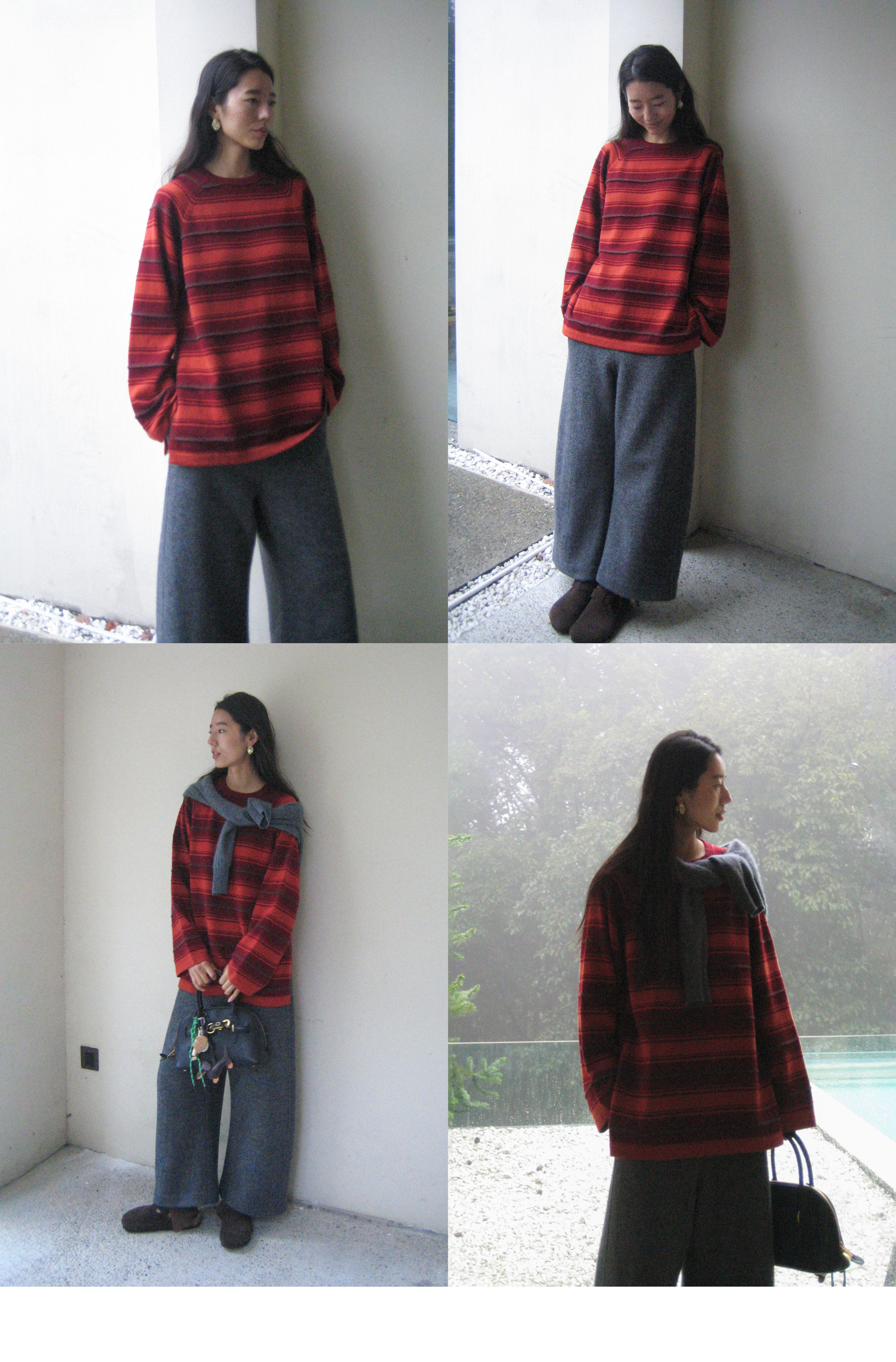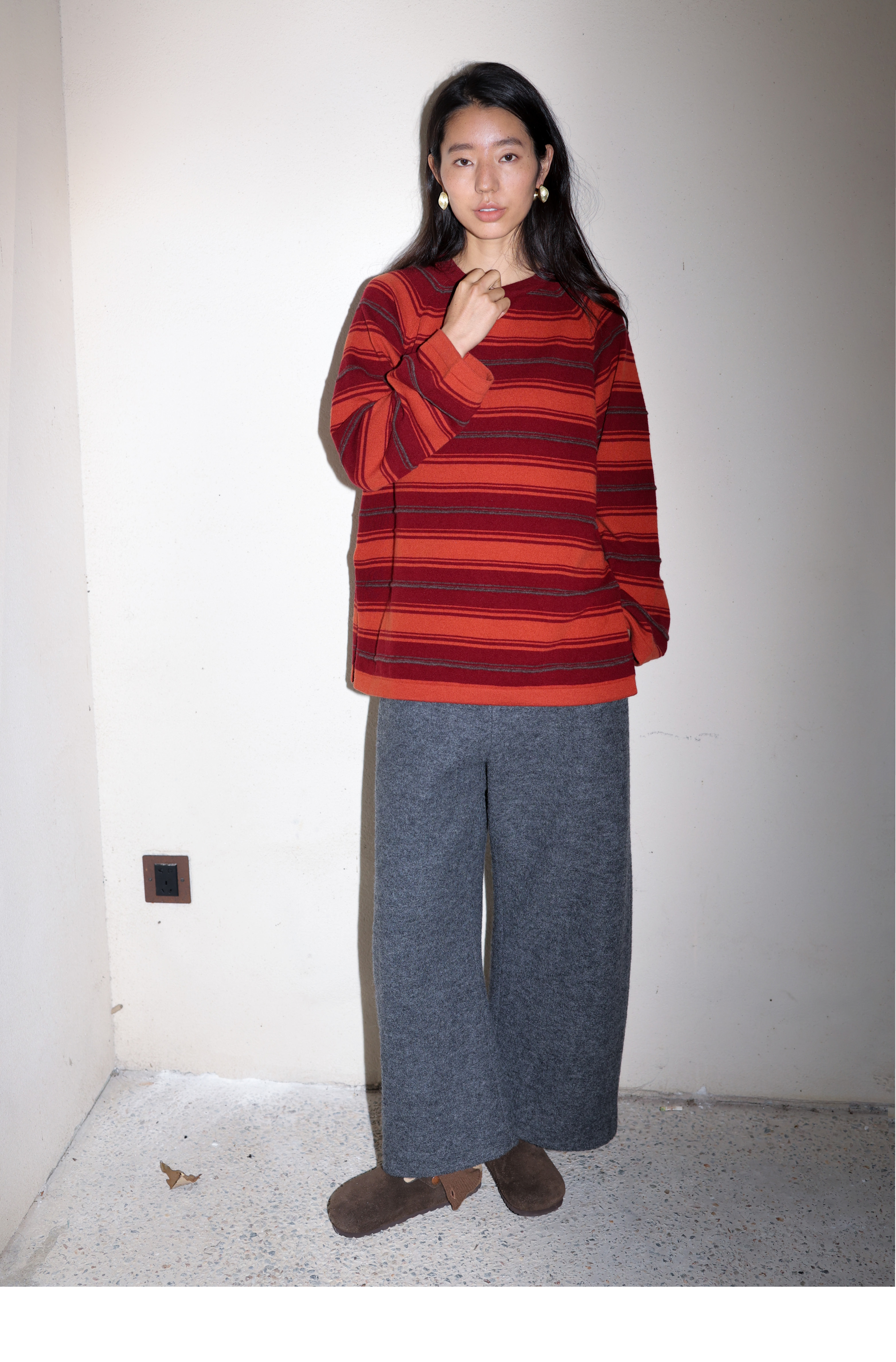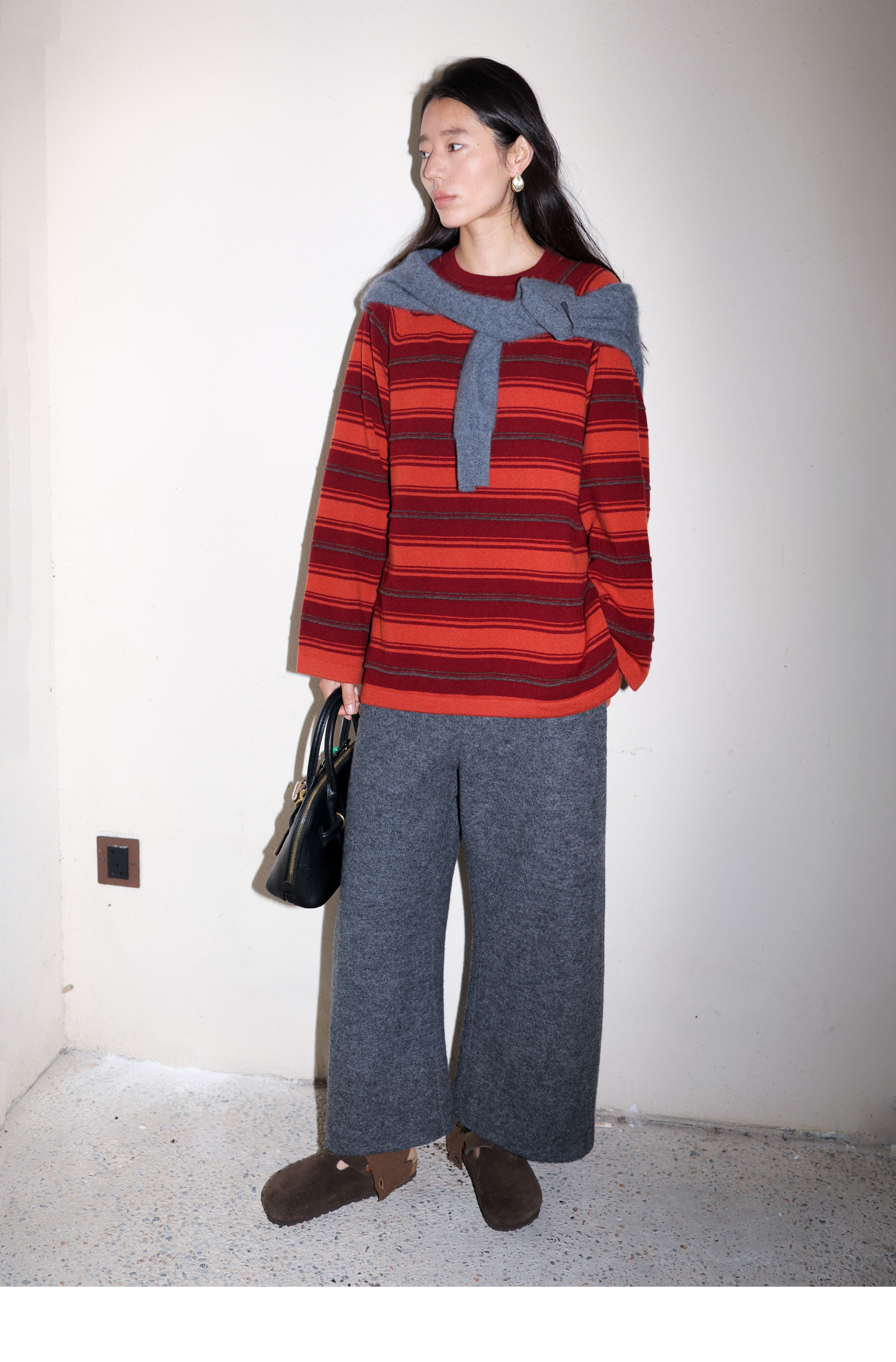 素舶 美利奴羊毛细腻柔软渐变条纹撞色百搭圆领宽松针织衫毛衣