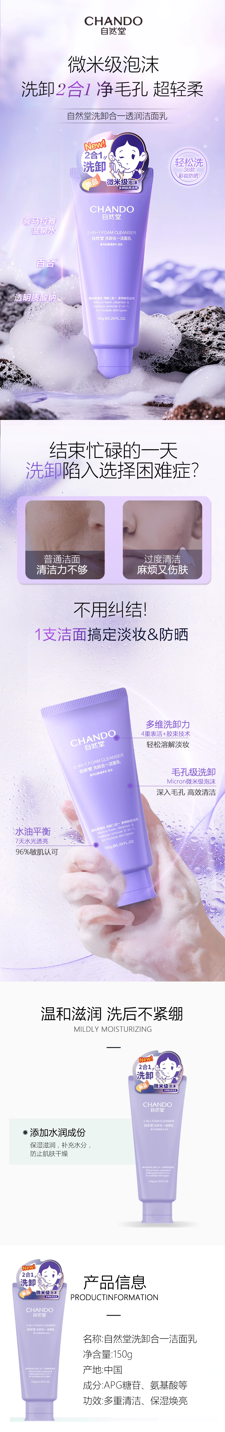 自然堂洗卸合一透润洁面乳150g【30174273】