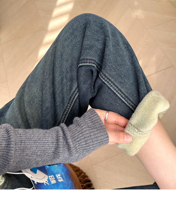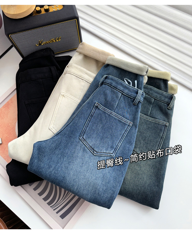 王炸来了~水貂绒!2025冬季加厚加绒牛仔裤女 梨形身材显瘦老爹哈伦裤! 商品图3