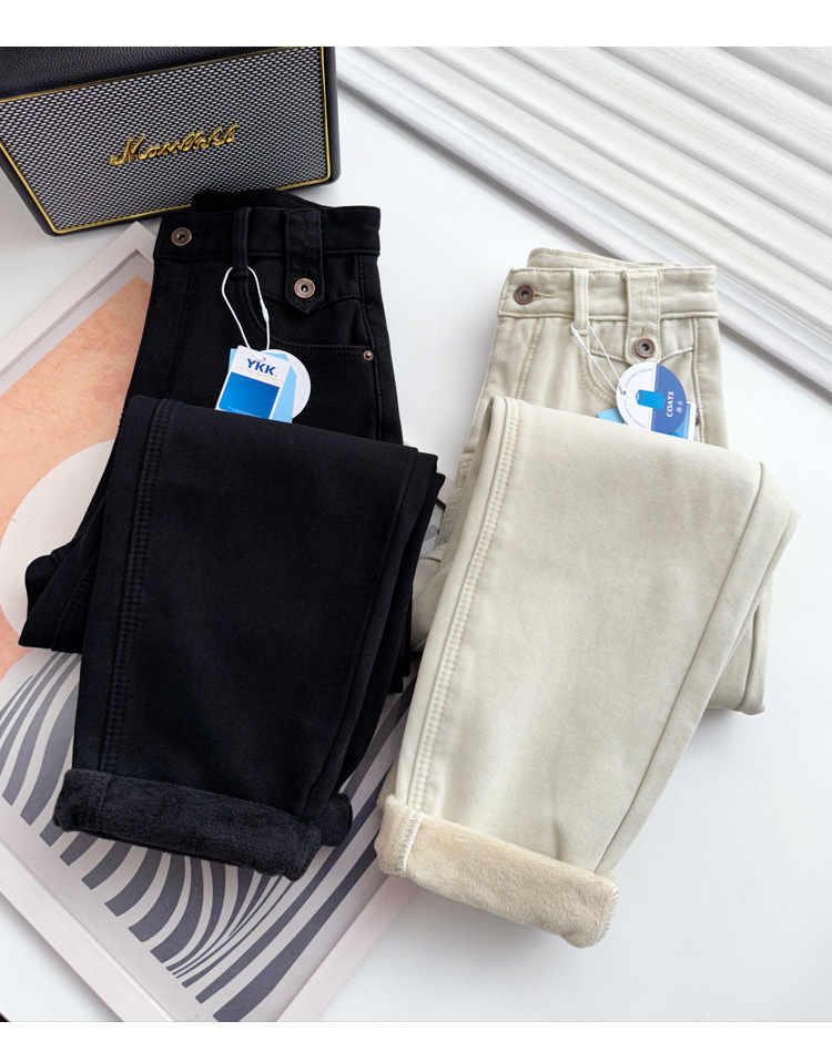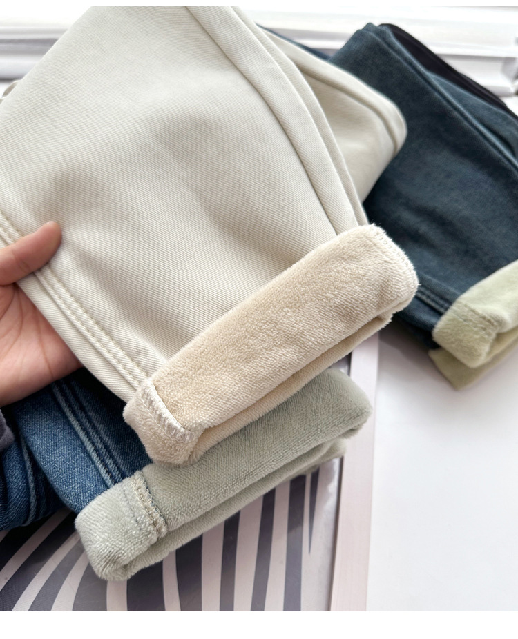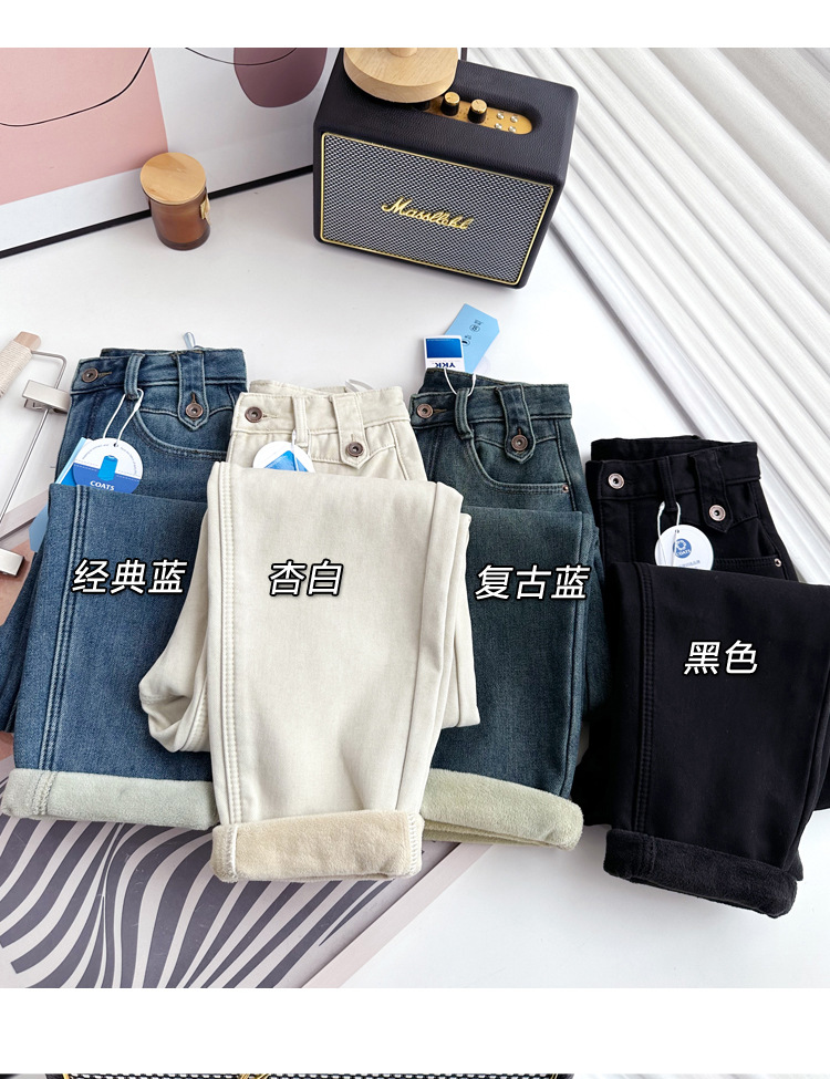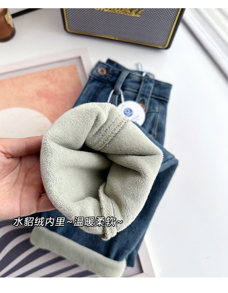 王炸来了~水貂绒!2025冬季加厚加绒牛仔裤女 梨形身材显瘦老爹哈伦裤!