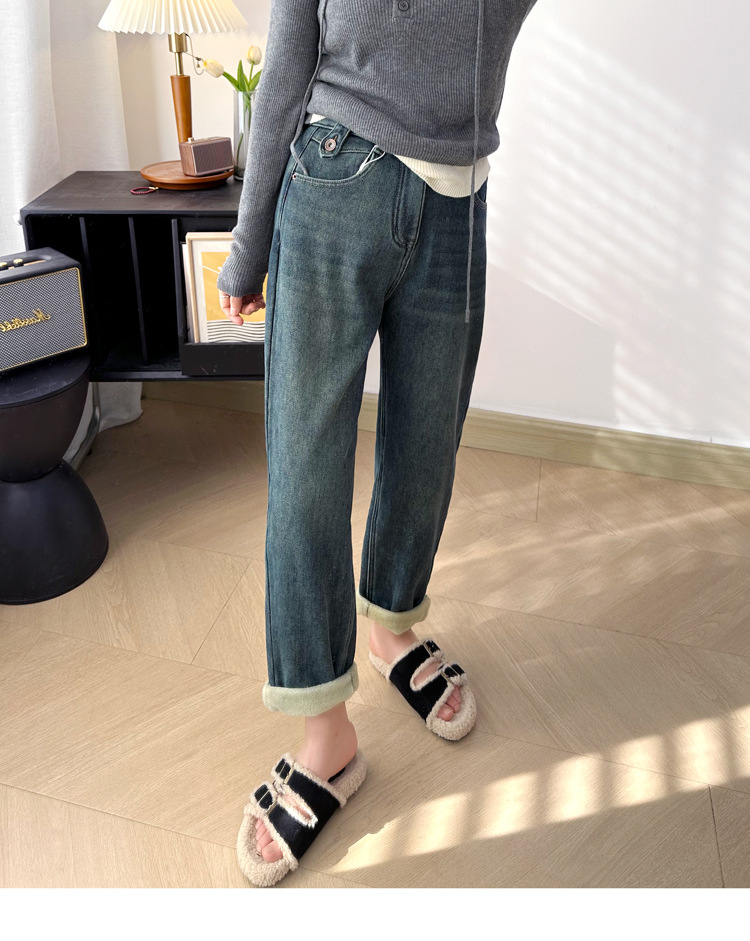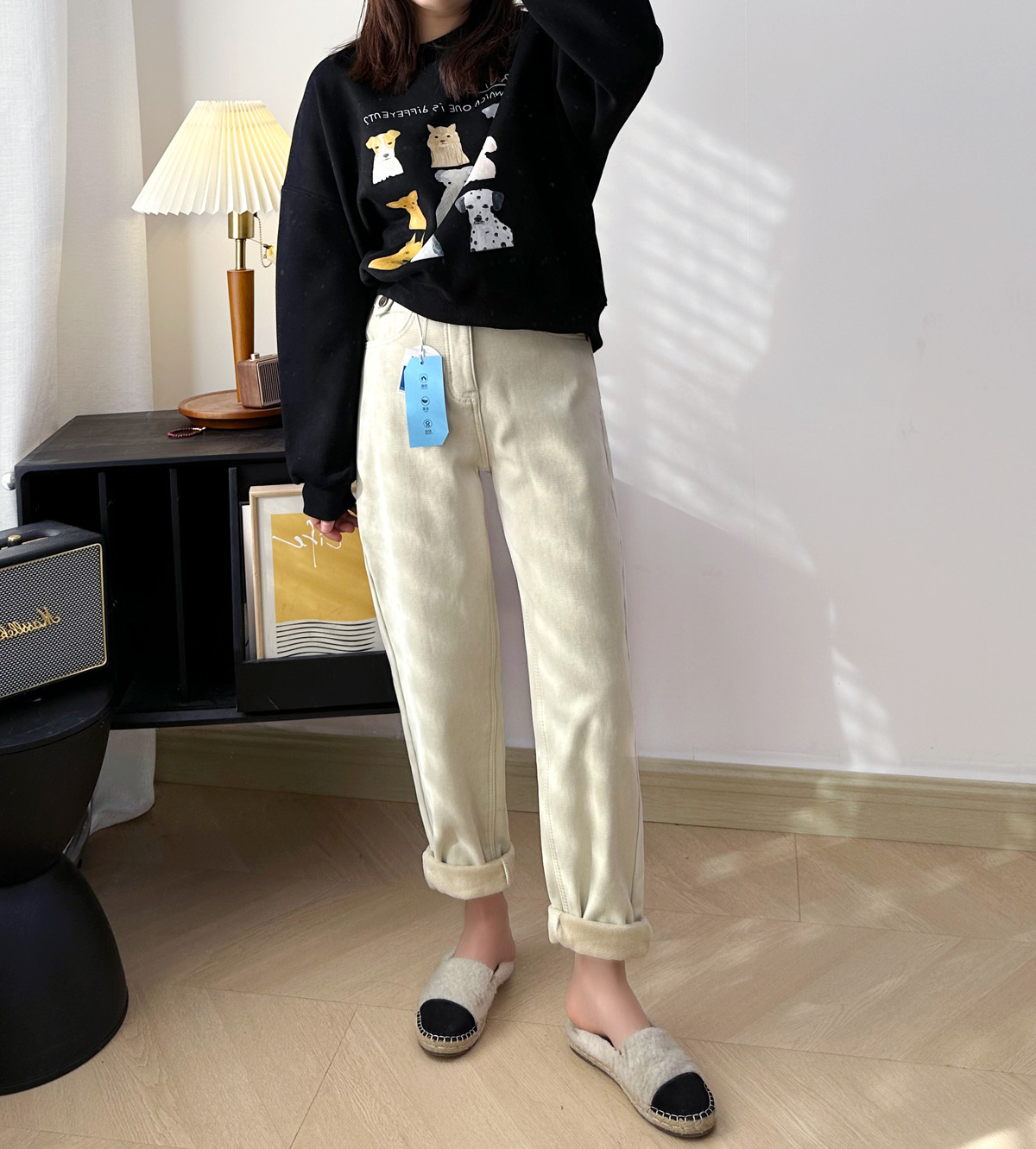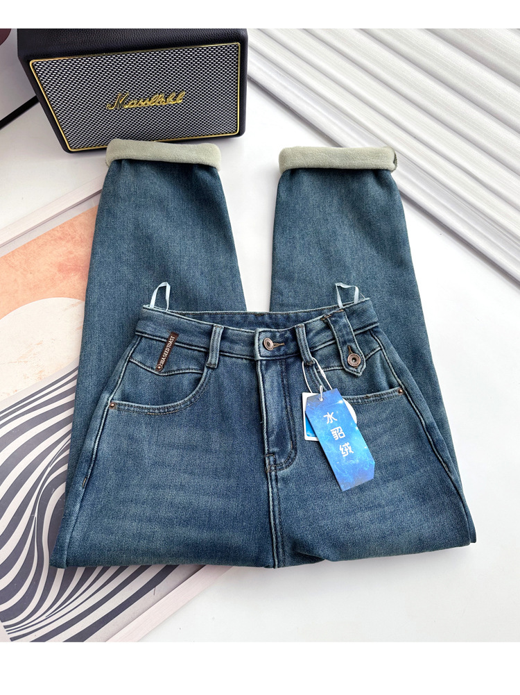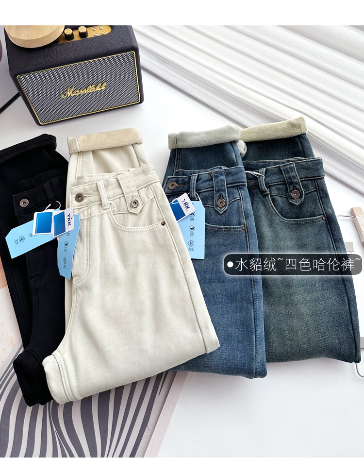 王炸来了~水貂绒!2025冬季加厚加绒牛仔裤女 梨形身材显瘦老爹哈伦裤! 商品图0