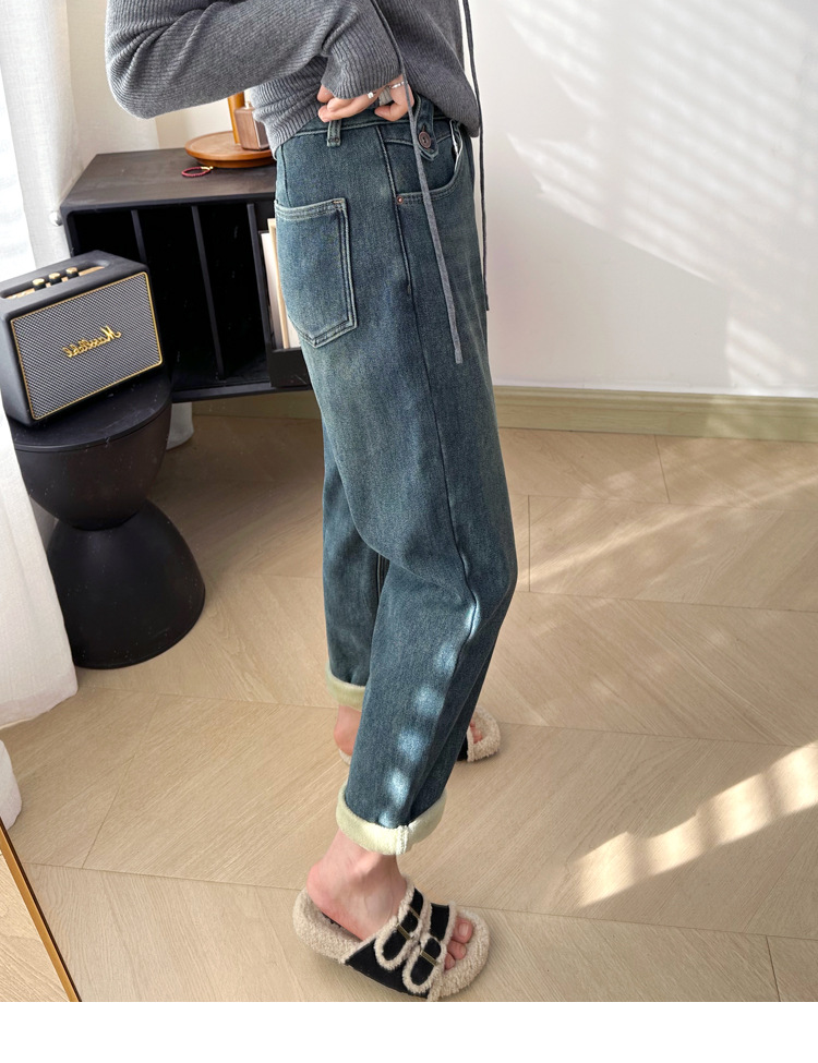 王炸来了~水貂绒!2025冬季加厚加绒牛仔裤女 梨形身材显瘦老爹哈伦裤! 商品图4