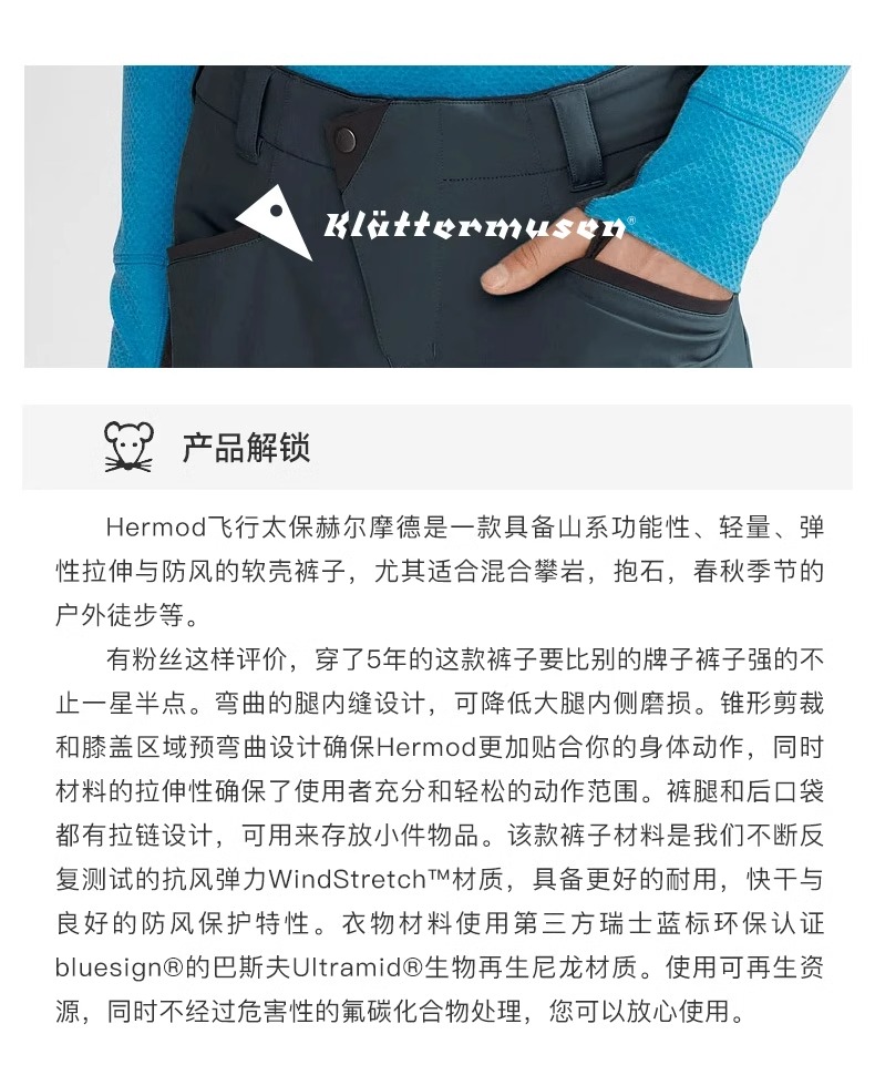 KLATTERMUSEN/攀山鼠赫尔摩德攀岩徒步防风快干耐磨软壳裤15575M