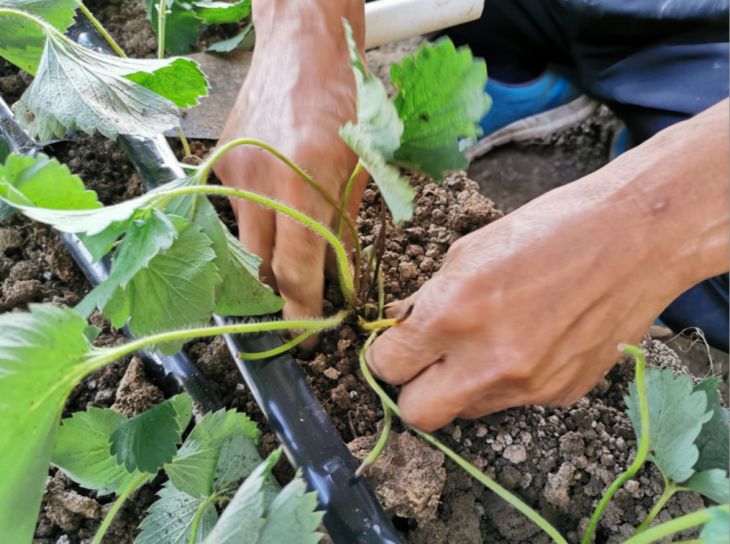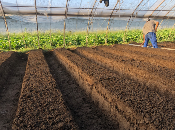 为了给草莓们提供的肥沃土壤环境,每个棚施三吨发酵好的优质有机肥(蚯蚓粪和羊粪)作为底肥,
