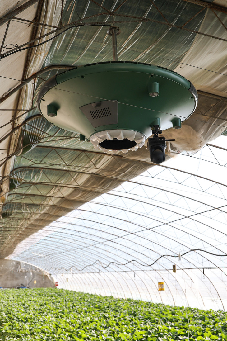 它可以释放臭氧杀菌;还可以通过灯光和风机来杀虫:选择黄灯吸引蚜虫减少损害,选择蓝灯吸引蓟马减少损害