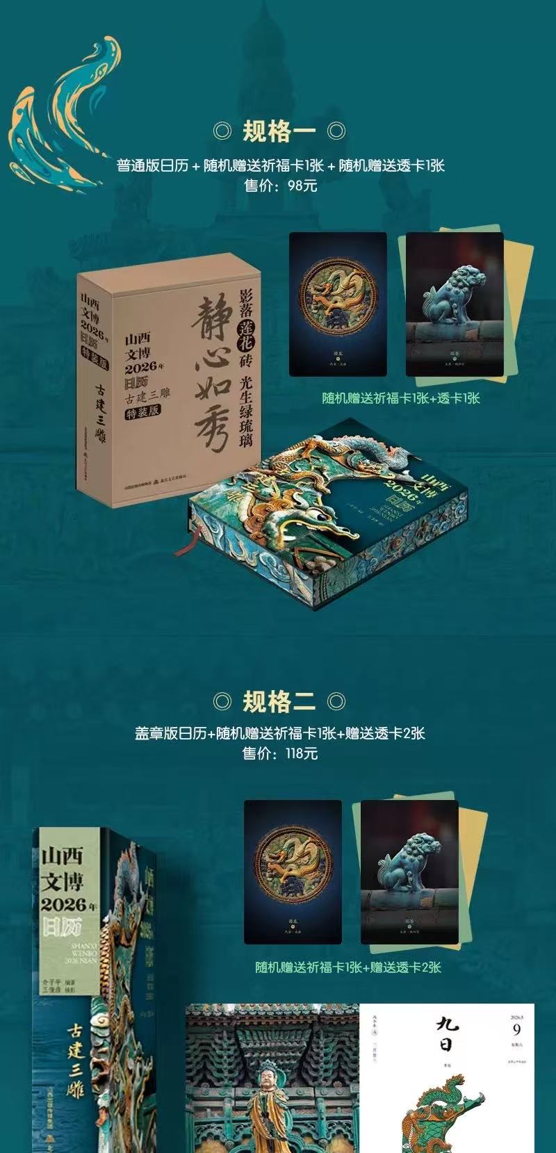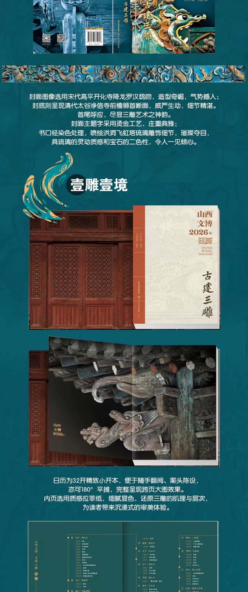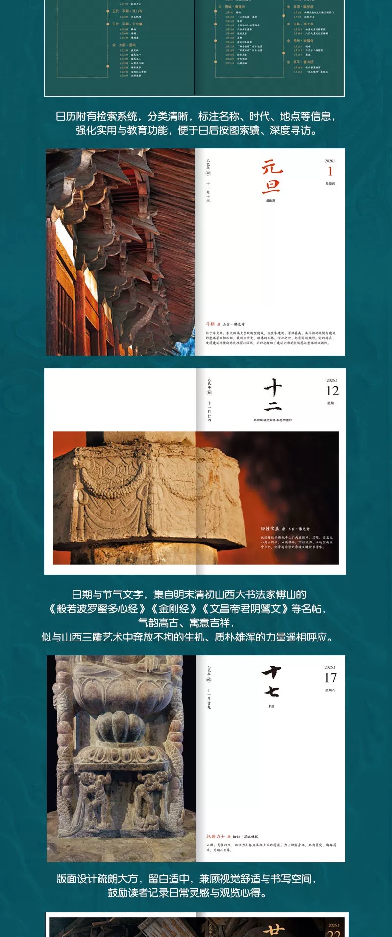 山西文博日历2026年 全景展现中国文化魅力建筑装饰艺术史日历