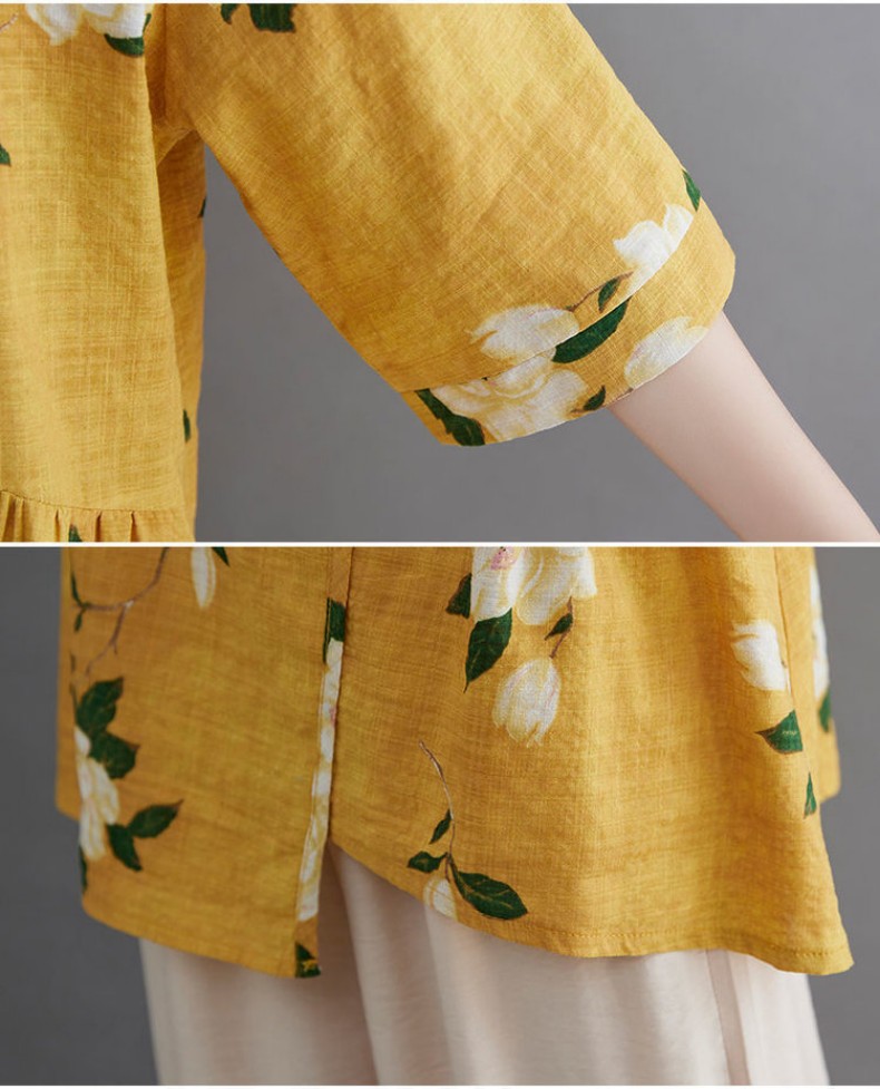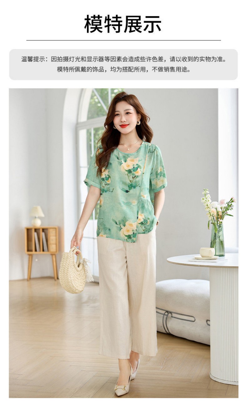 对音夏季休闲妈妈装国风水墨印花上衣+阔腿裤宽松大码套装JK-Z2363 商品图2