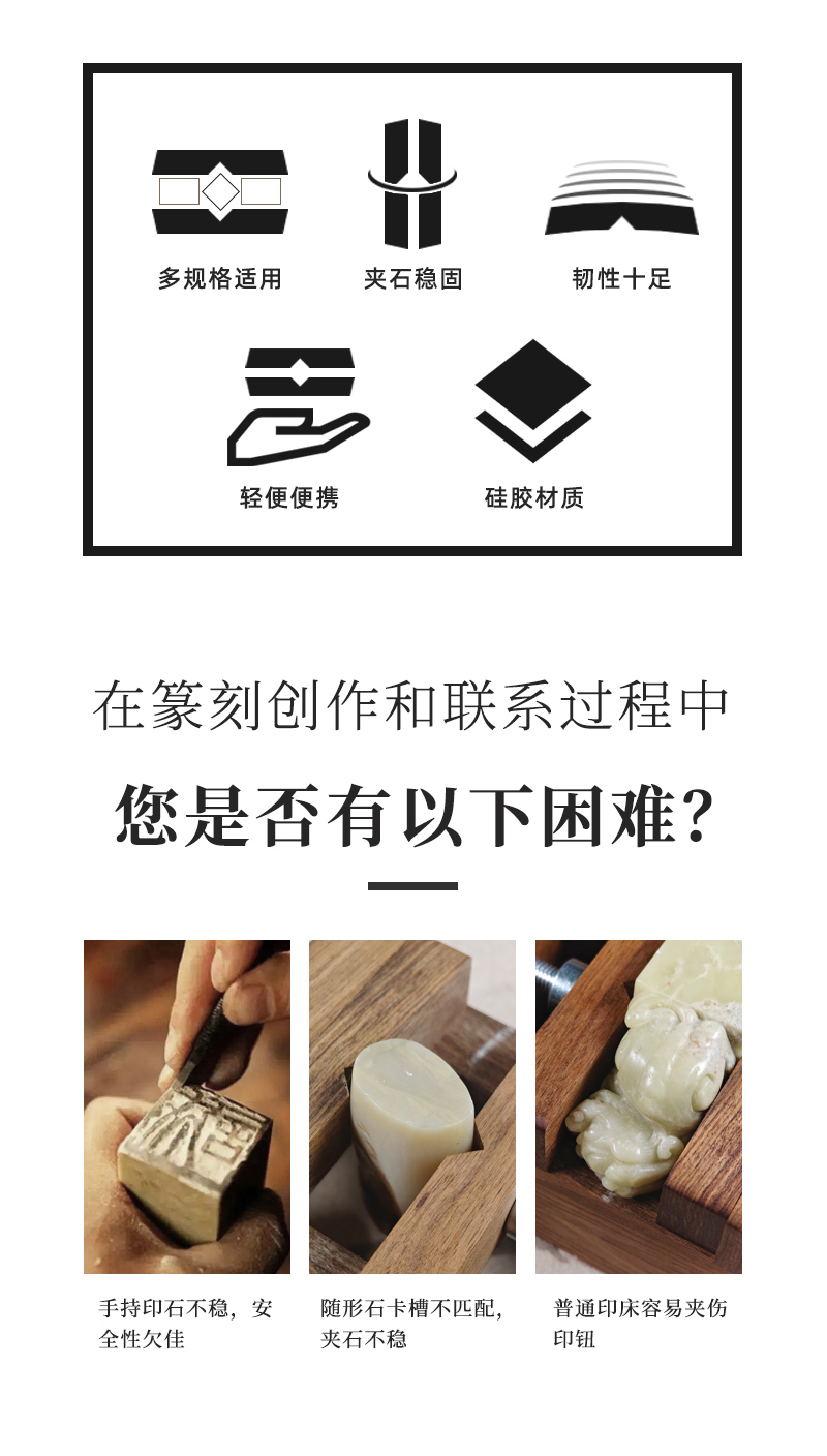 传玺硅胶印床夹片专业篆刻工具手工篆刻夹具石材固定夹片不伤印石