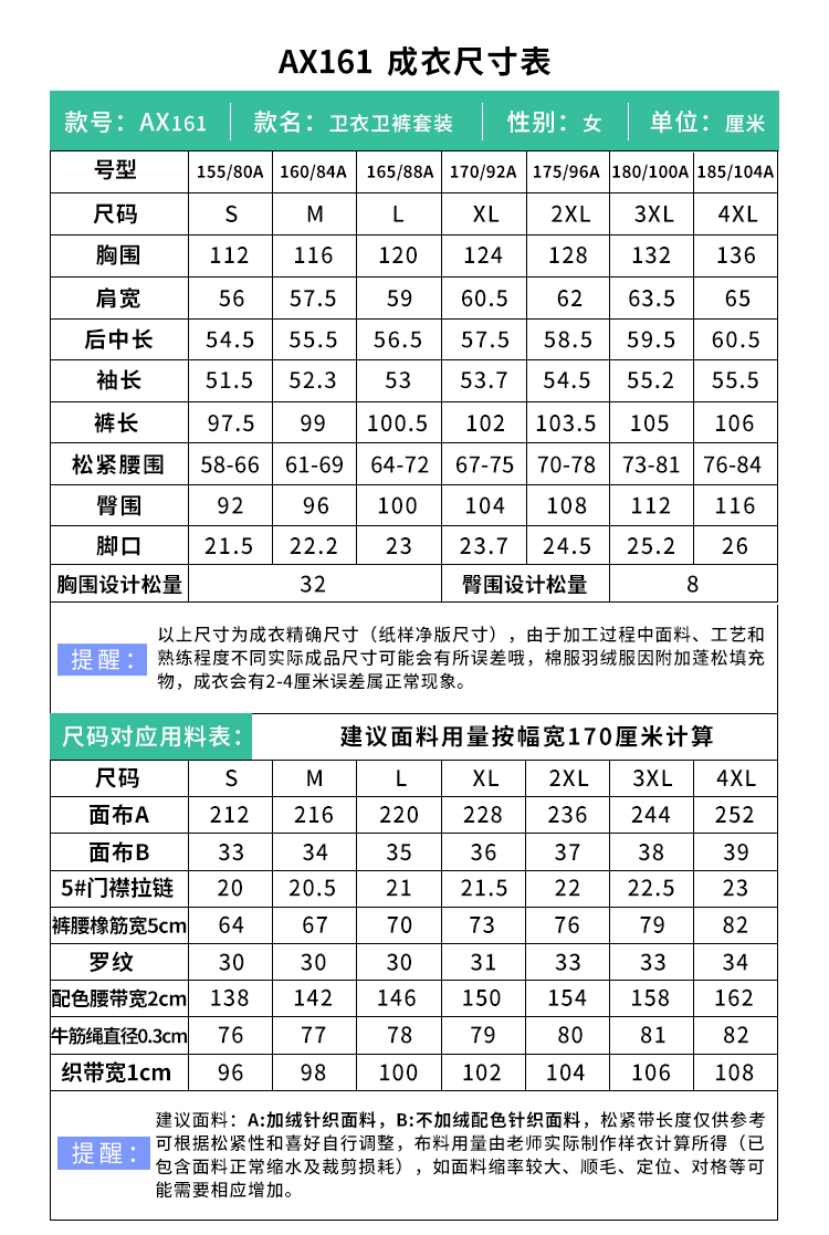 裁缝学苑AX161新款连帽卫衣运动裤纸样女装套装上衣卫裤子版型
