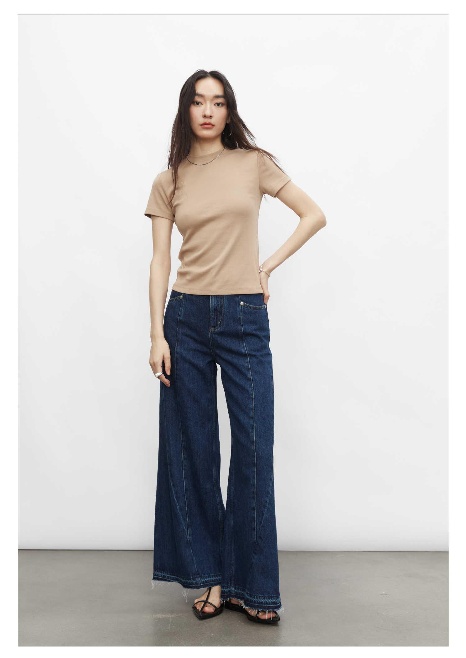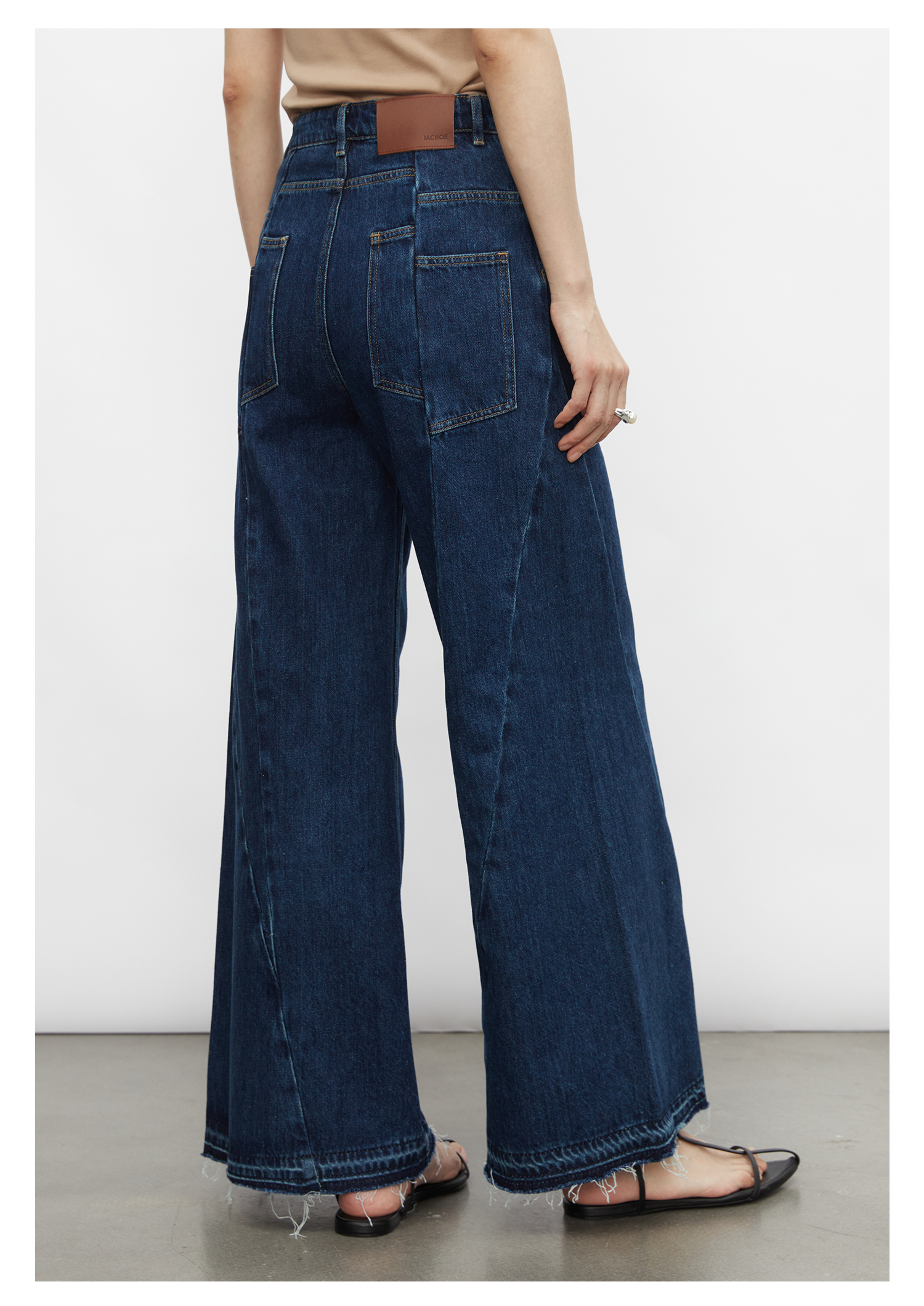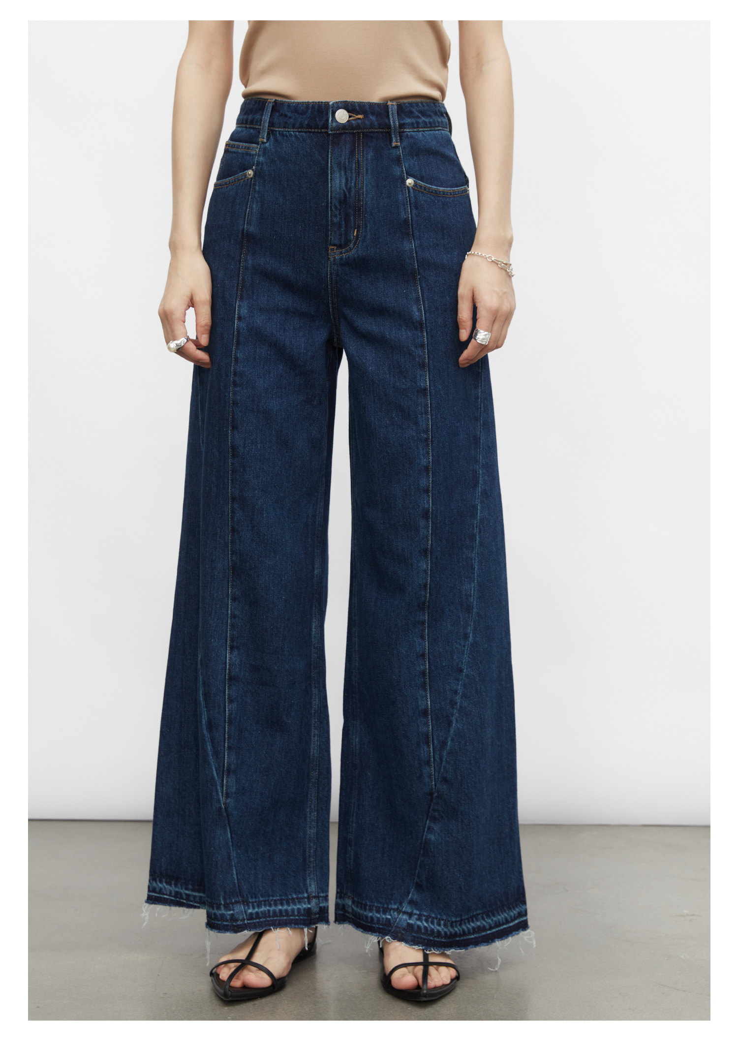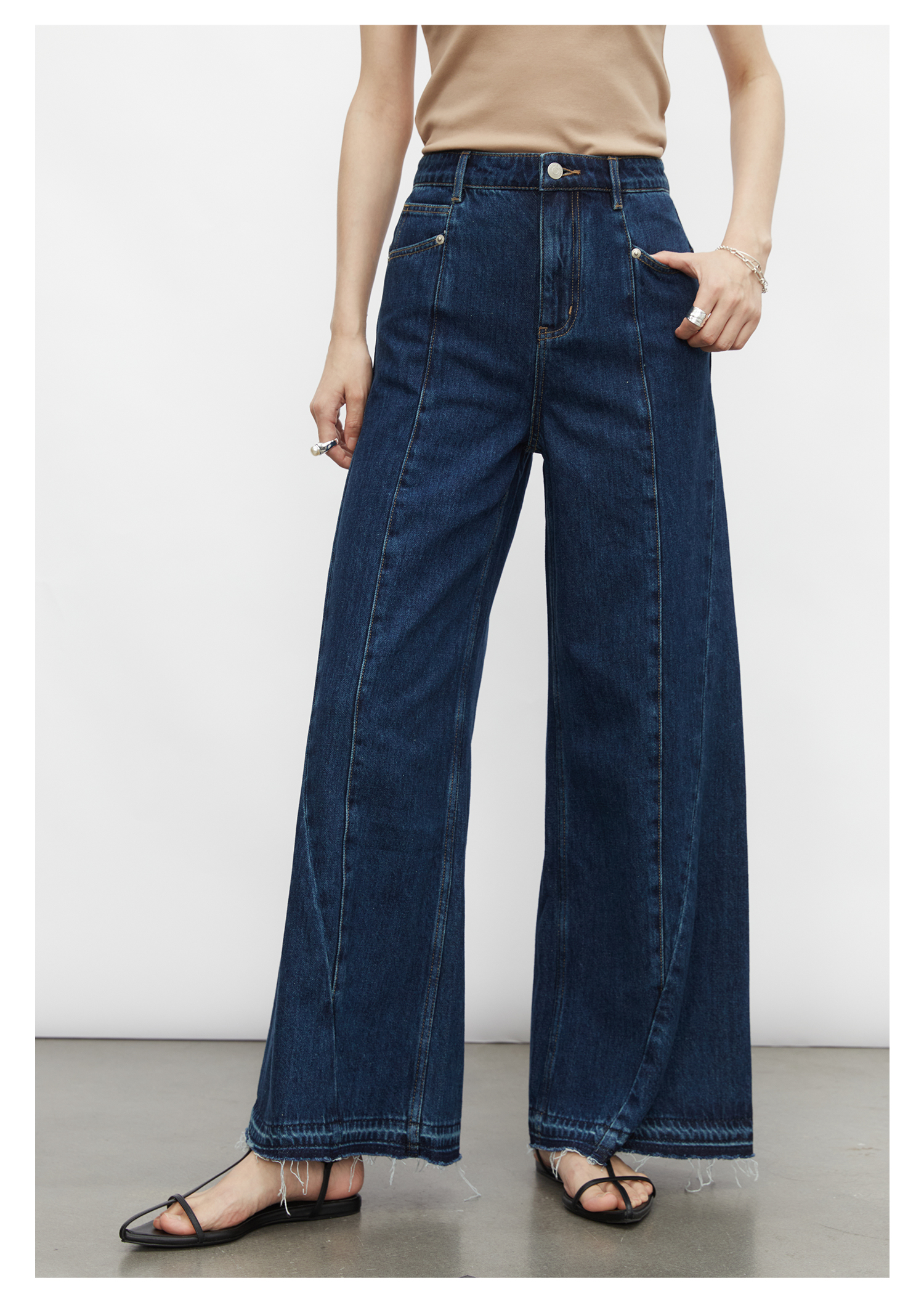 棉仓3521519006-分割切线重设计感牛仔喇叭裤 复古宽松高腰牛仔阔腿裤女