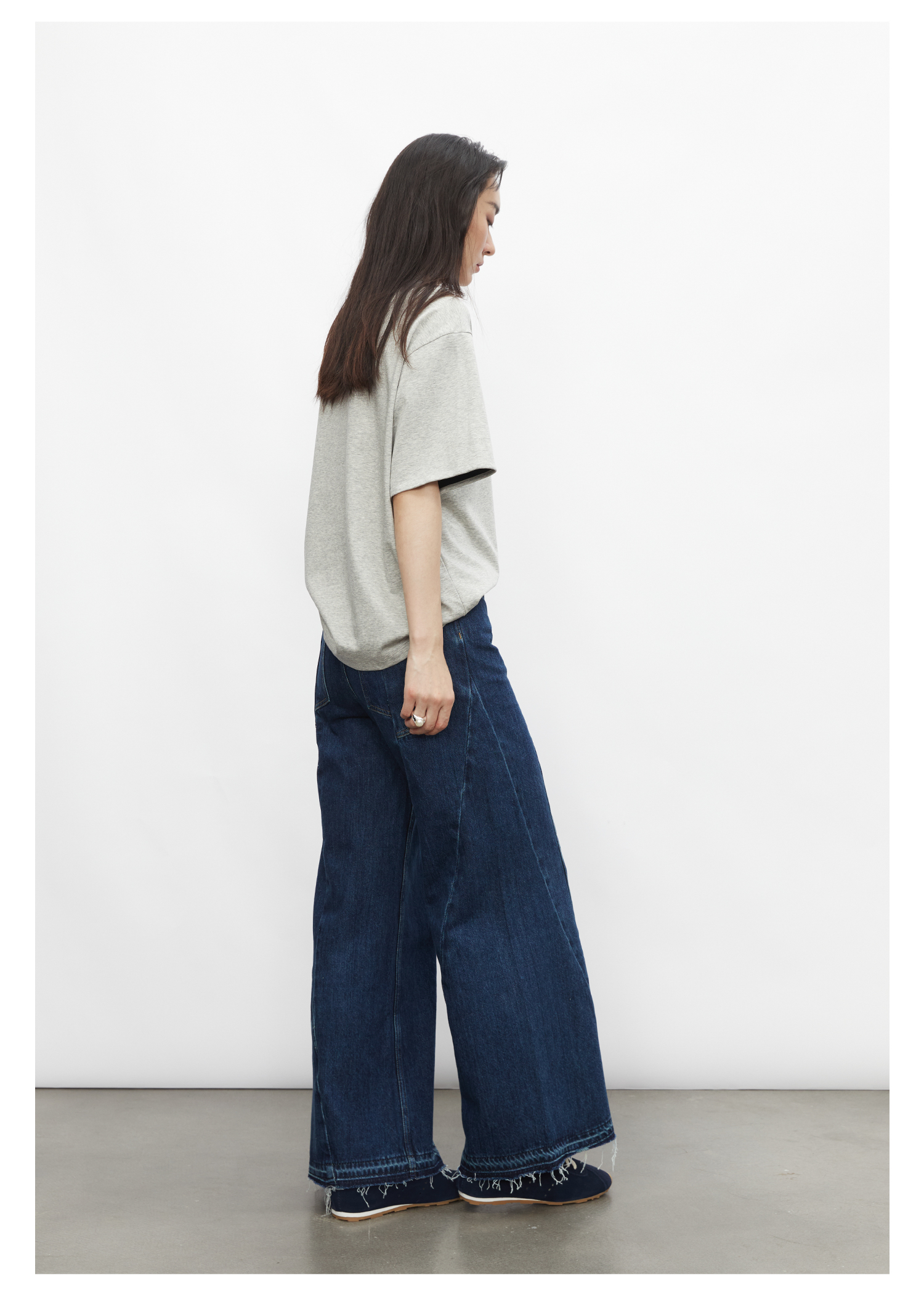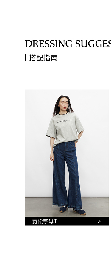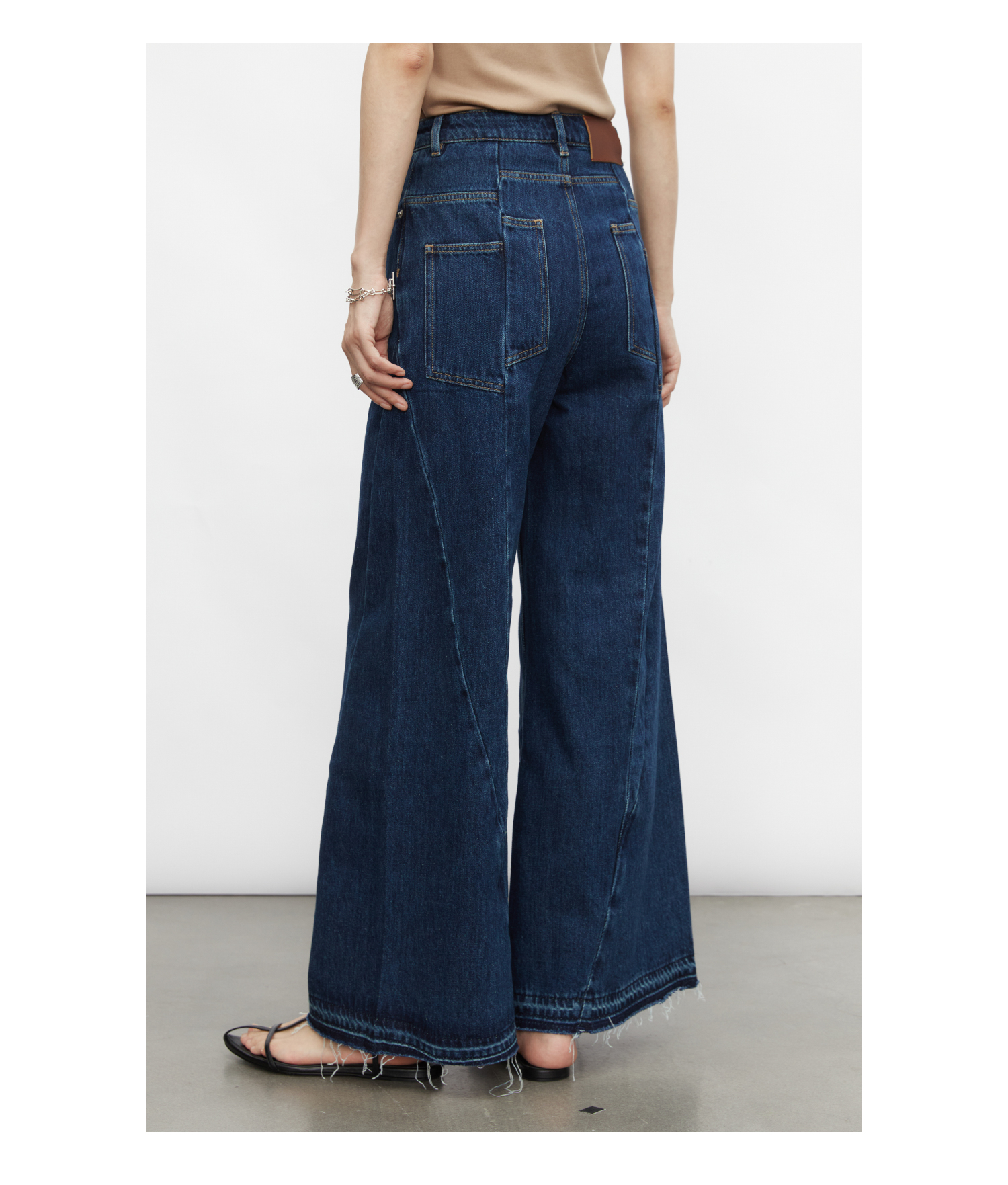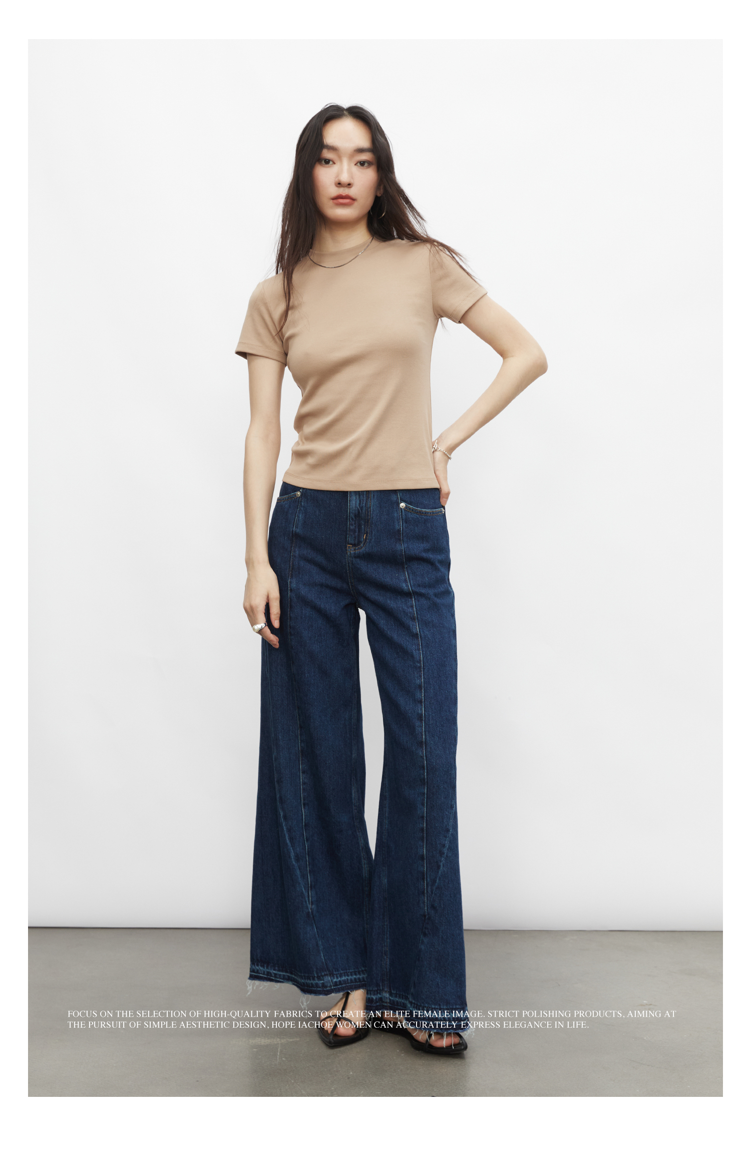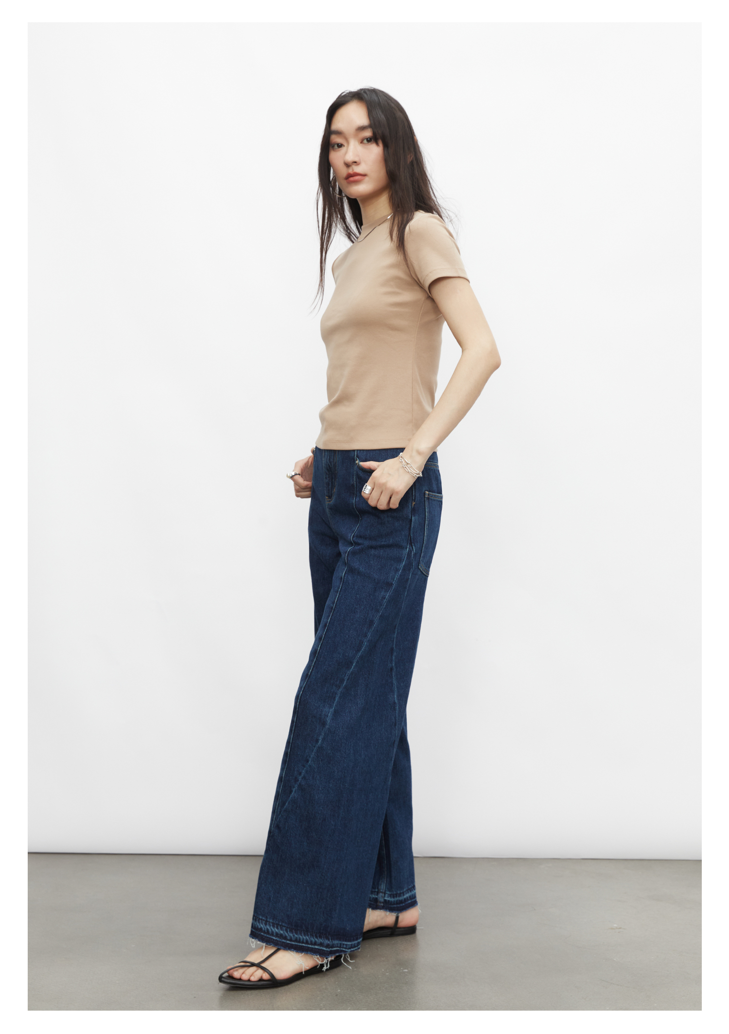 棉仓3521519006-分割切线重设计感牛仔喇叭裤 复古宽松高腰牛仔阔腿裤女