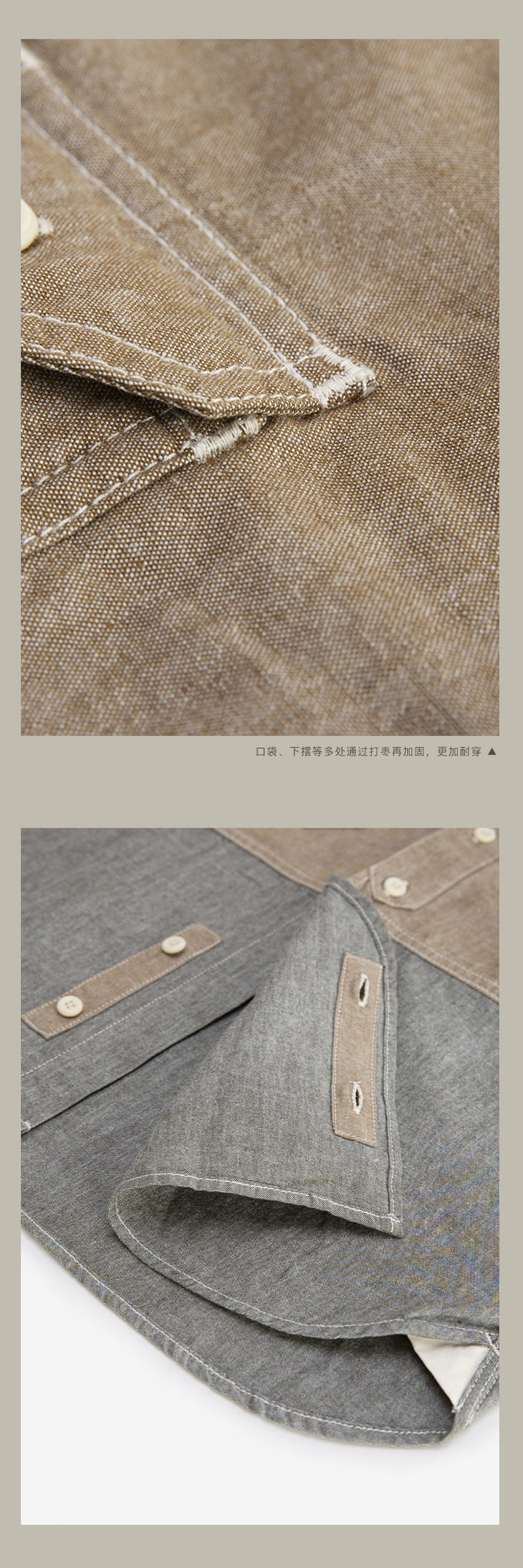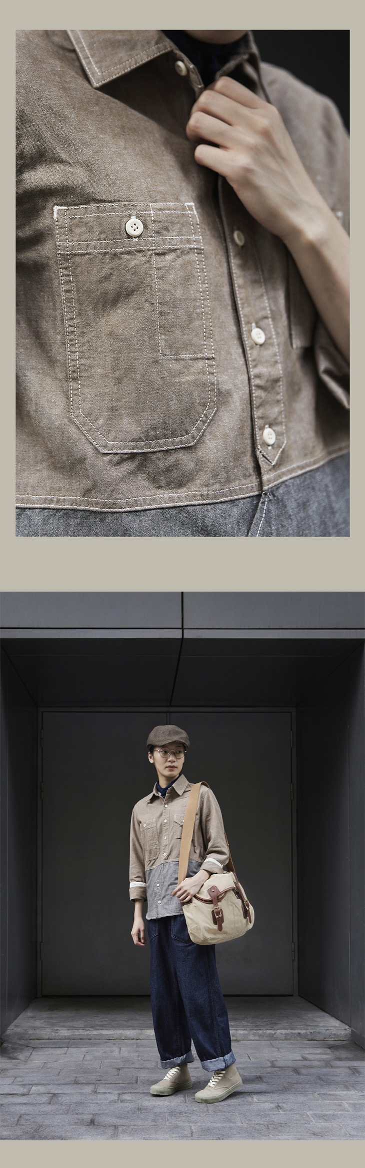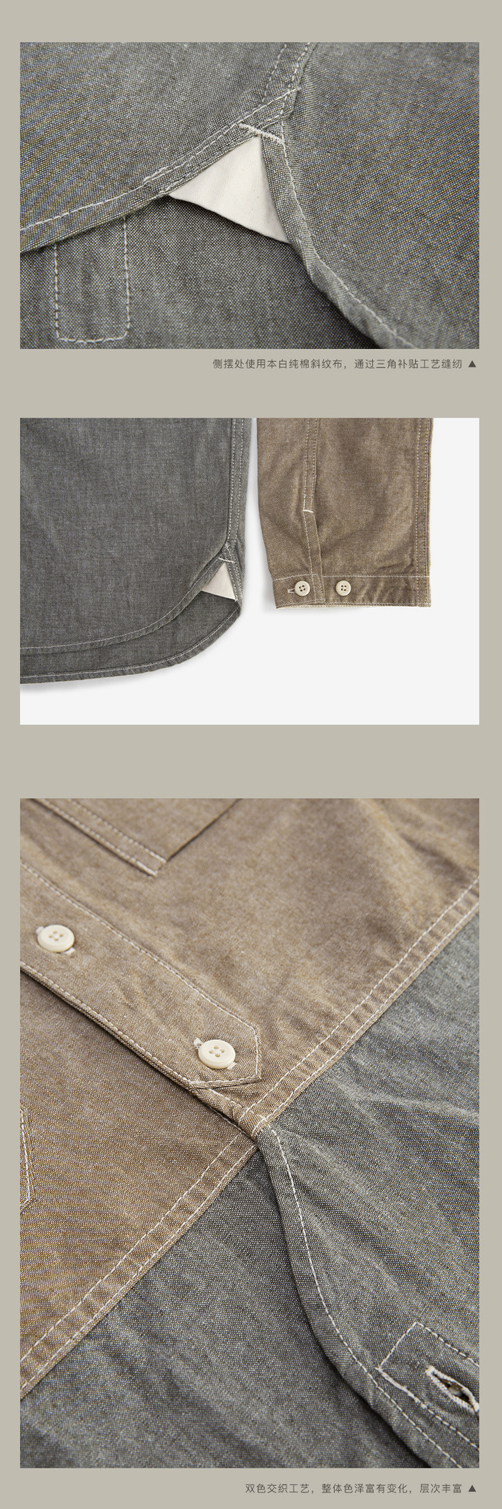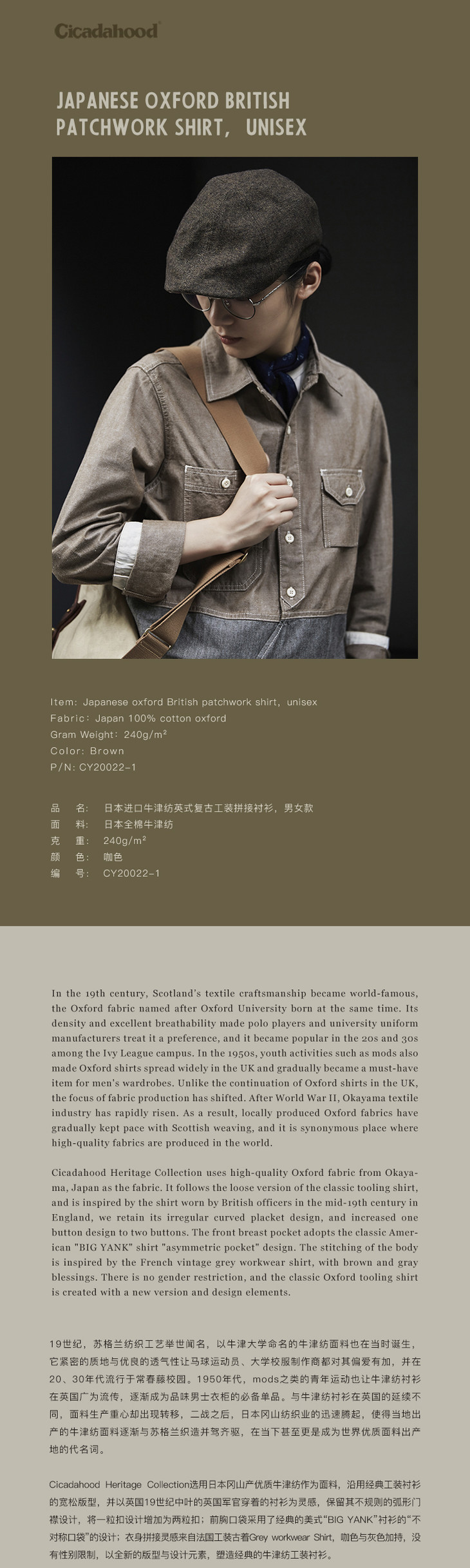 Cicadahood日本进口牛津纺英式 复古工装拼接衬衫 咖色/灰色