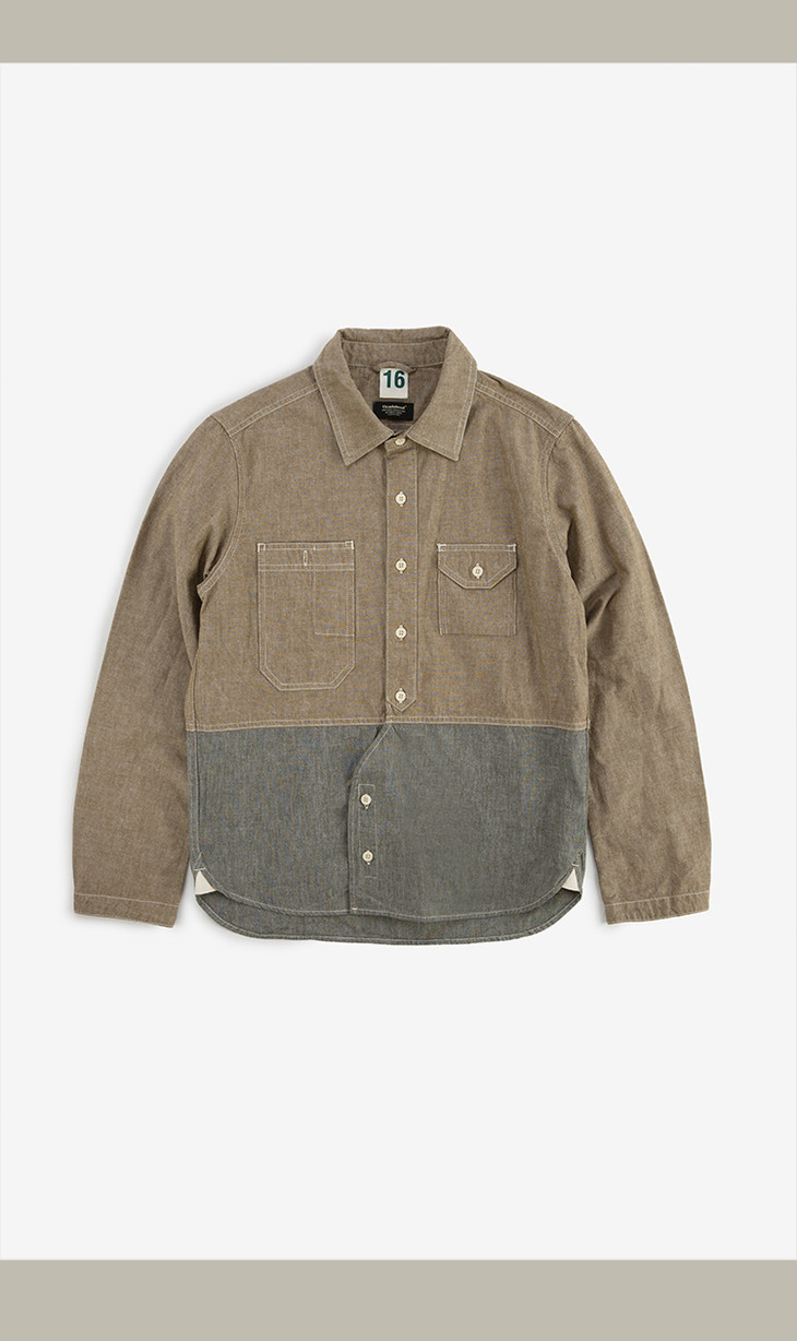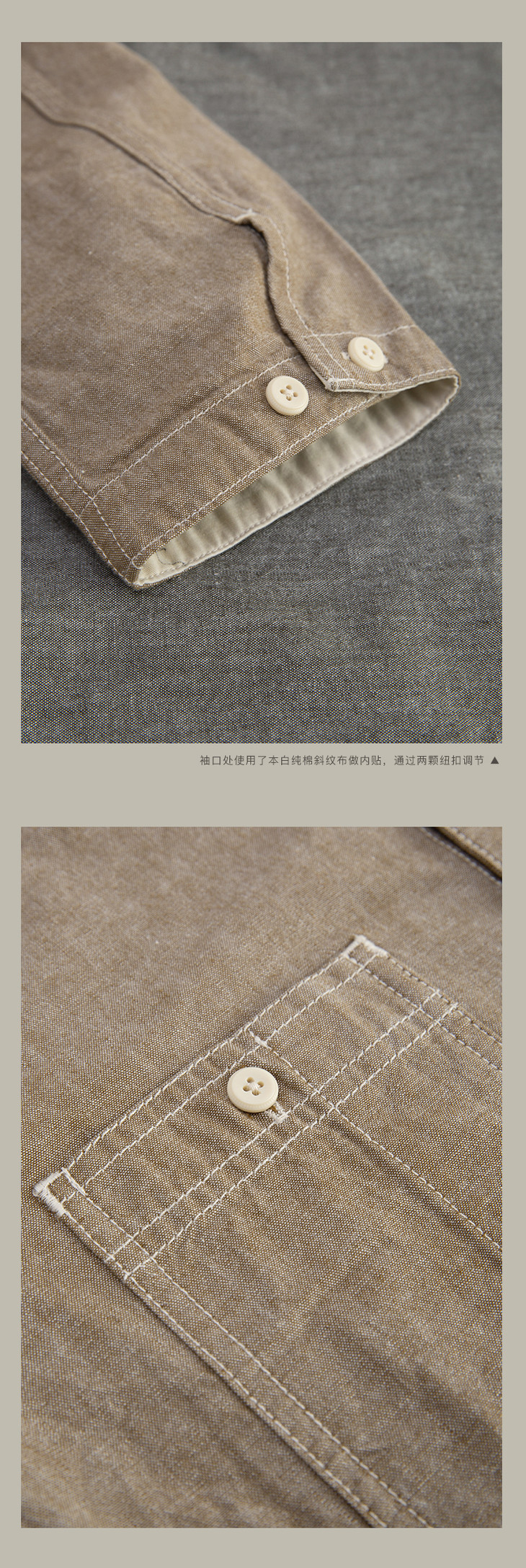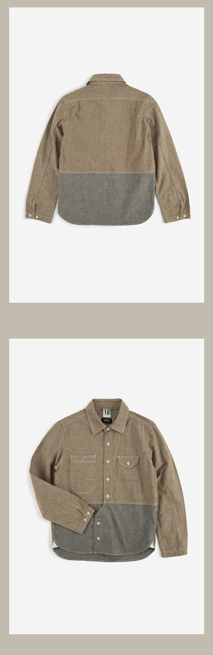 Cicadahood日本进口牛津纺英式 复古工装拼接衬衫 咖色/灰色