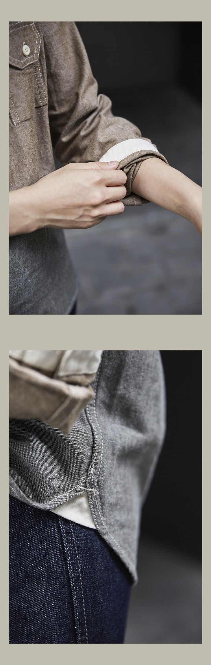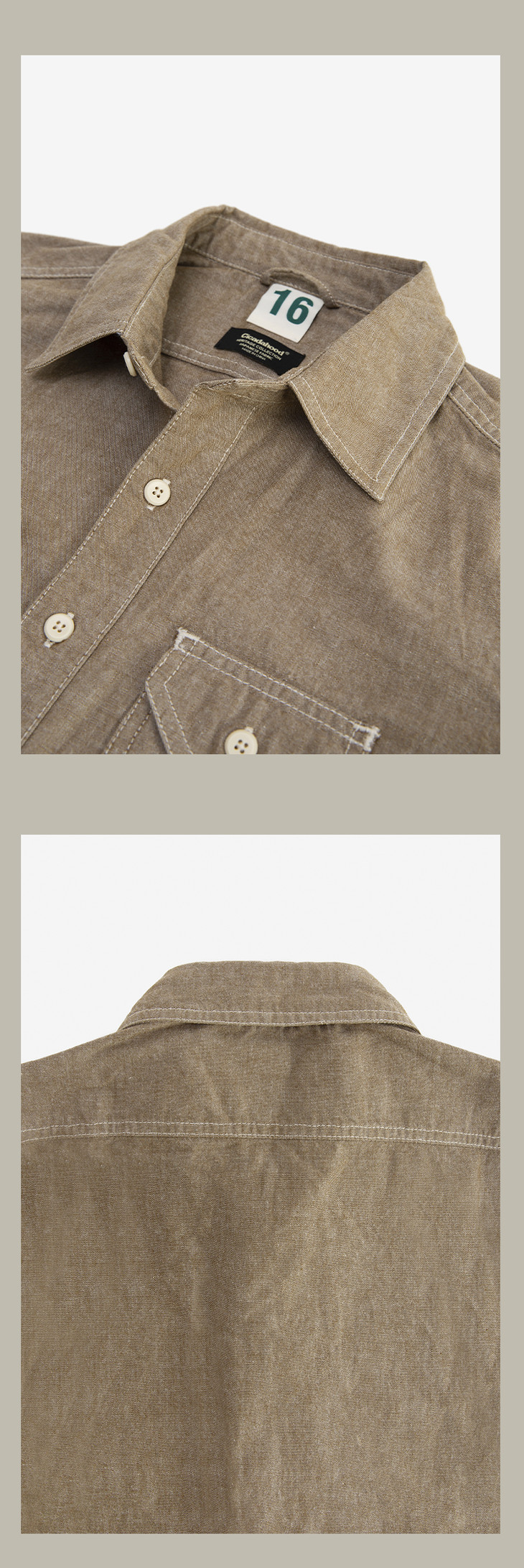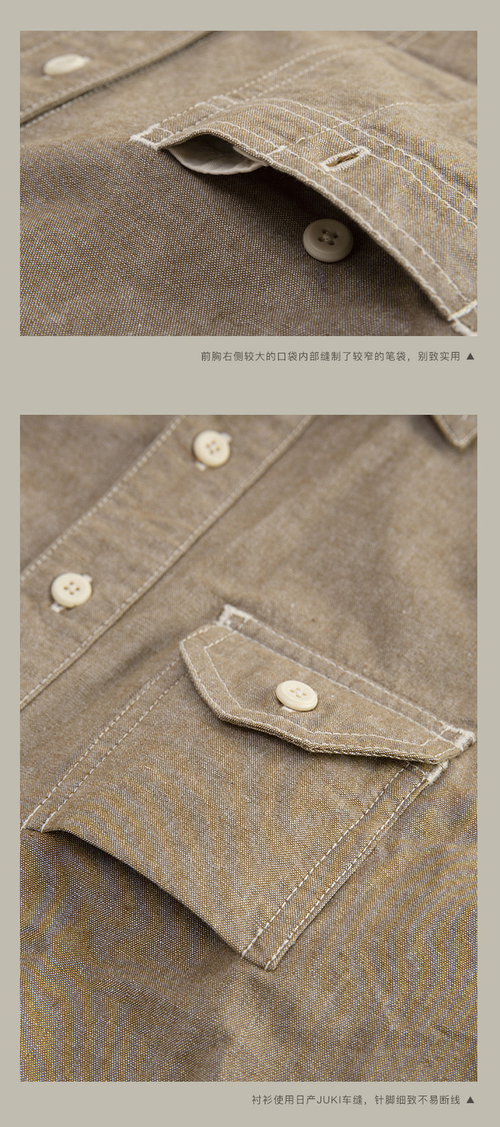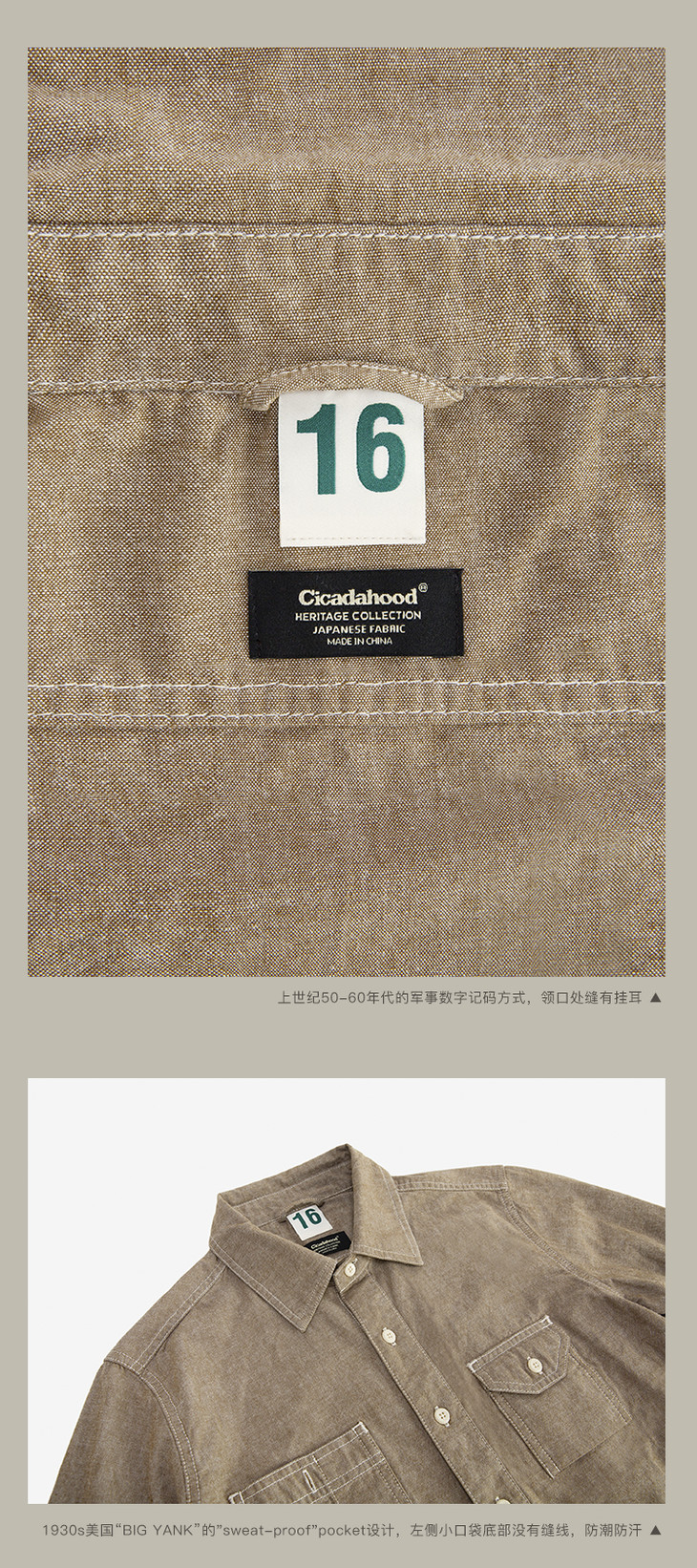 Cicadahood日本进口牛津纺英式 复古工装拼接衬衫 咖色/灰色
