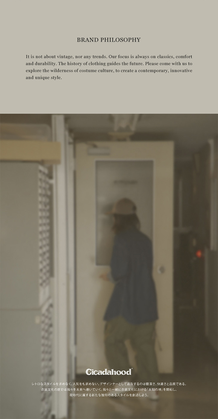 - 不局限于复古,更不会逐流于潮流,我们想挣脱快世界,关注永恒的经典、舒适和耐用,用对物质的极致追求,在荒芜之地饱满我们的内心,缓慢地得到一样东西是一种恩赐,品位从来不是速度与激情的产物。