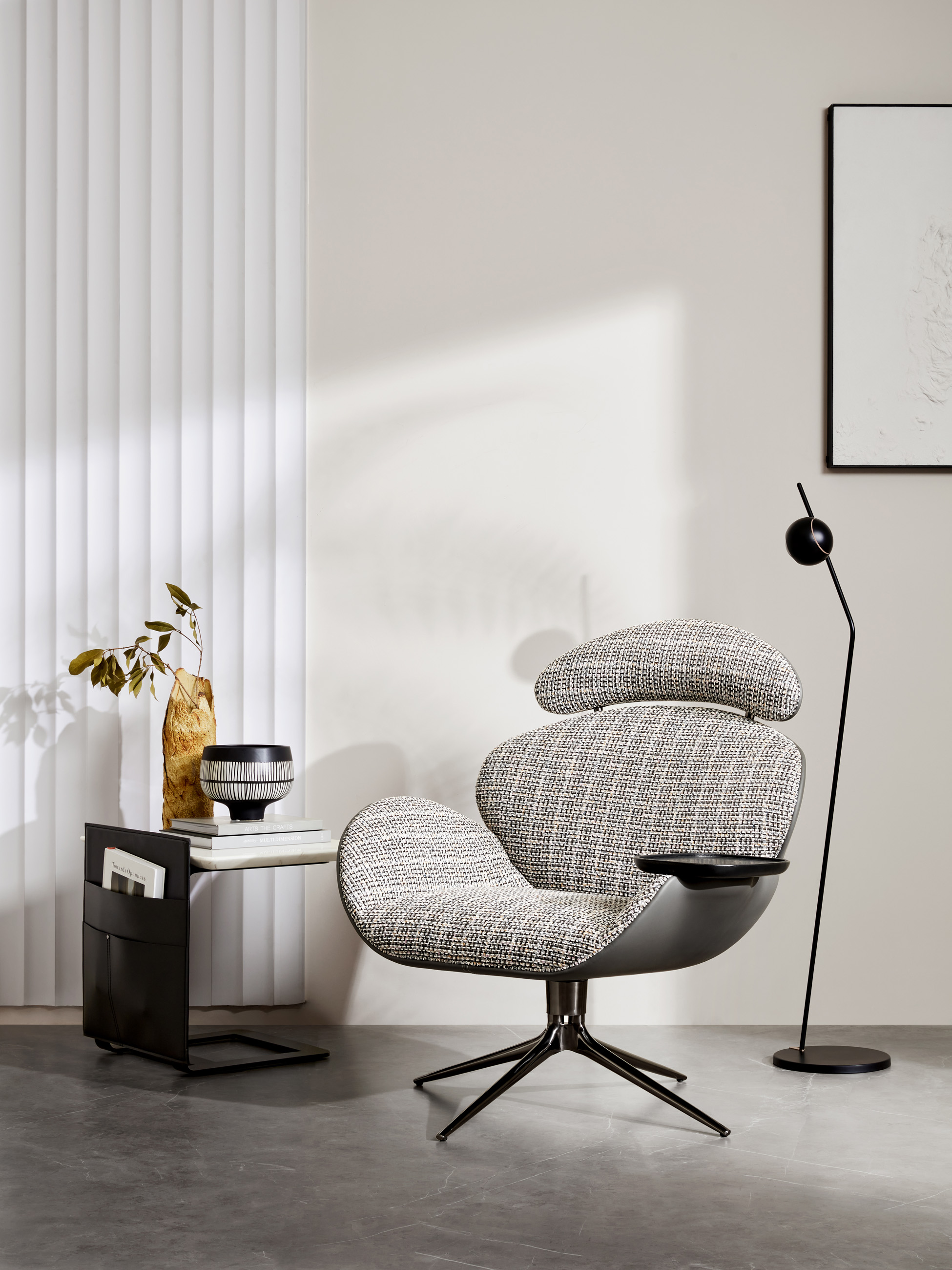 主材:生态皮+布艺+黑钛色不锈钢