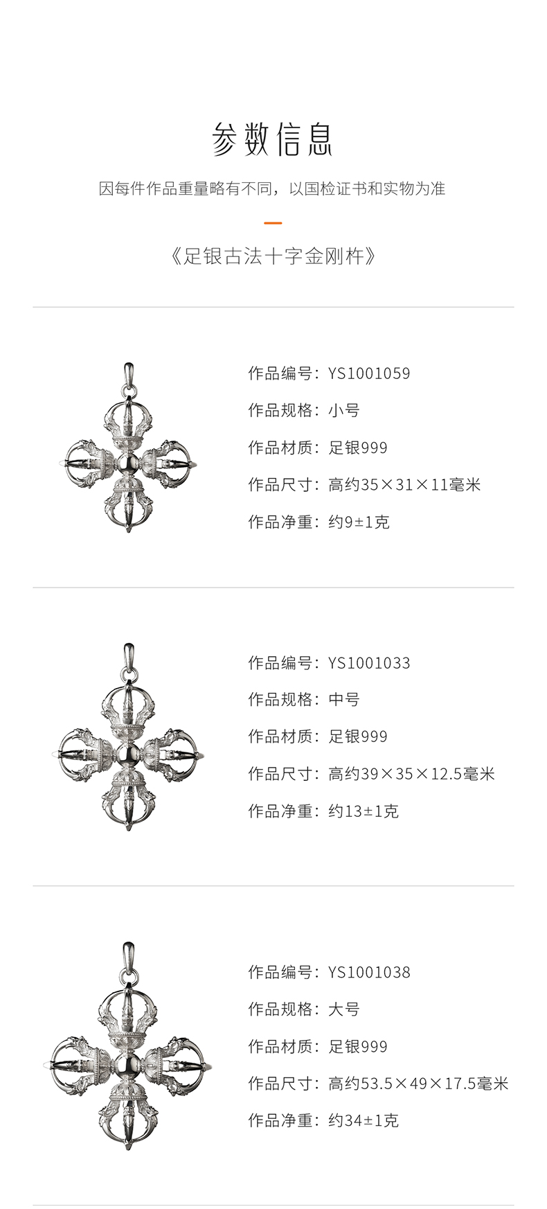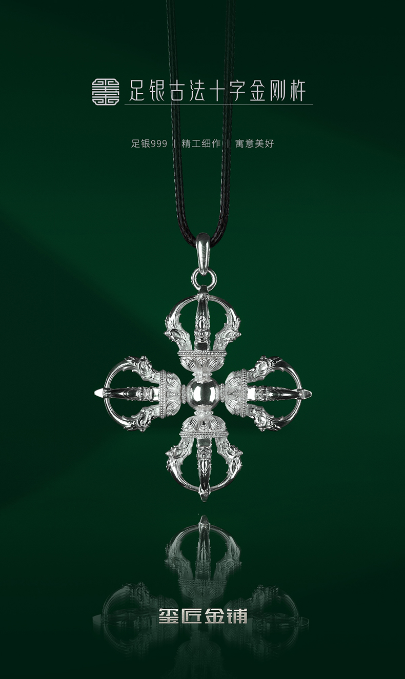 玺匠金铺《足银古法十字金刚杵》足银999 吊坠挂坠礼物
