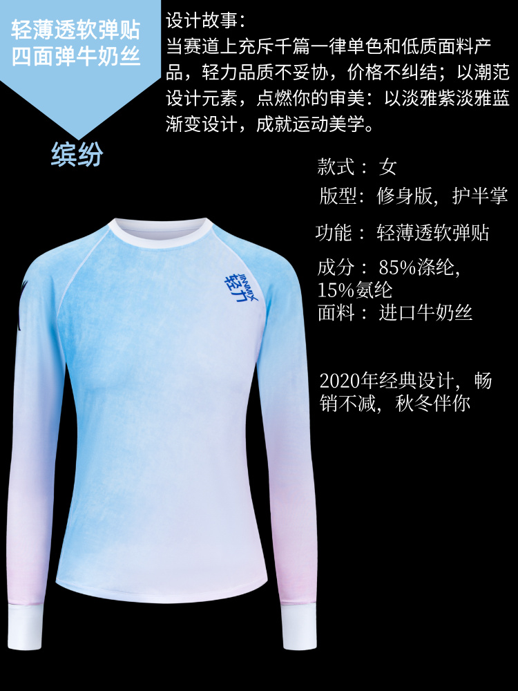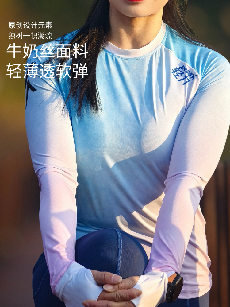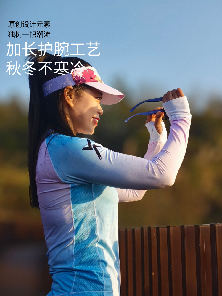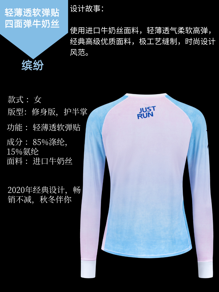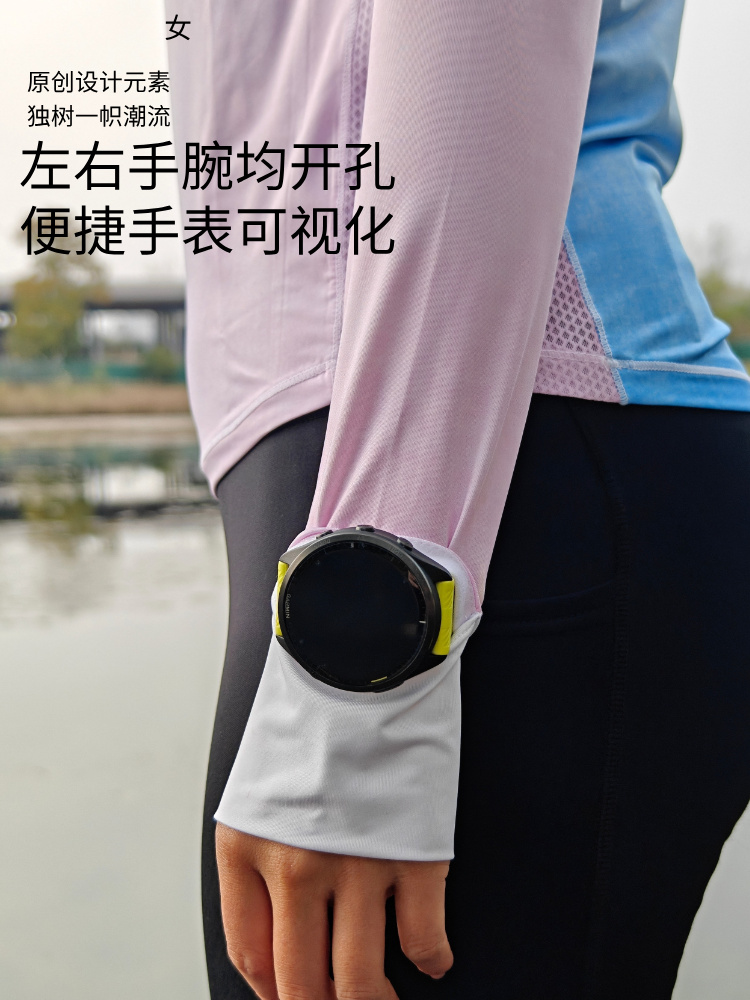 缤纷超轻透气速干加长护腕手表孔修身跑步运动长袖女