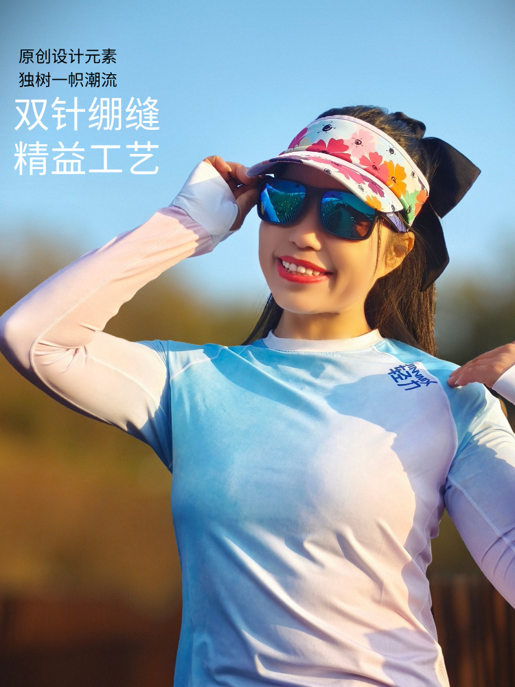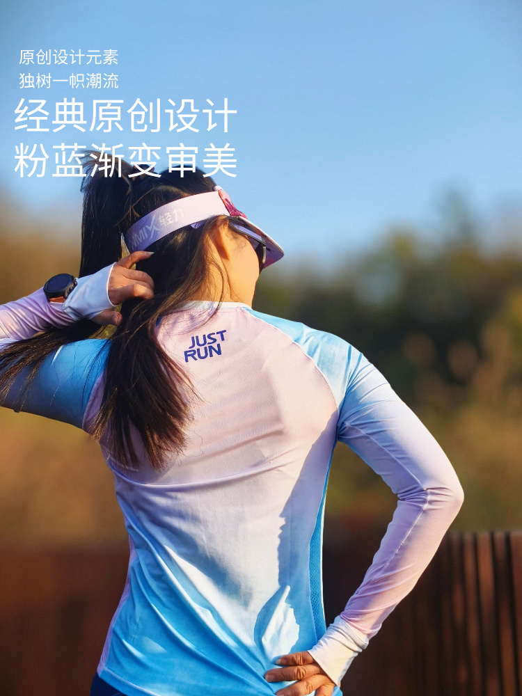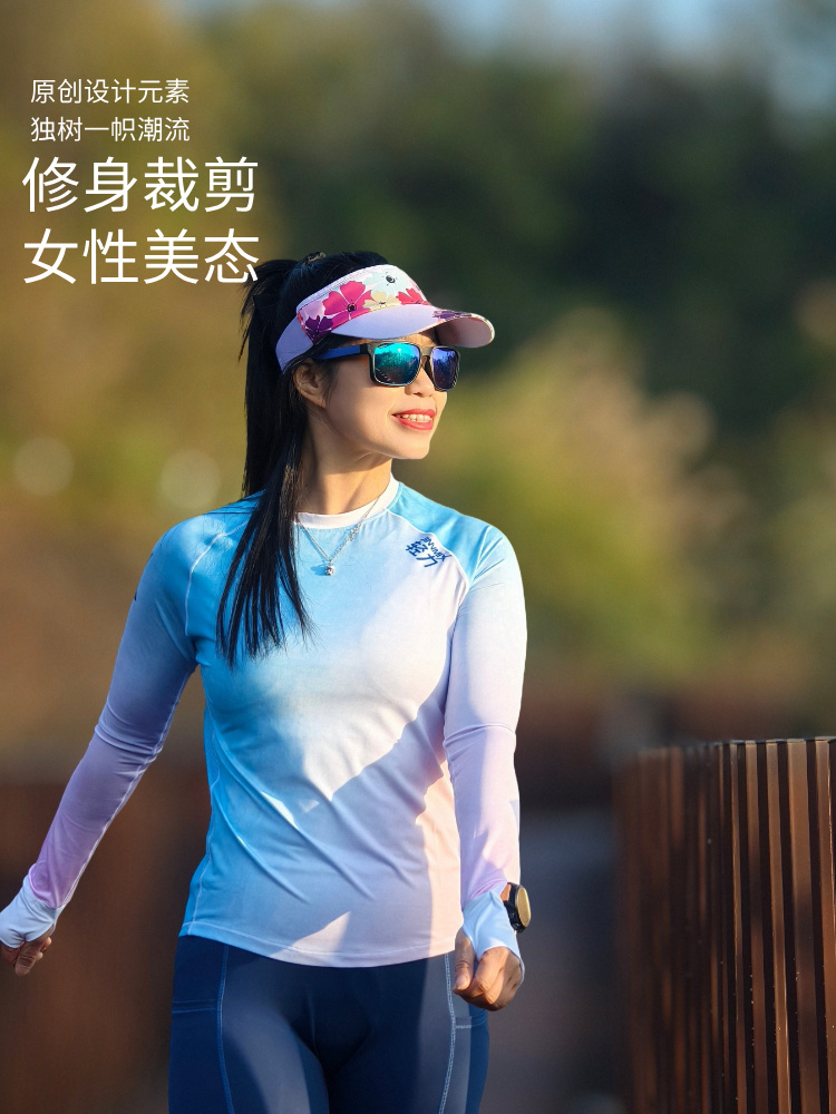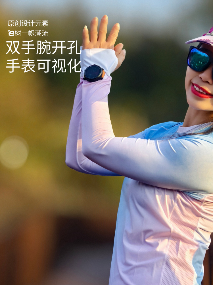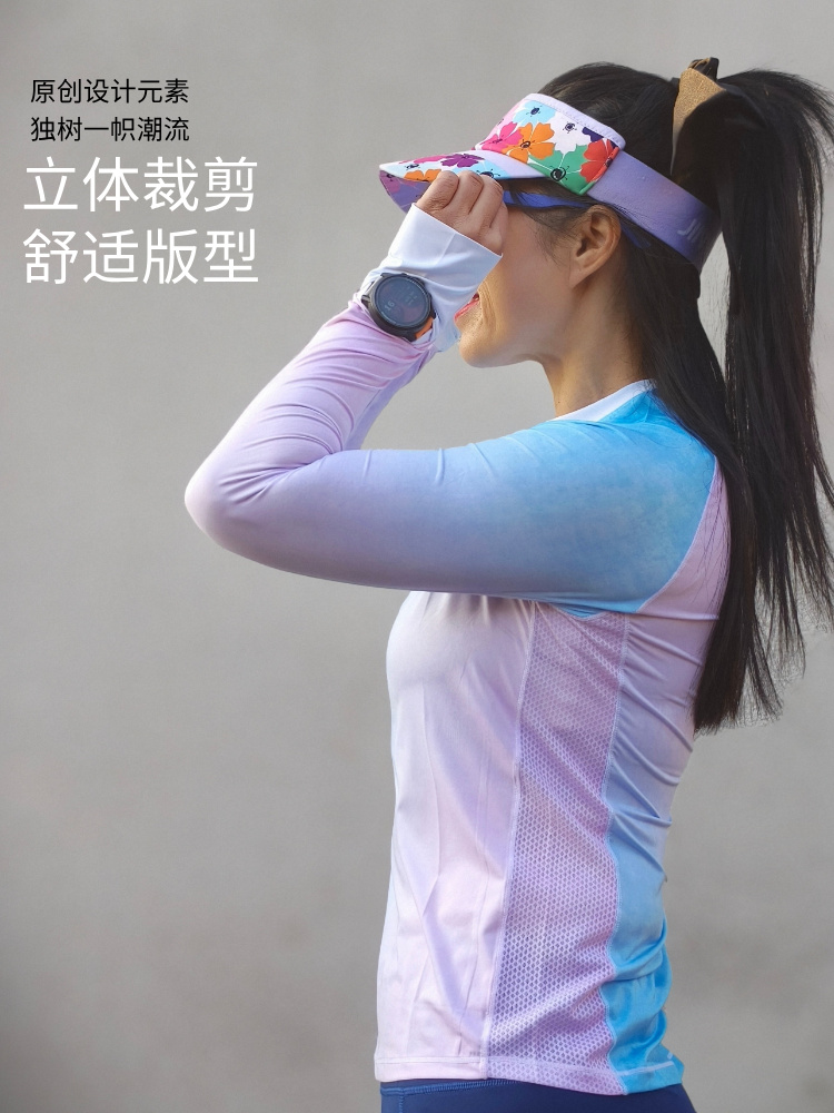 缤纷超轻透气速干加长护腕手表孔修身跑步运动长袖女