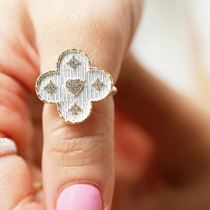北京仓|Diaperis Paris-GARDENIA-栀子花 银色 锆石 戒指[法国设计师]