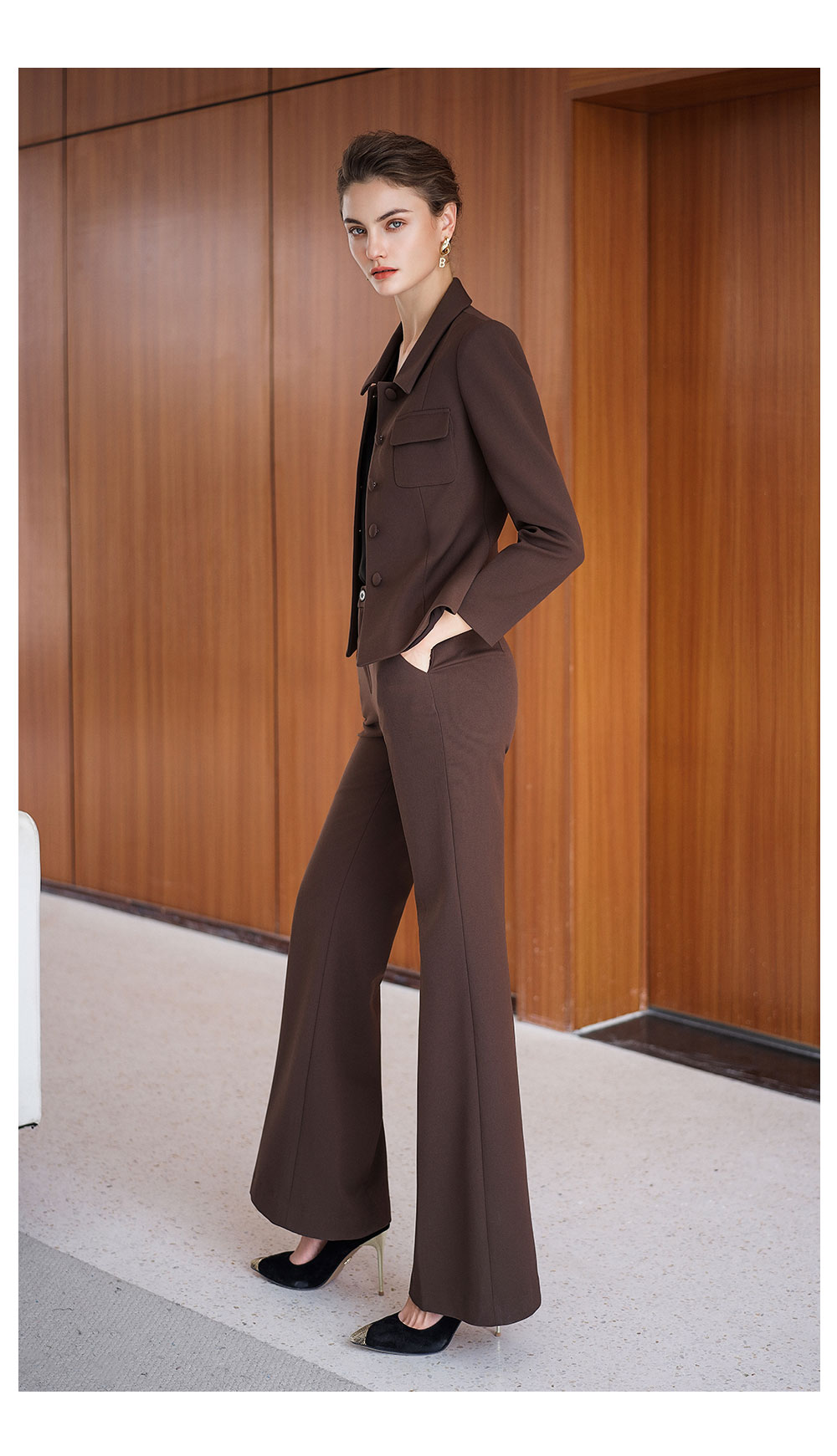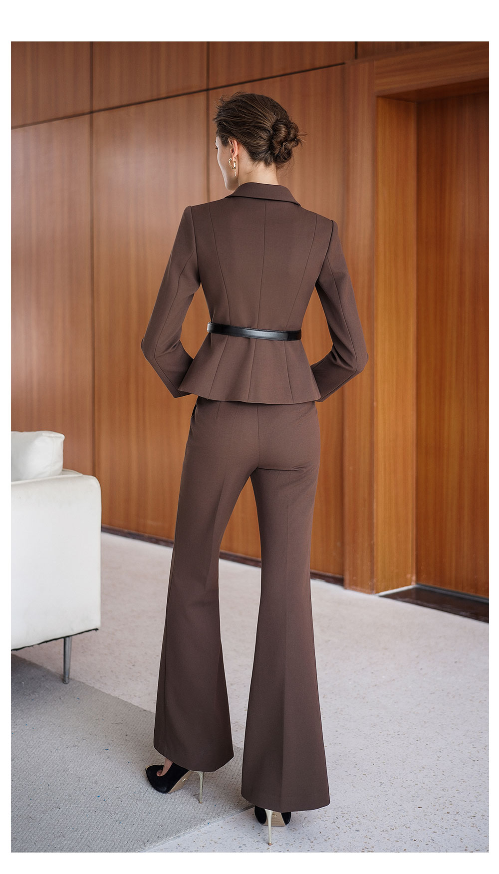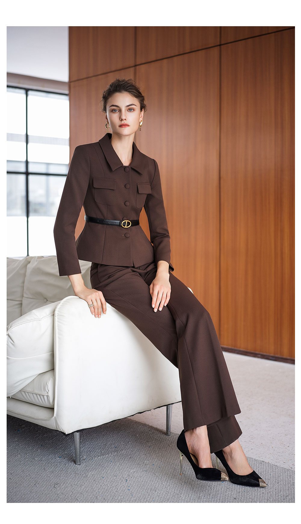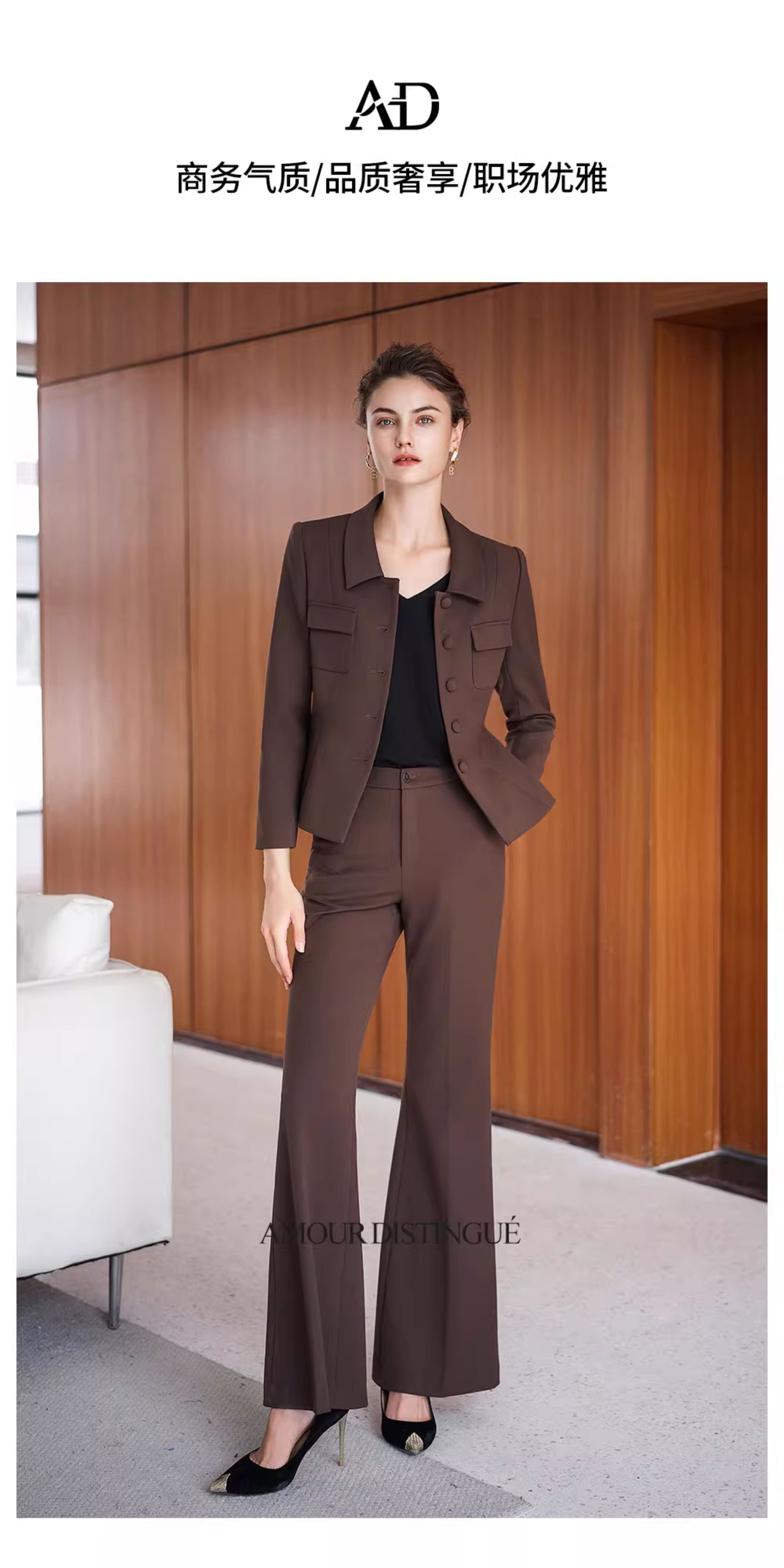 AD秋冬季磨毛套装女士职场通勤两件套2025新款棕色收腰正装阔腿裤